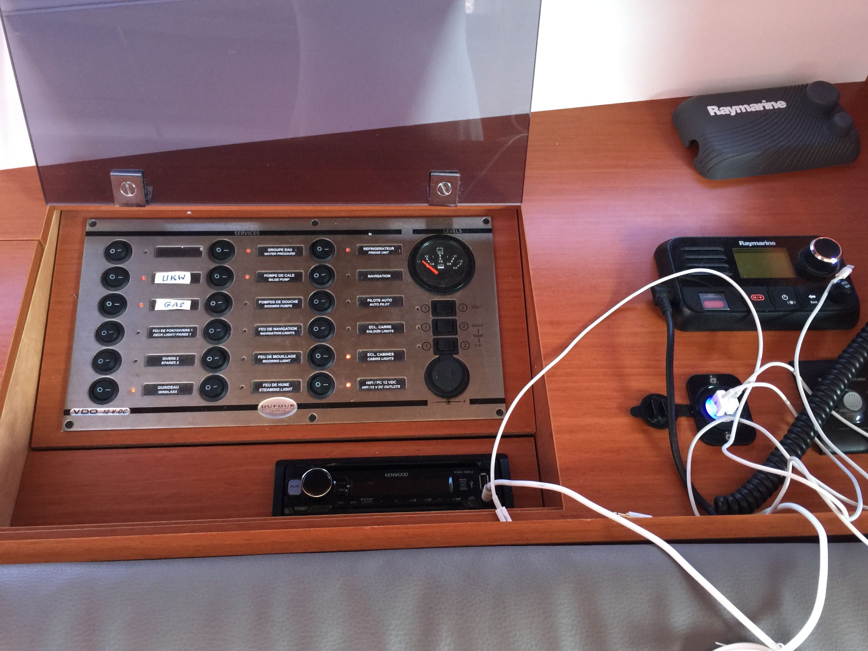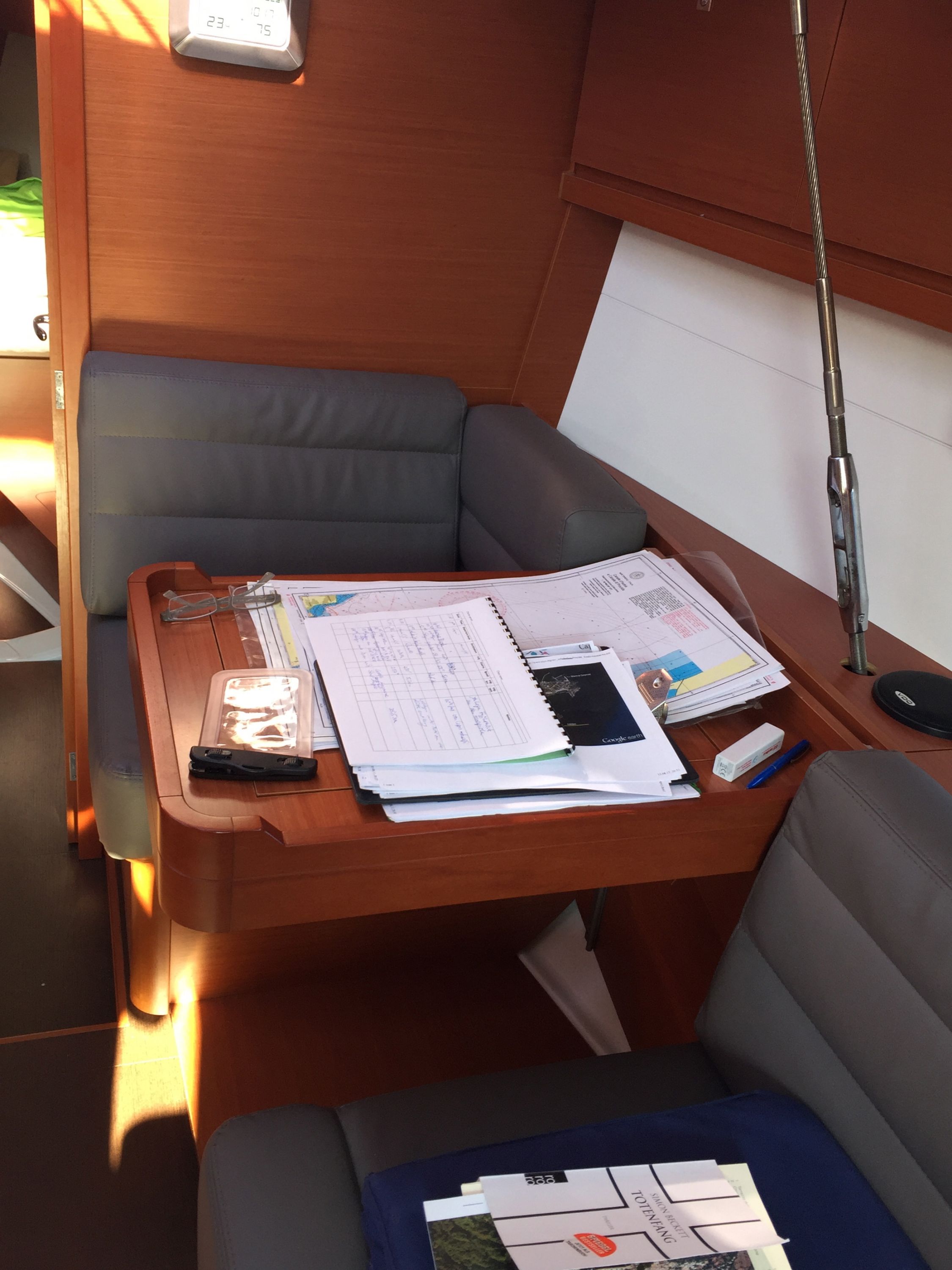 | Navigation | Barometer, Fernglas, Hafenhandbücher, Handpeilkompass, Kartenplotter, Navigationsbesteck, Seekarten, Tridata (Log, Echolot, Windm.) |