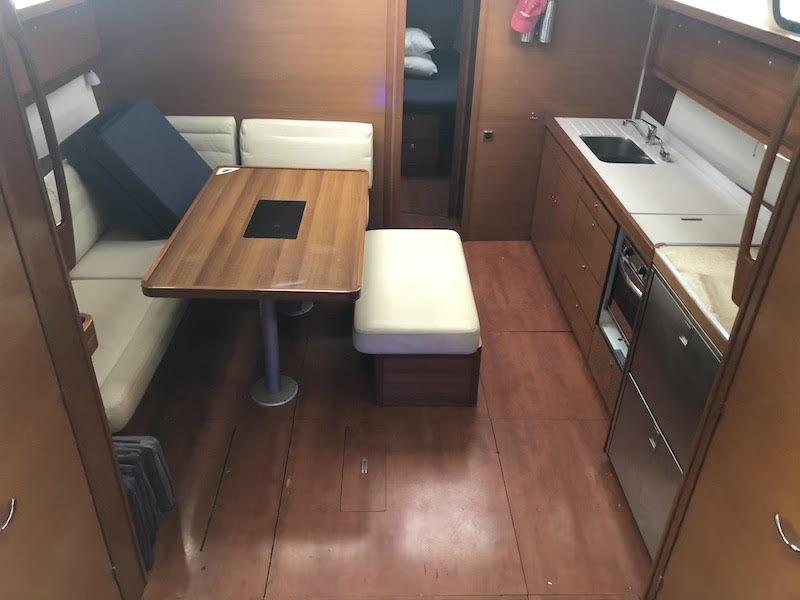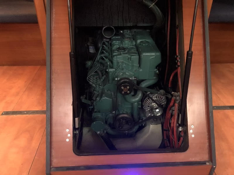 Inside 12V Steckdose, 220V Steckdosen, Borduhr, CD-Player, Fäkalientank, Kühlschrank, Ladegerät, Luftpumpe für Beiboot, Pantryausstattung, Radio, Salontisch absenkbar, Warmwasser