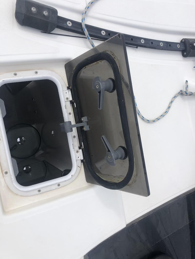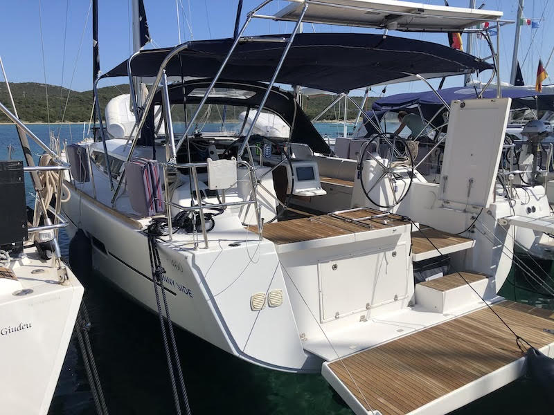 Outside 220 V-Landanschluss, Anker mit Kette, Ankerwinsch, Badeleiter, Biminitop, Bootshaken, Cockpitdusche, Cockpitlautsprecher, Cockpitpolster, Cockpittisch, Dieselkanister , elektr. Ankerwinsch, Fender, Festmacherleinen, Gangway, Heckdusche, Kugelfender, Kunststoff-Eimer (Pütz), Lifeline System, Sonnensegel, Sprayhood, Teak im Cockpit, Treibanker, Wantenschneider, Wasserkanister , Wasserschlauch, Windex