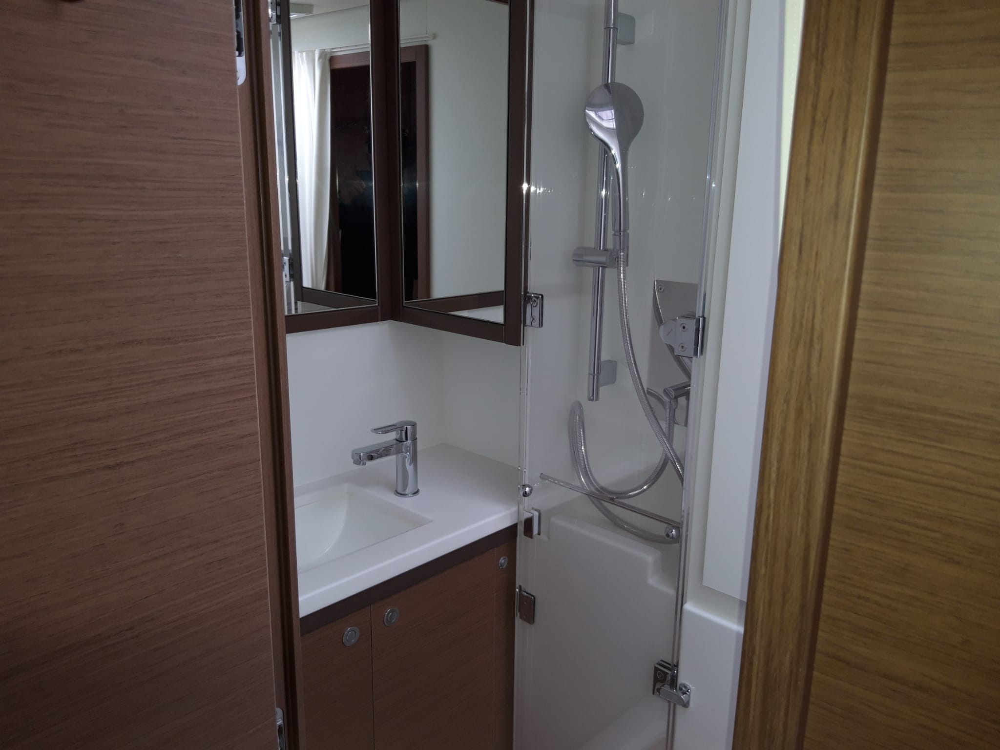 | Inside | Backofen, Gefrierschrank, Generator, Inverter 12V/220V, Klimaanlage (ohne Landstrombedarf), Kühlschrank, Ladegerät, Lautsprecher im Salon, Pantryausstattung, Warmwasser, Watermaker, WC (elektr.) |