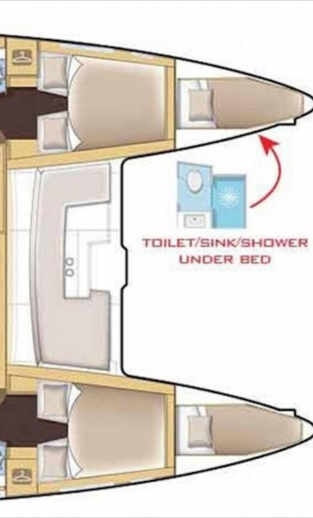 | Inside | Backofen, Gefrierschrank, Generator, Inverter 12V/220V, Klimaanlage (ohne Landstrombedarf), Kühlschrank, Ladegerät, Lautsprecher im Salon, Pantryausstattung, Radio mit USB und Bluetooth, Salontisch absenkbar, Seewasserentsalzungsanlage, Warmwasser, Watermaker, WC (elektr.) |