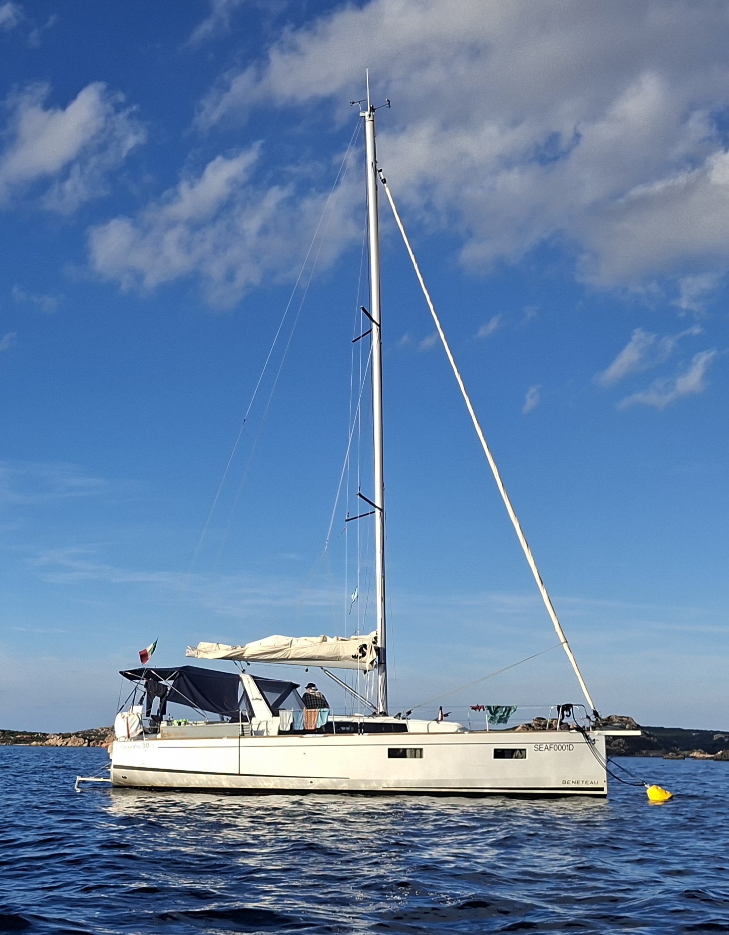 | Safety | Automatikwesten, Autopilot, Blitzboje, Bootsmannstuhl, Bordapotheke, Bordwerkzeug, Bugstrahlruder, Feuerlöscher, Lifebelts, Motor-Ersatzteile, Nebelhorn, Notsignale, Radarreflektor, Reparaturset für Beiboot, Rettungsinsel, Suchscheinwerfer, Taschenlampe, UKW-Funk m. DSC, Zweitanker |