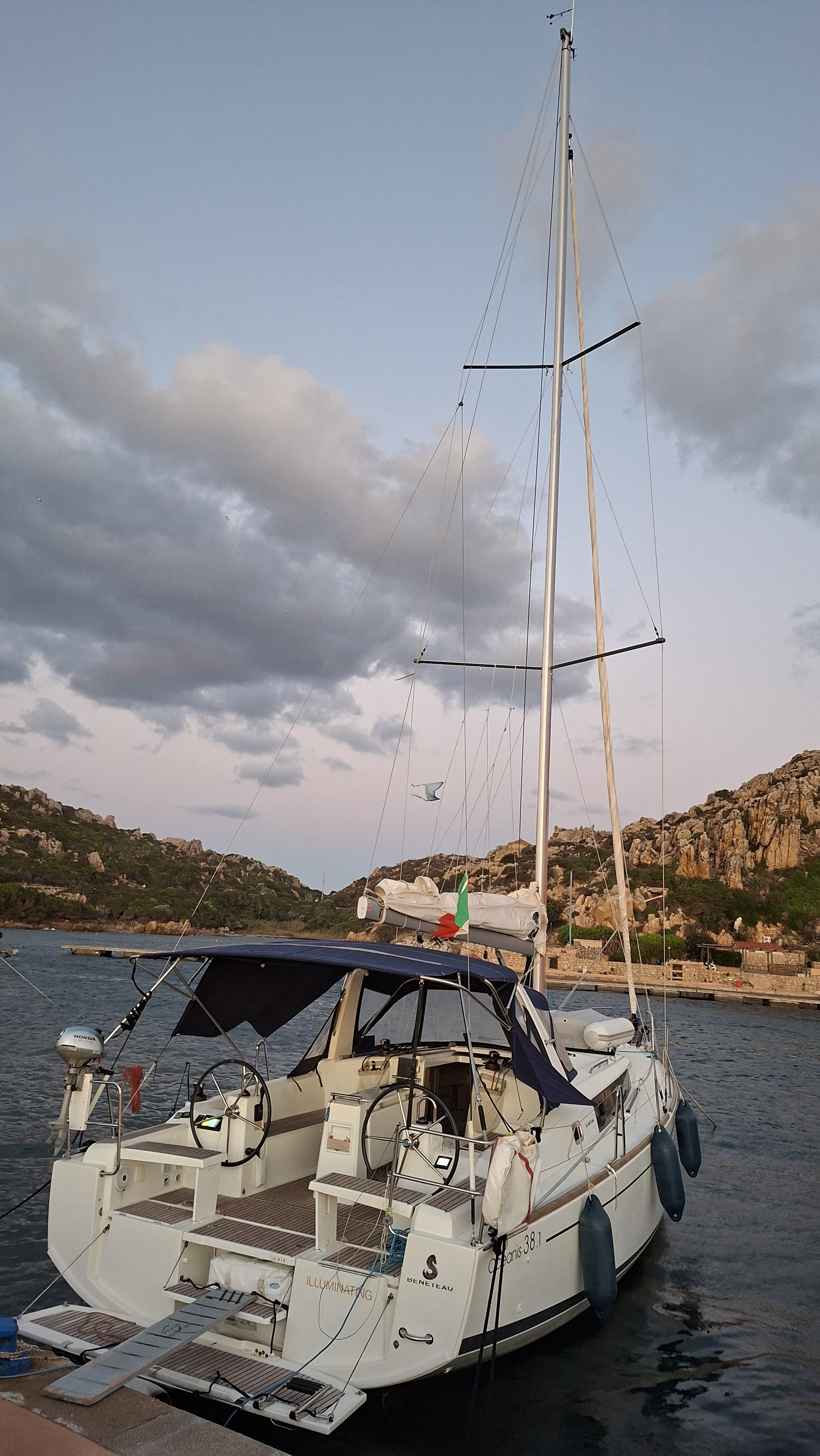 | Navigation | Barometer, Fernglas, GPS mit Kartenplotter im Cockpit, Hafenhandbücher, Handpeilkompass, Navigationsbesteck, Seekarten, Tridata (Log, Echolot, Windm.) |