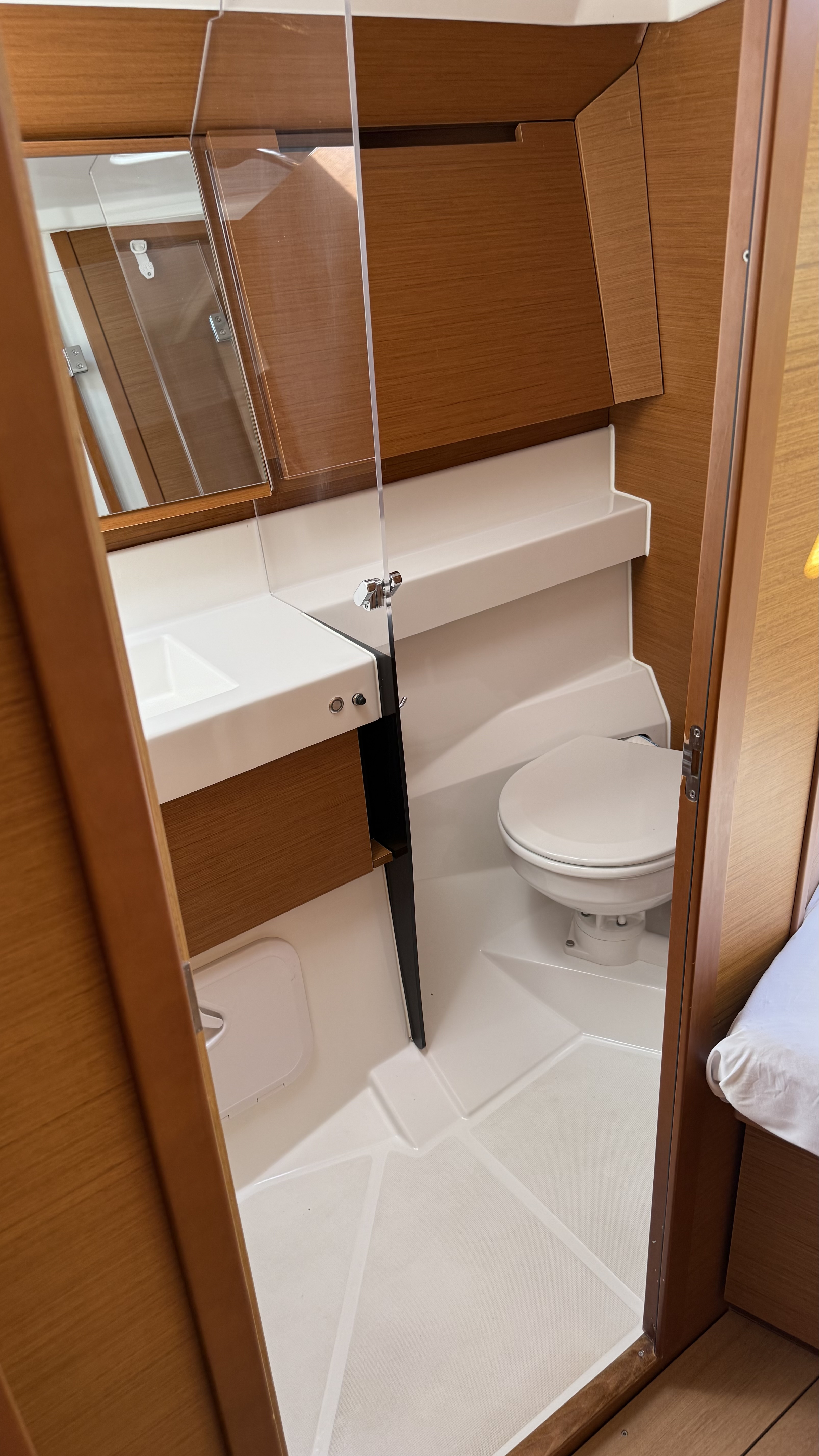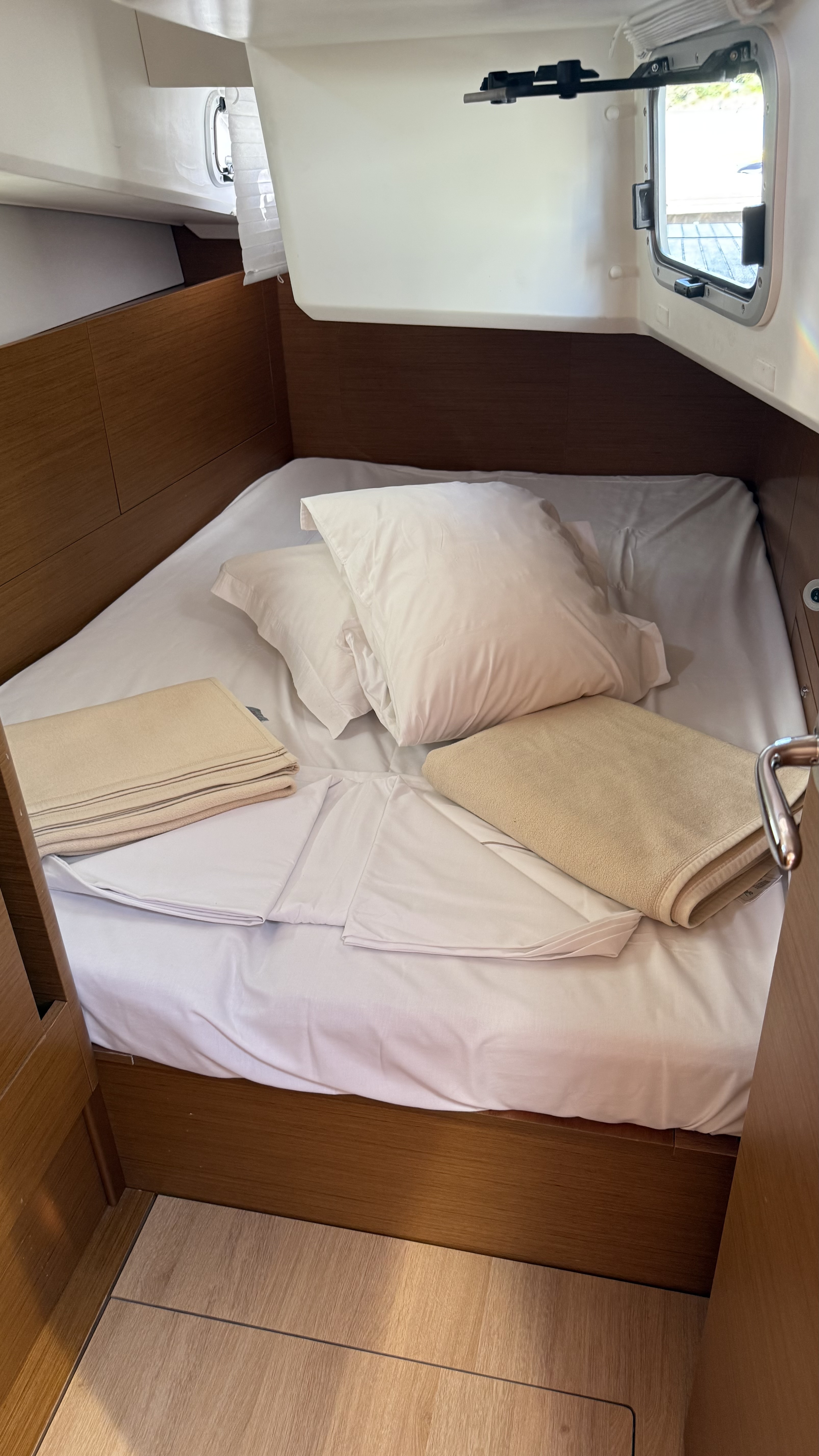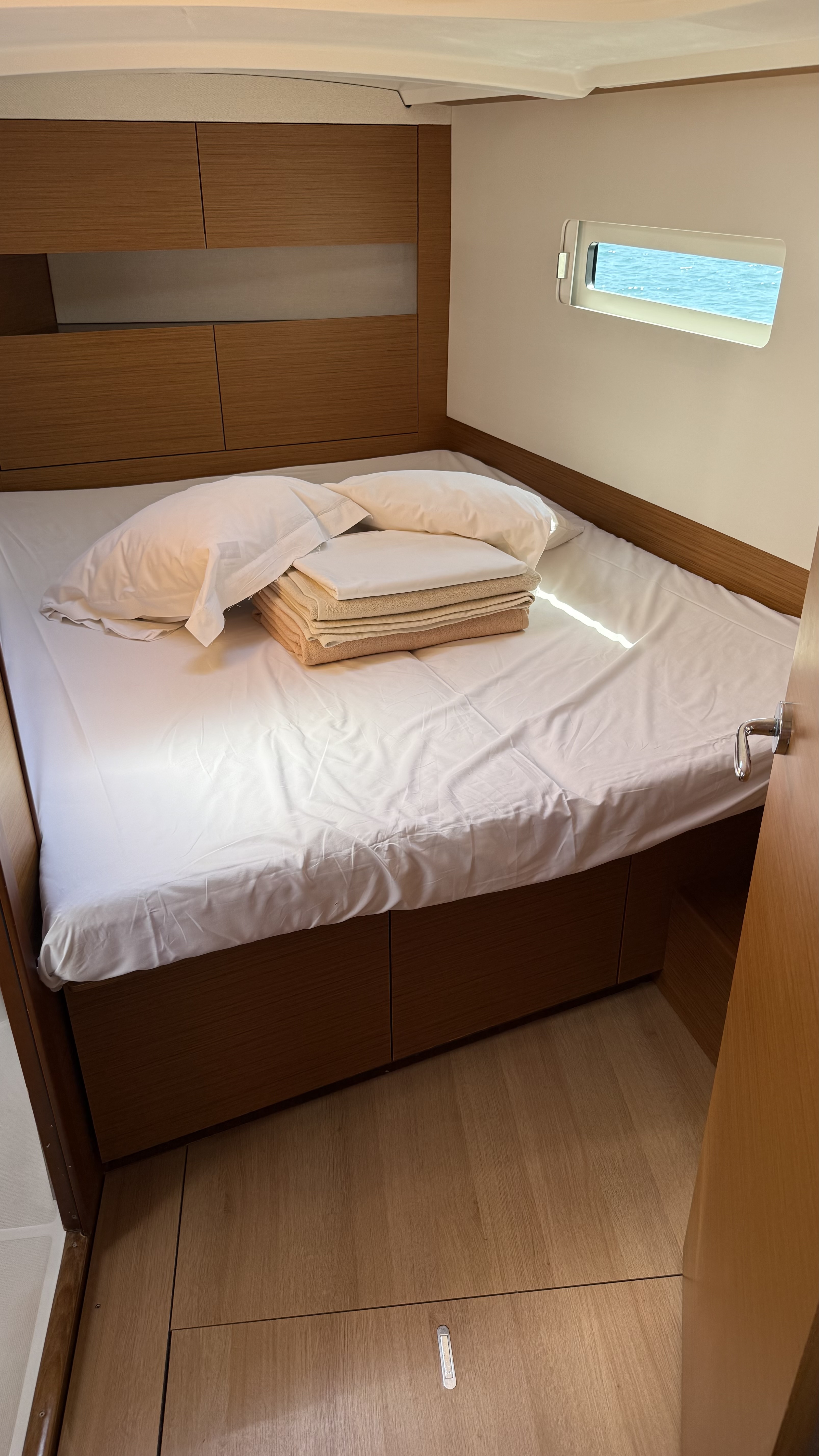 | Inside | Inverter 12V/220V, Kühlschrank, Ladegerät, Luftpumpe für Beiboot, Pantryausstattung, Radio, Salontisch absenkbar, USB Steckdosen in Salon und Kabinen, Ventilatoren in Kabinen, Warmwasser |