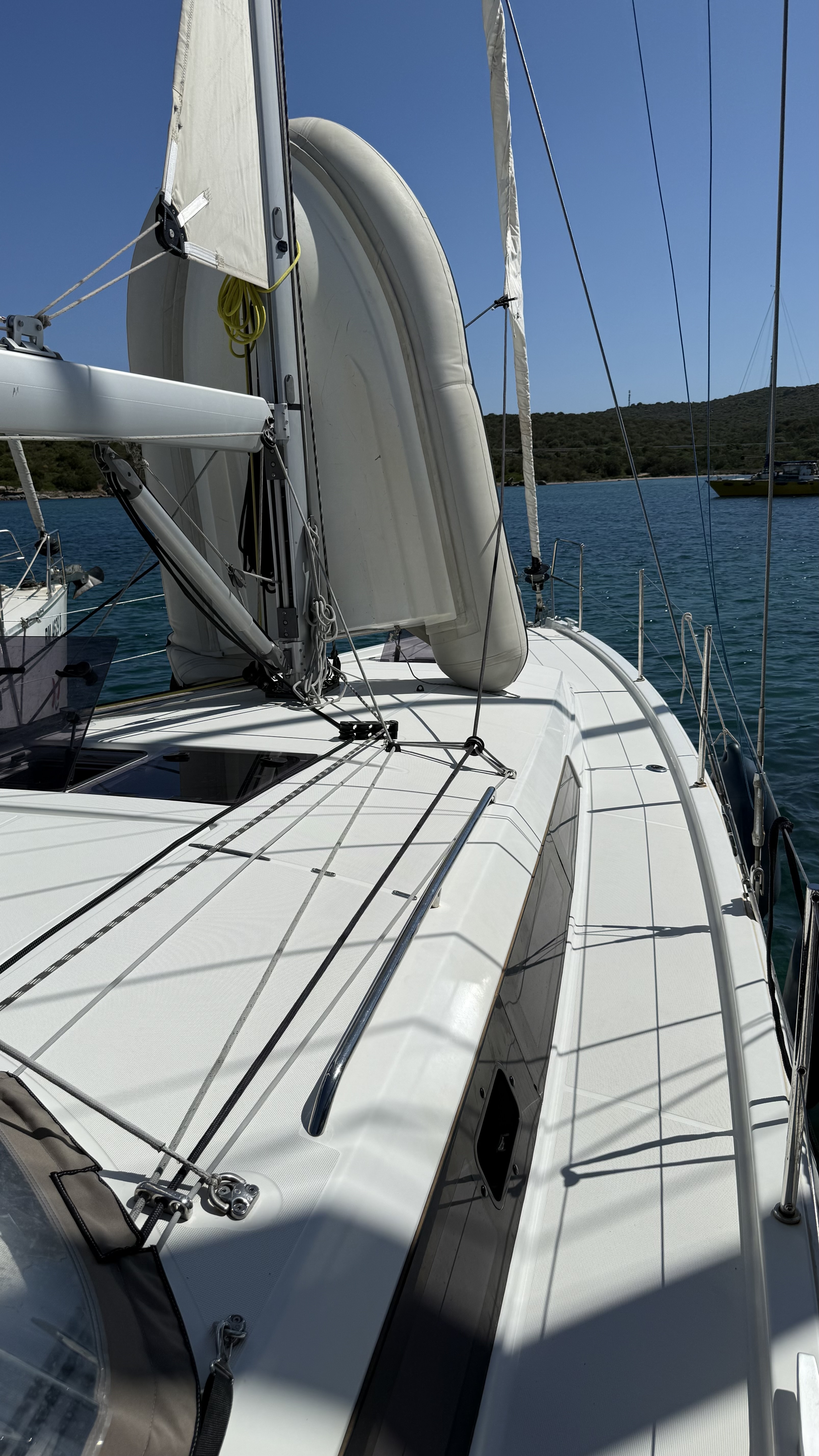 Die Segeleigenschaften der Sun Odyssey 410 sind sehr gut, lediglich im Hafen ohne Bugstrahlruder, mit Doppelruder und extremen Radeffekt nicht einfach zu manövrieren. Das Boot ist sehr gut ausgestattet.