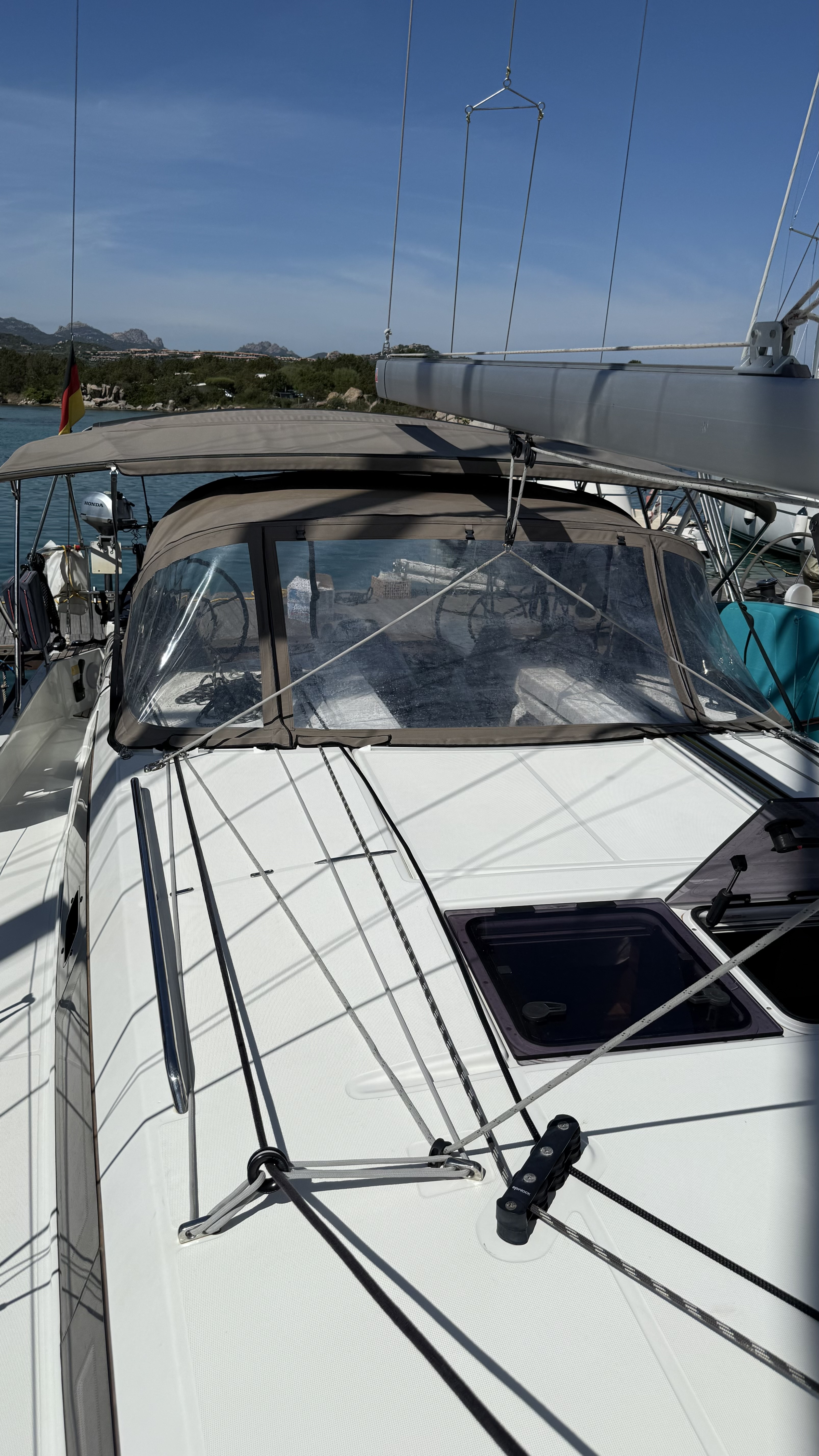 | Outside | 220 V-Landanschluss, Anker mit Kette, Ankerwinsch, Biminitop, Bootshaken, Cockpitdusche, Cockpitlautsprecher, Cockpitpolster, Cockpittisch, Dieselkanister , elektr. Ankerwinsch, Faltpropeller, Fender, Festmacherleinen, Gangway, Kugelfender, Kunststoff-Eimer (Pütz), Sprayhood, Teak im Cockpit, Wantenschneider, Wasserkanister , Wasserschlauch, Windex |