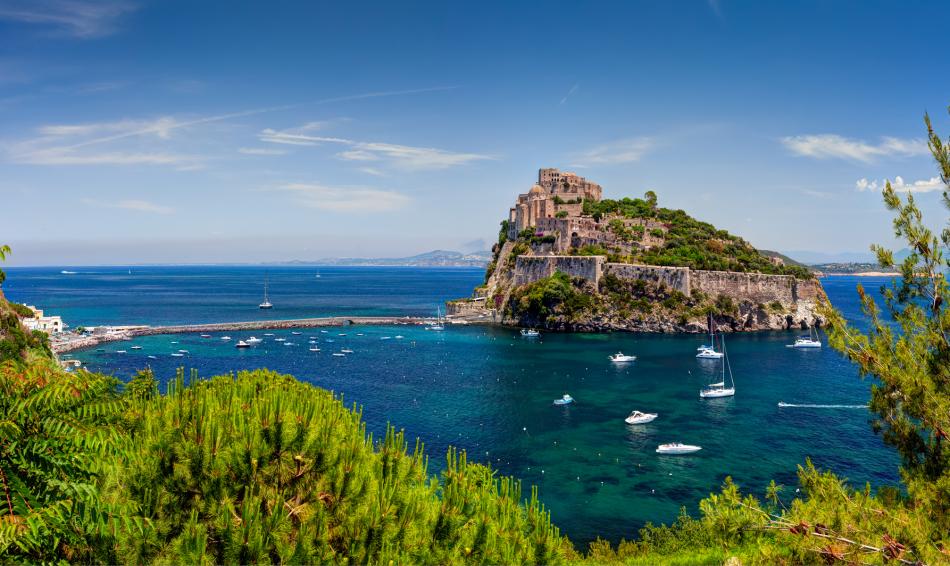 Segeln Sie vom Golf von Neapel zu den Inseln des Kampanischen Archipels: Ischia, Capri und Procida liegen in unmittelbarer Nähe. Auf Ischia beispielsweise, das wie Procida für seine Thermalbäder bekannt ist, thront auf einem Berg die Festung Castello Aragonese mit ihrem angrenzenden Garten. Olivenbäume, Kakteen und Palmen laden hier zum Verweilen ein. Und Capri ist vor allem für seine Grotta Matromania und die Grotta Azzura bekannt. Letztere ist rund 54 m lang, 15 m breit und 30 m hoch. Das bis zu 25 m tiefe Wasser strahlt durch das eindringende Licht in einem wunderschönen Azurblau.