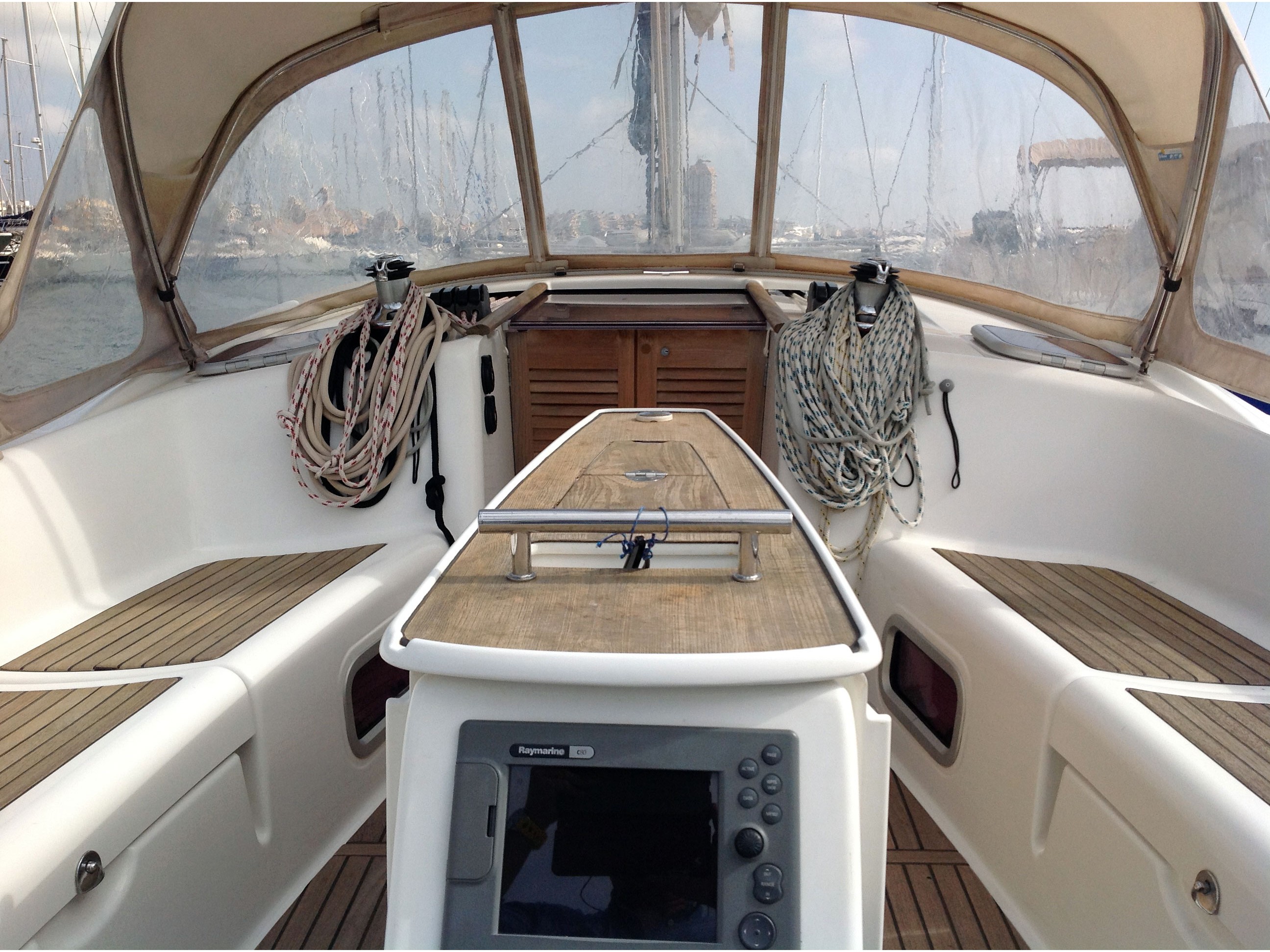 | Safety | Autopilot, Bootsmannstuhl, Bordapotheke, Bordwerkzeug, elektr. Wetterstation, Feststoffschwimmwesten, Feuerlöscher, Handfunkgerät, Leuchtboje, Licht und Leine für Rettungskragen, Lifebelts, Motor-Ersatzteile, Radarreflektor, Rettungsinsel, Rettungsring, Sicherheitsgurt, Taschenlampe, UKW-Funk |