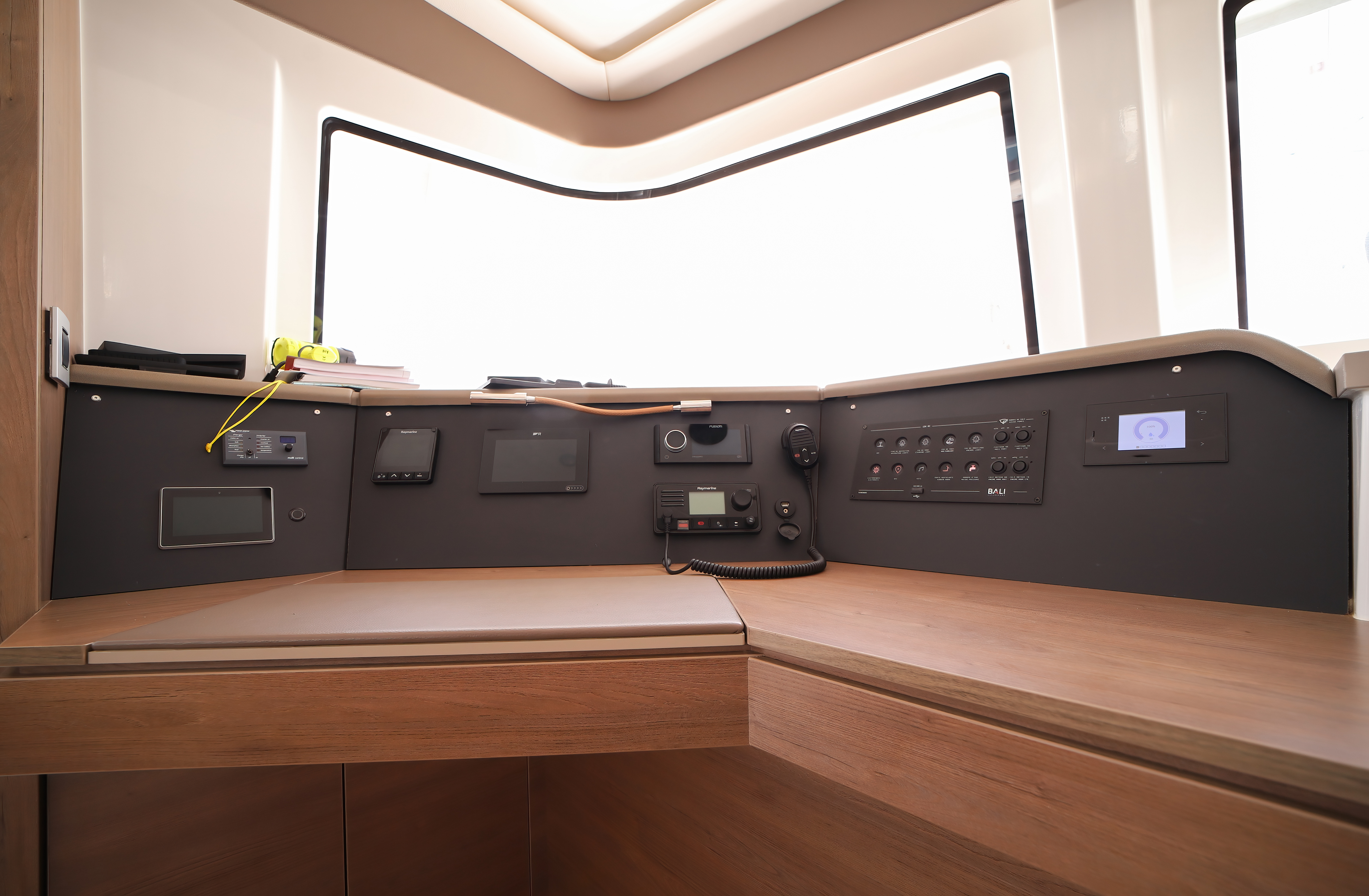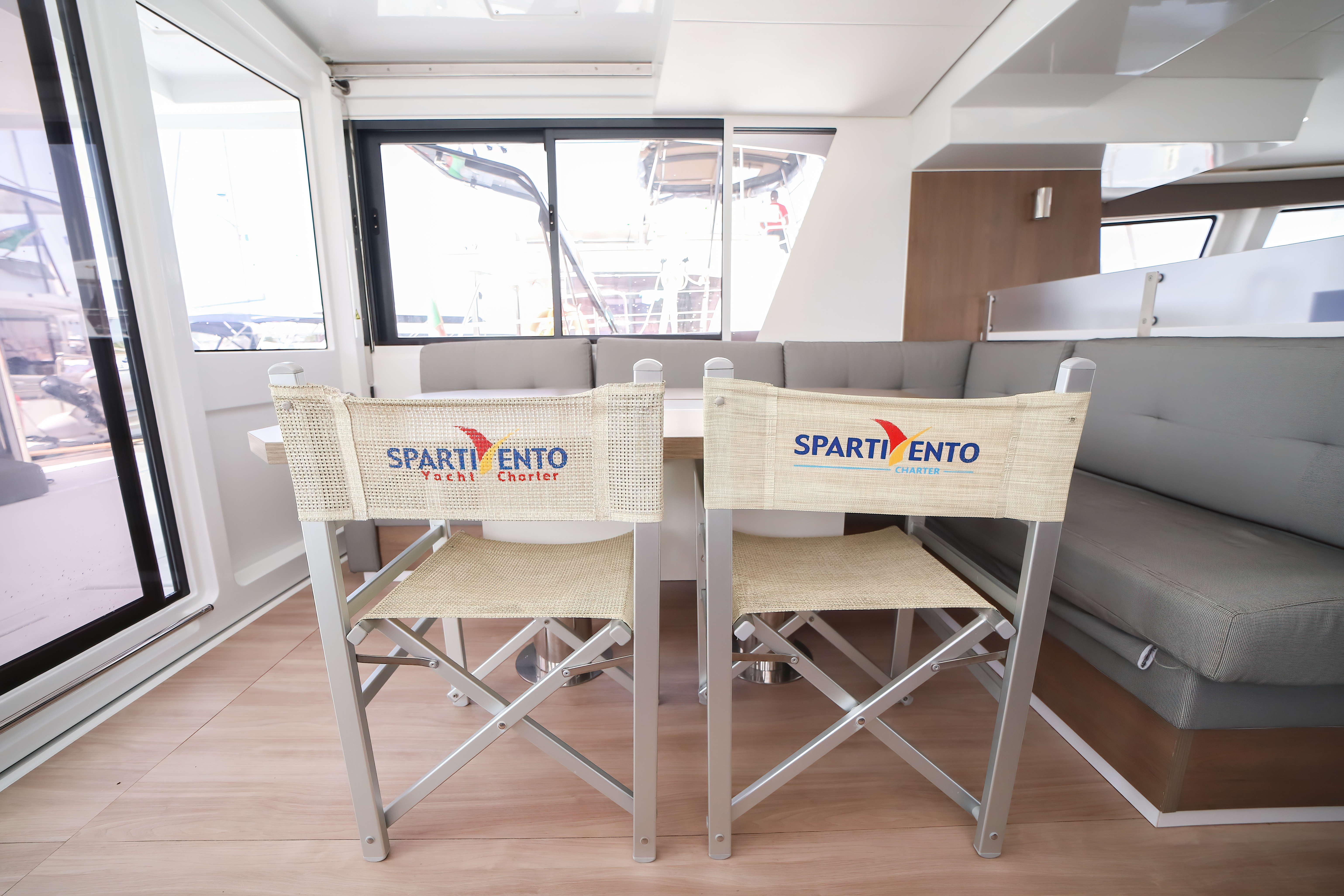| Inside | Bar im Salontisch, Generator, Hi-Fi System, Inverter 12V/220V, Kaffeemaschine, Klimaanlage (ohne Landstrombedarf), Luftpumpe für Beiboot, Mikrowelle, Watermaker, WC (elektr.) |