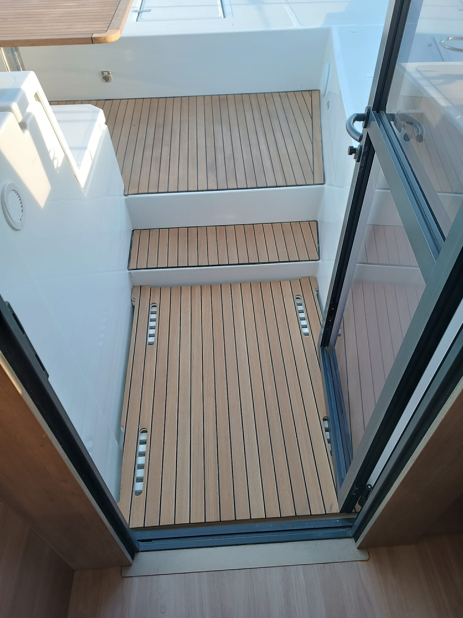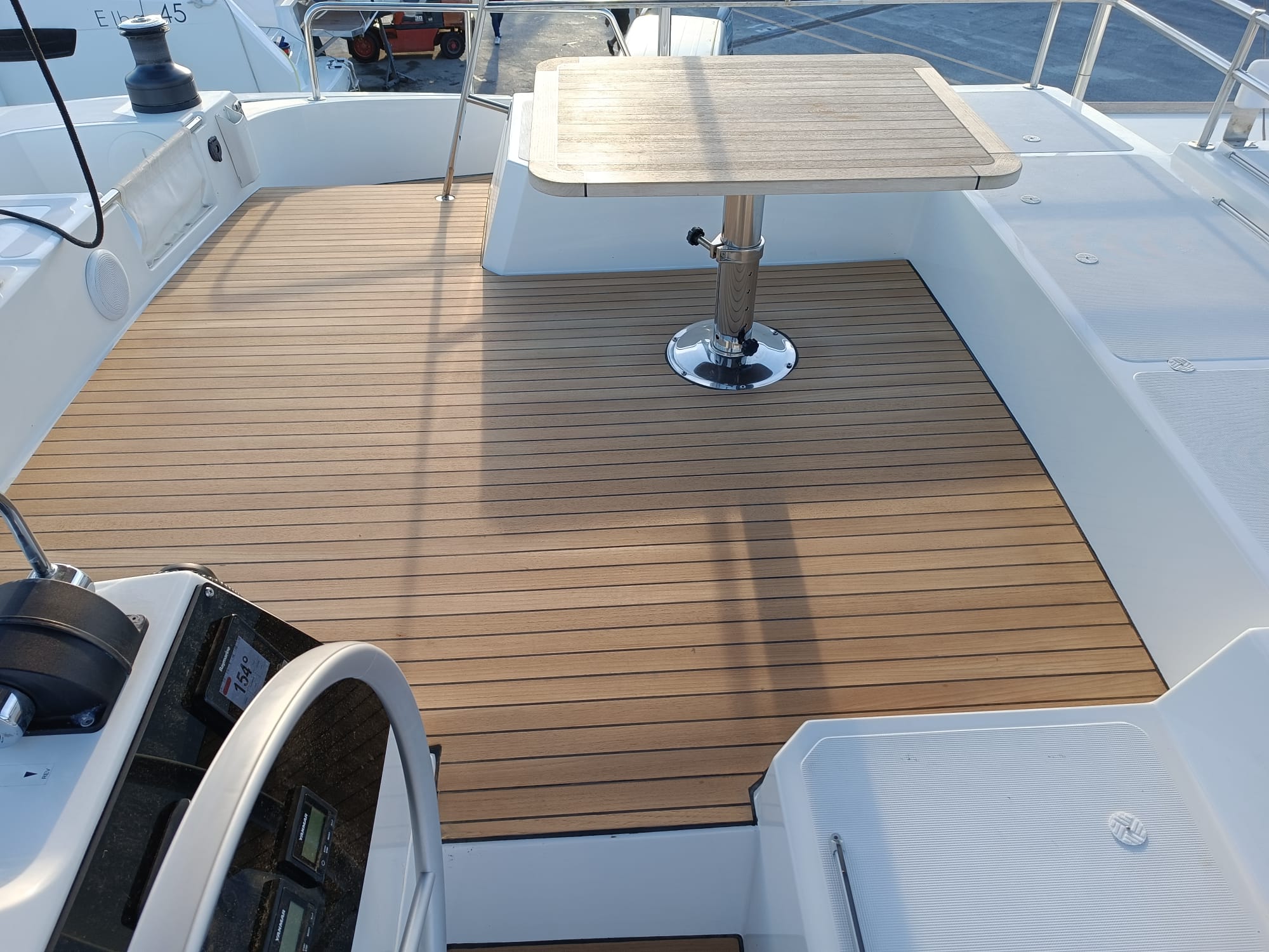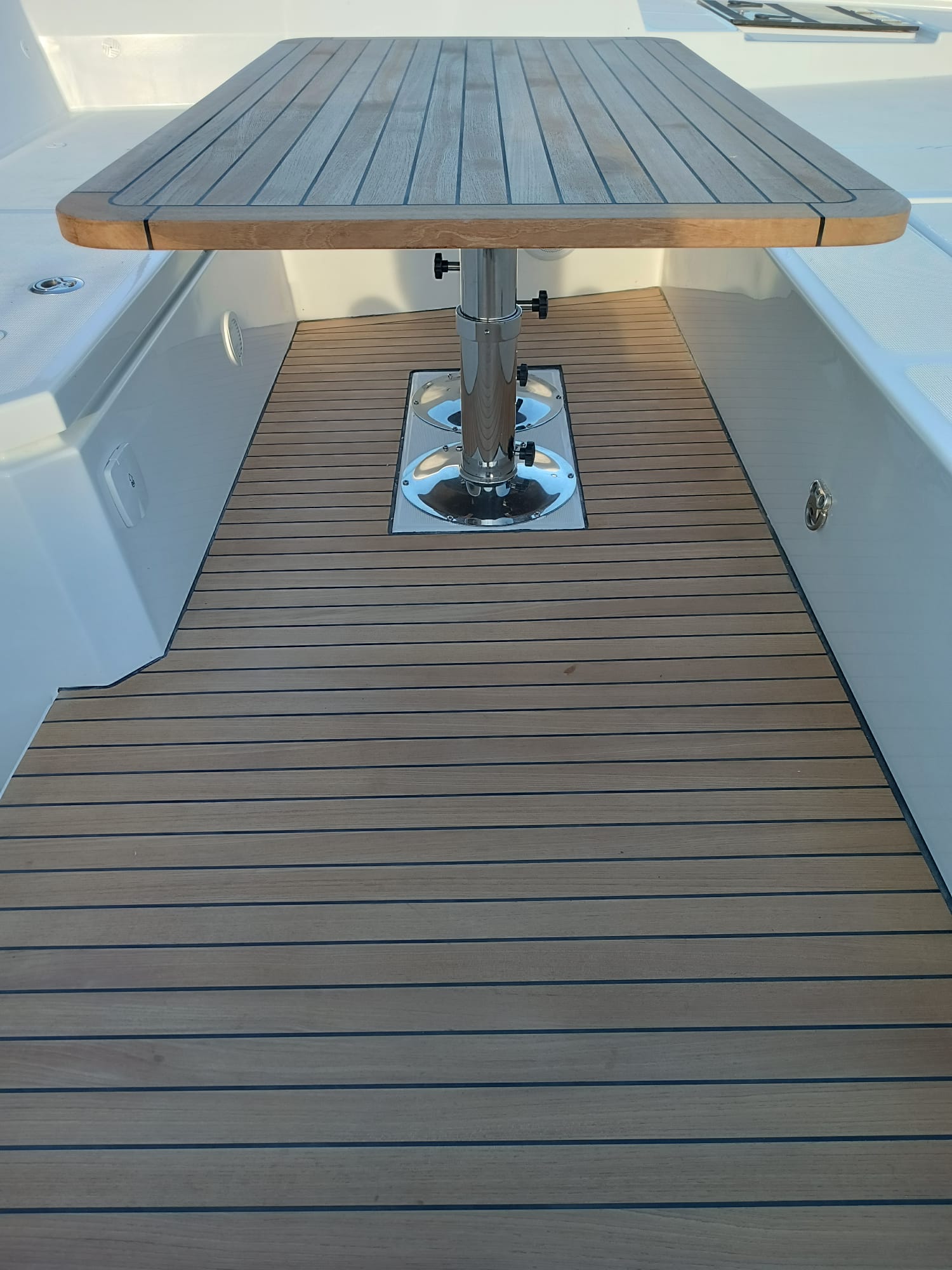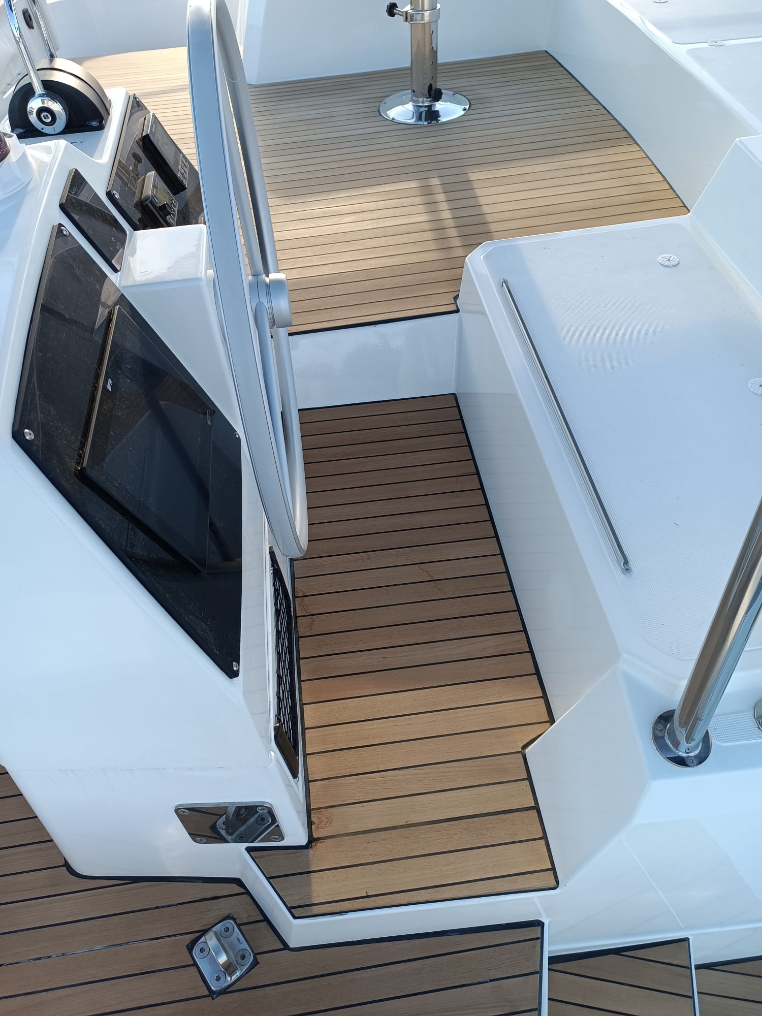 Outside Cockpitdusche, Cockpitlautsprecher, Cockpitpolster, Cockpittisch, Davits, elektr. Ankerwinsch, elektr. Winsch, Grill, Solaranlage, Teak auf Flybridge, Teakdeck, Unterwasserbeleuchtung