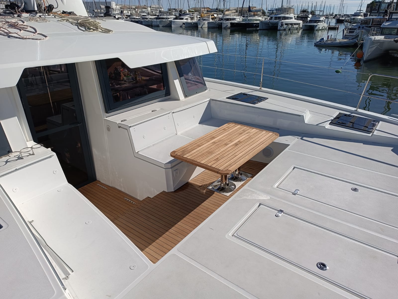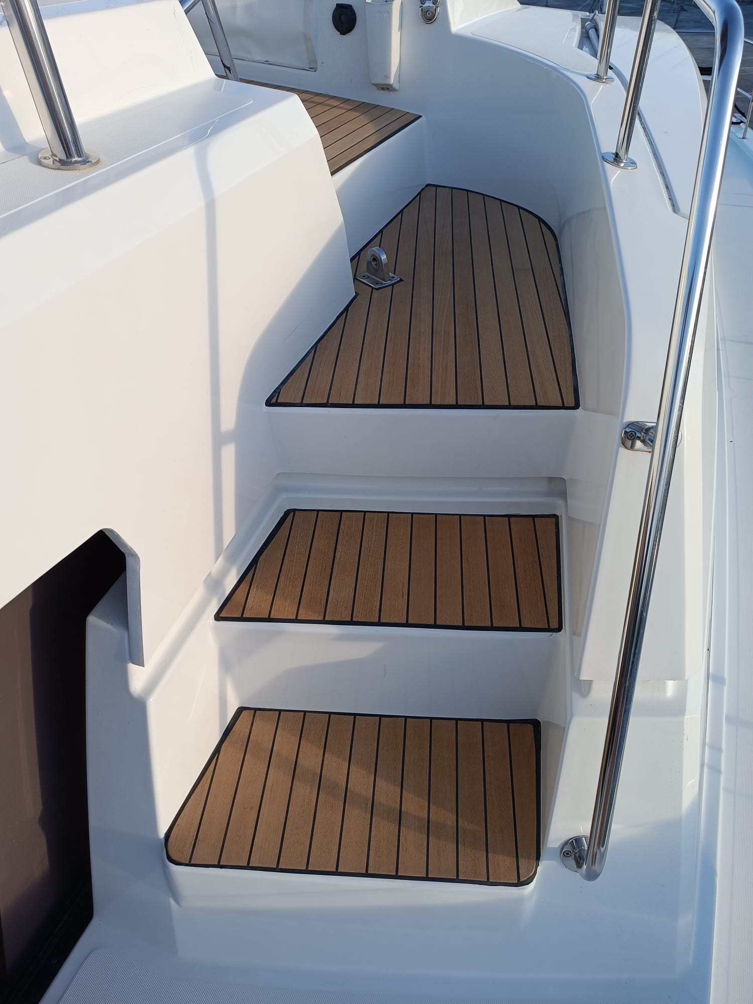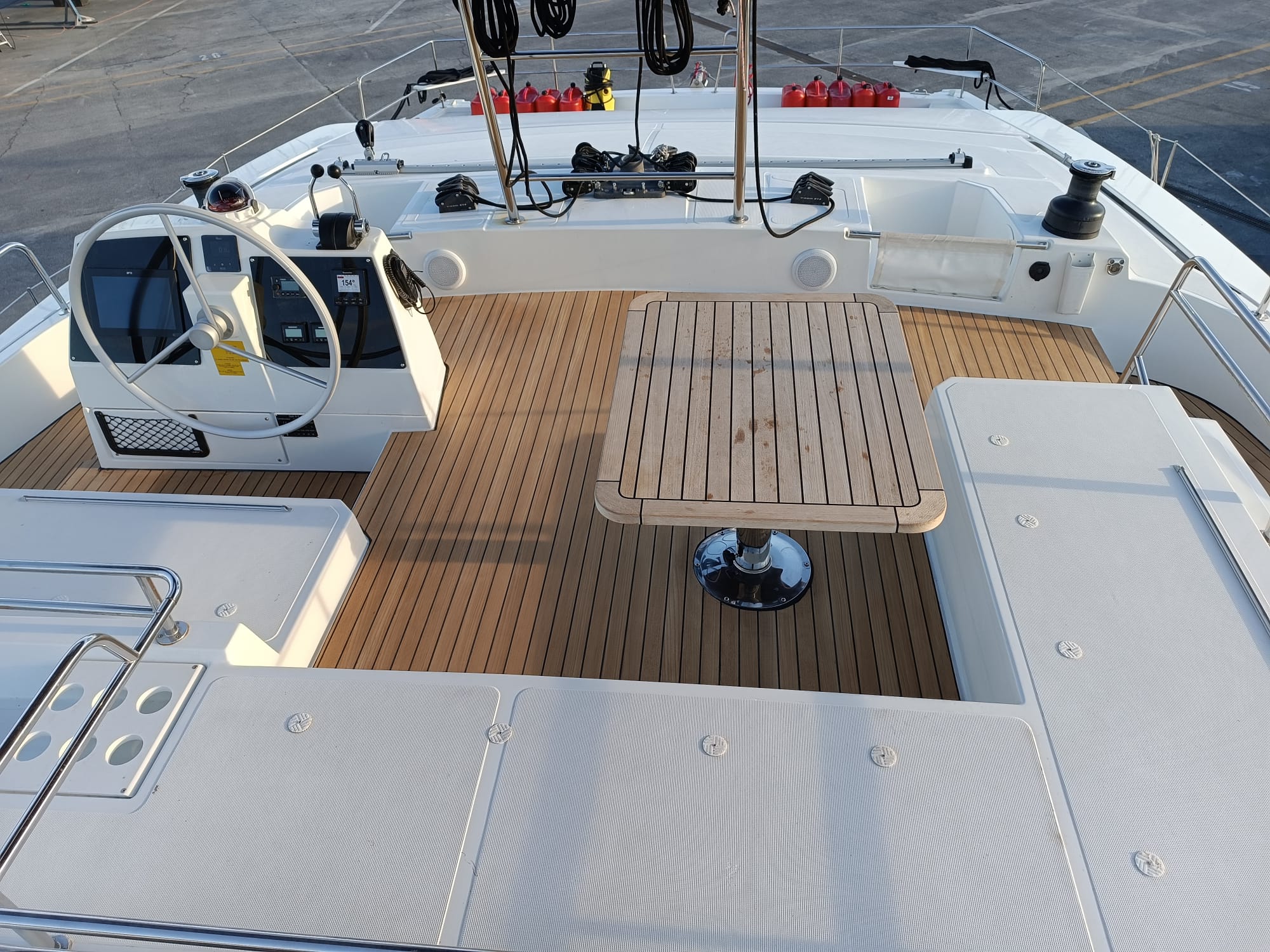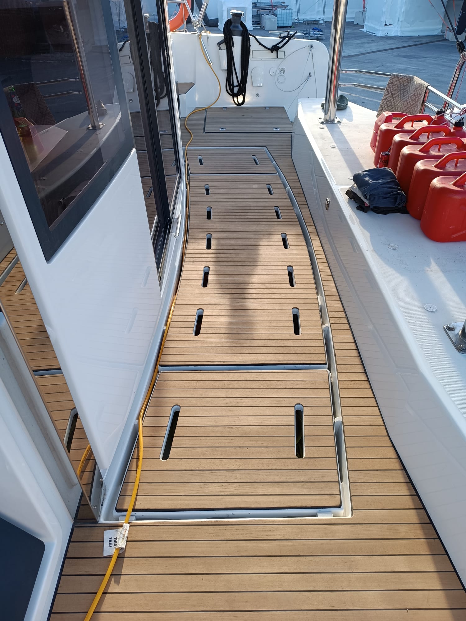 Outside Cockpitdusche, Cockpitlautsprecher, Cockpitpolster, Cockpittisch, Davits, elektr. Ankerwinsch, elektr. Winsch, Grill, Solaranlage, Teak auf Flybridge, Teakdeck, Unterwasserbeleuchtung
