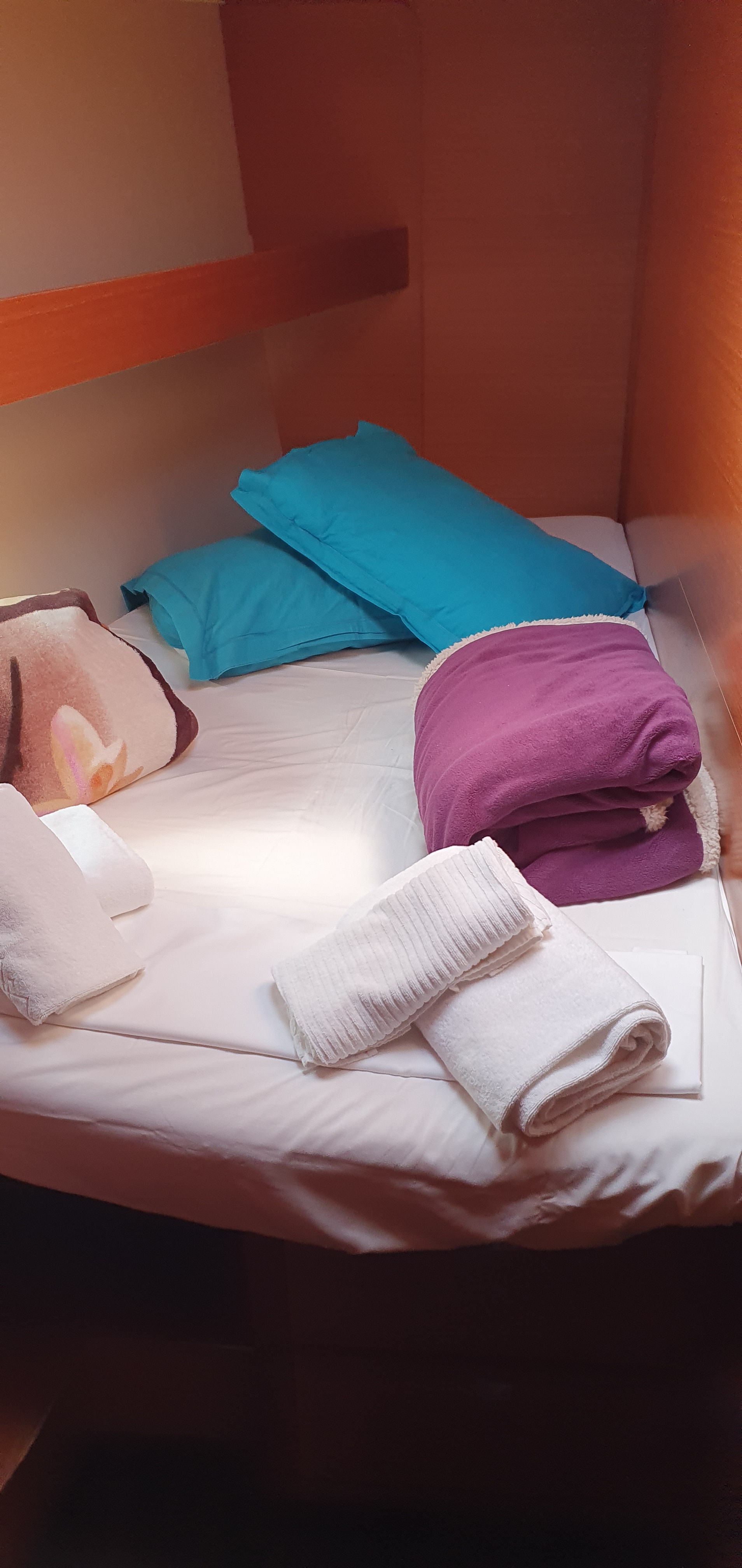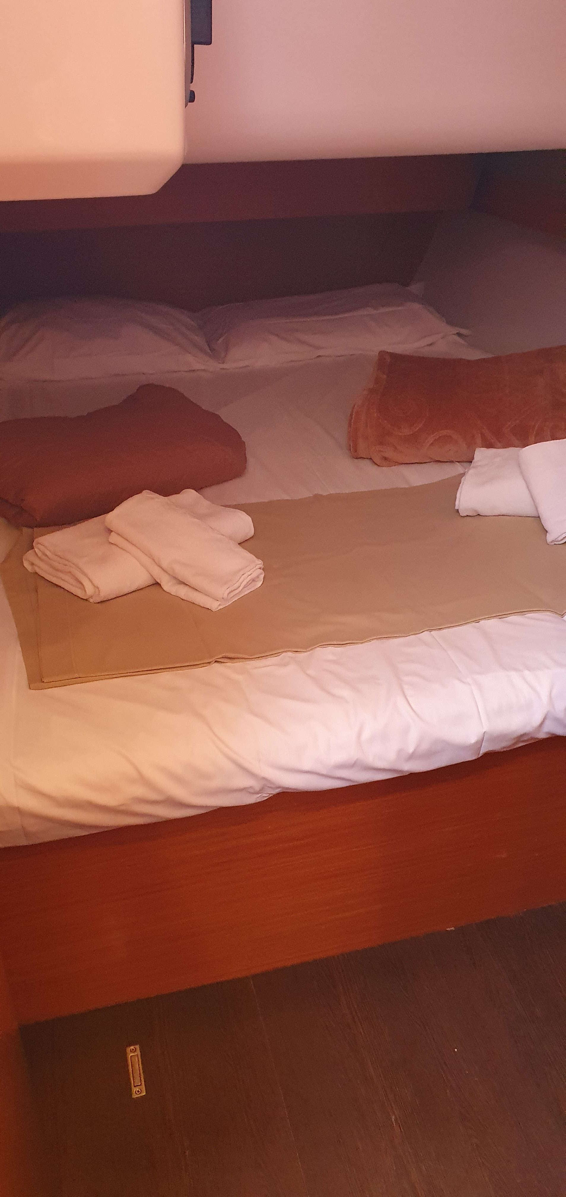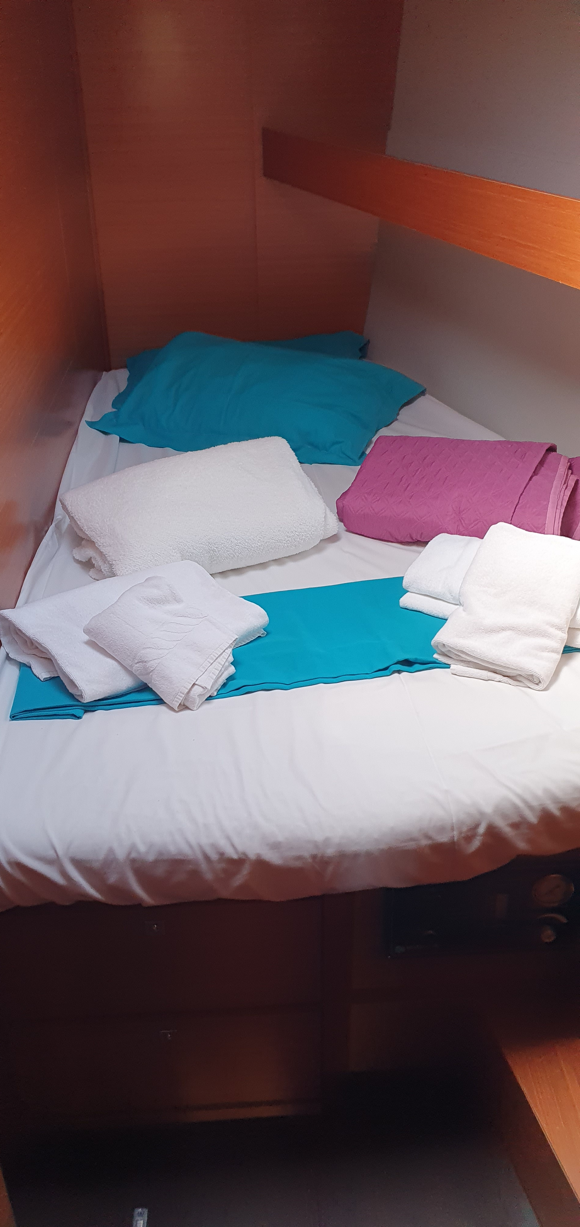 | Inside | 220V Steckdosen, Backofen, Gasherd, Inverter 12V/220V, Kühlschrank, Ladegerät, Radio mit CD und MP3, Salontisch absenkbar, Ventilatoren in Kabinen, Watermaker, WC (elektr.) |