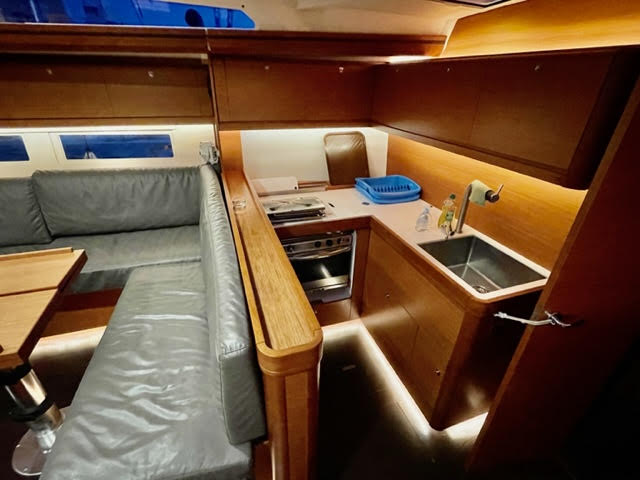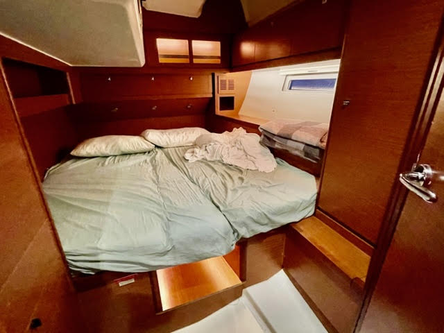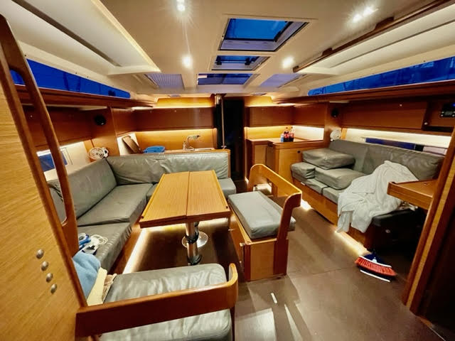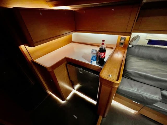 Sogar eine Klimaanlage für Saloon und in den Kabinen, zusätzlicher Powergenerator und Watermaker. Trotz guter Ausstattung allerdings keine Lautsprecher oben im Cockpit.