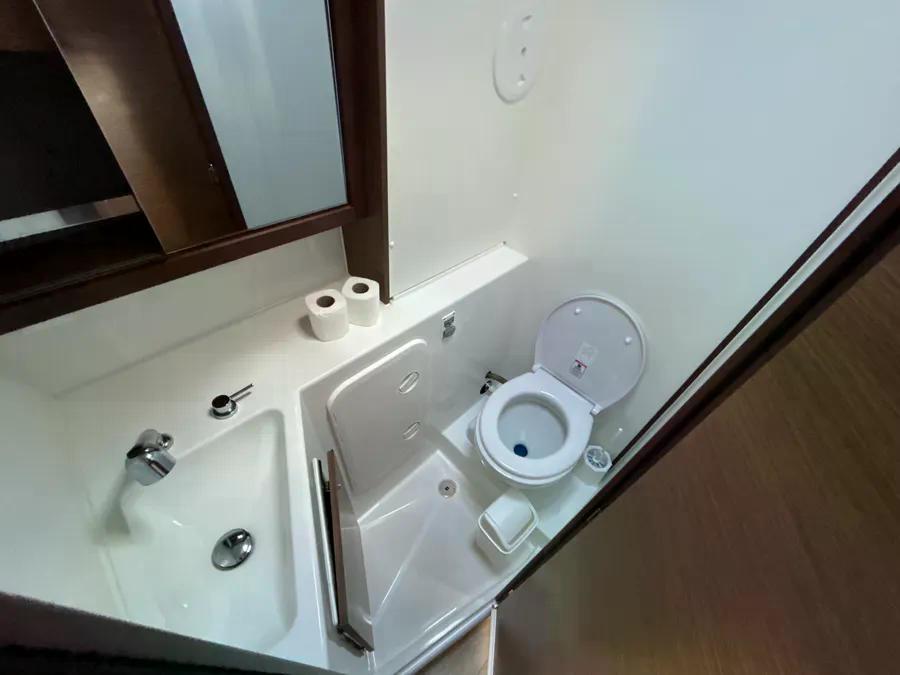 | Inside | 220V Steckdosen, Frischwasserpumpe, Inverter 12V/220V, Klimaanlage (Landstrom), Kühlschrank, Ladegerät, Radio, Salontisch absenkbar, USB Steckdose, Ventilatoren in Kabinen, Watermaker, WC (elektr.) |