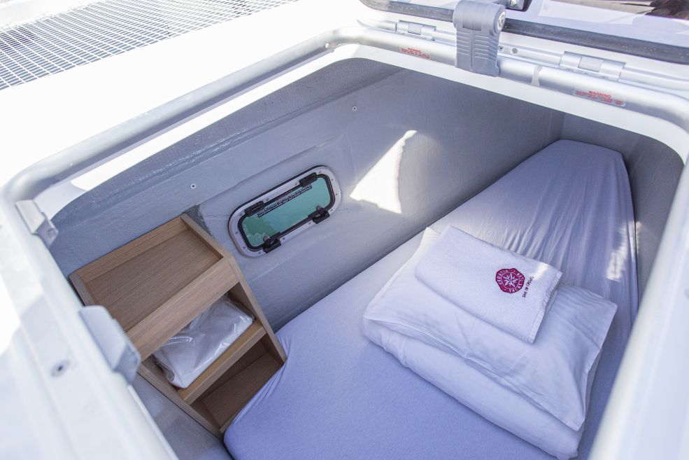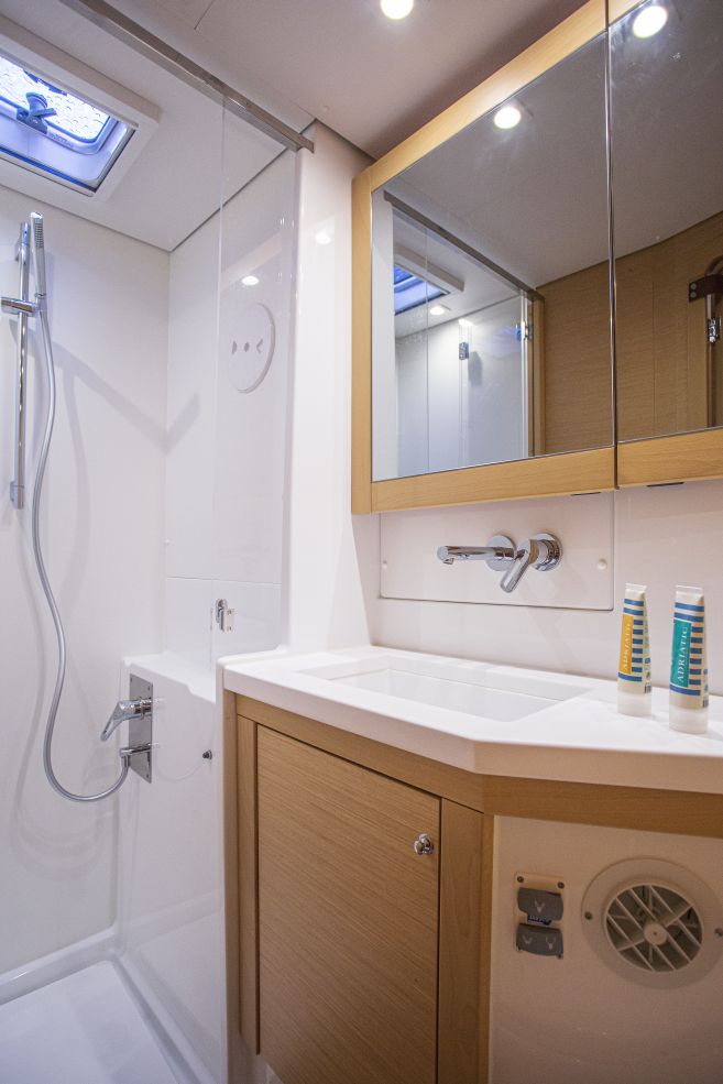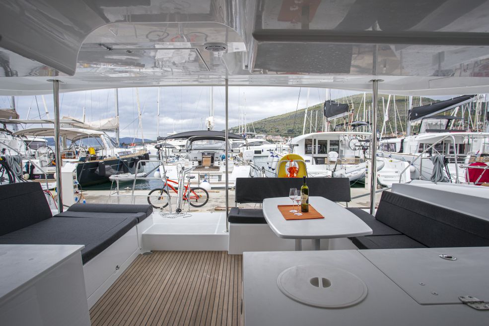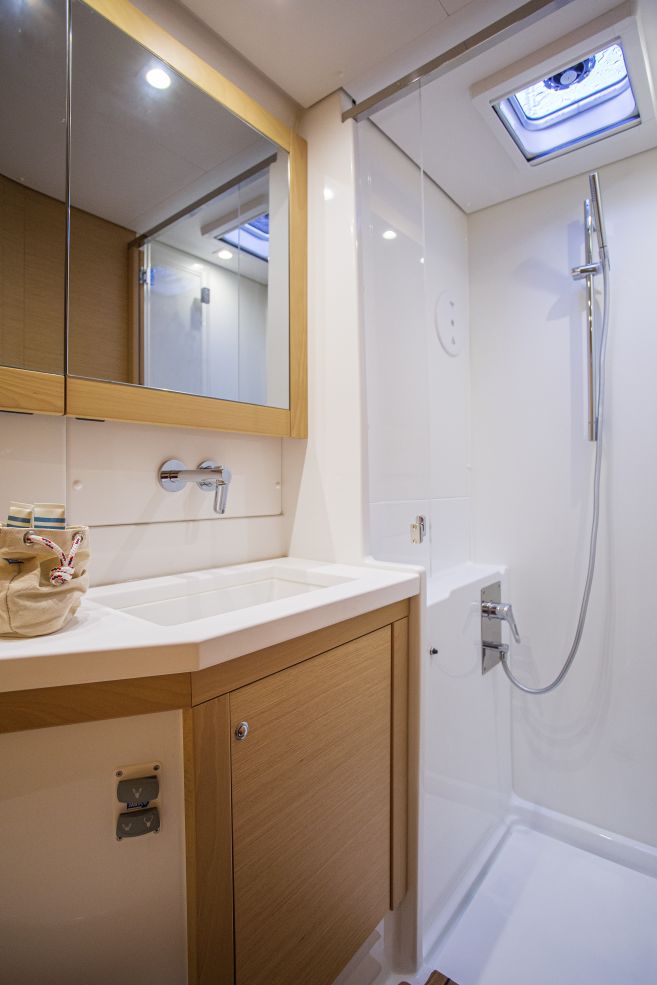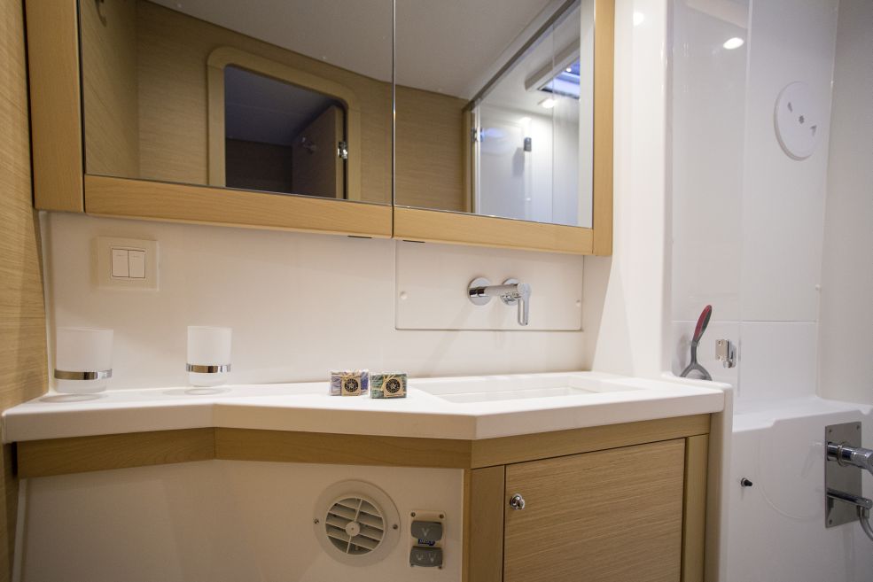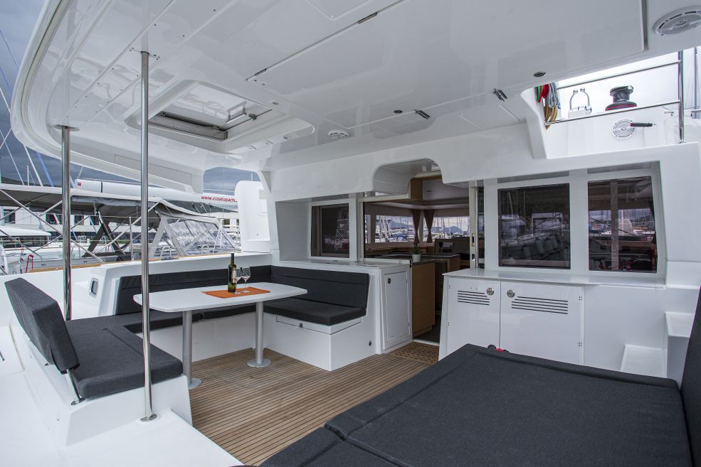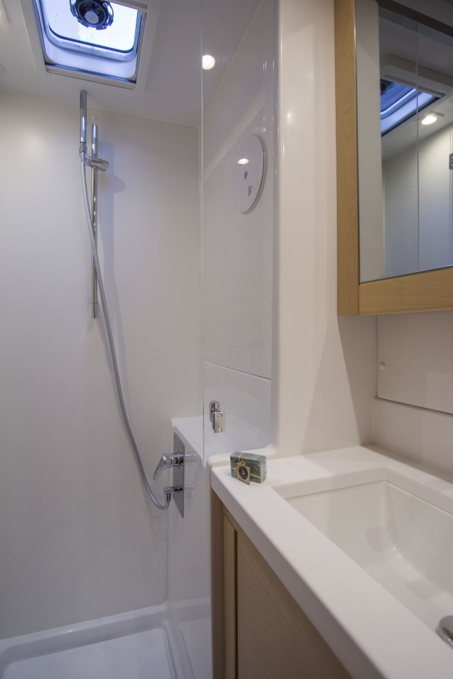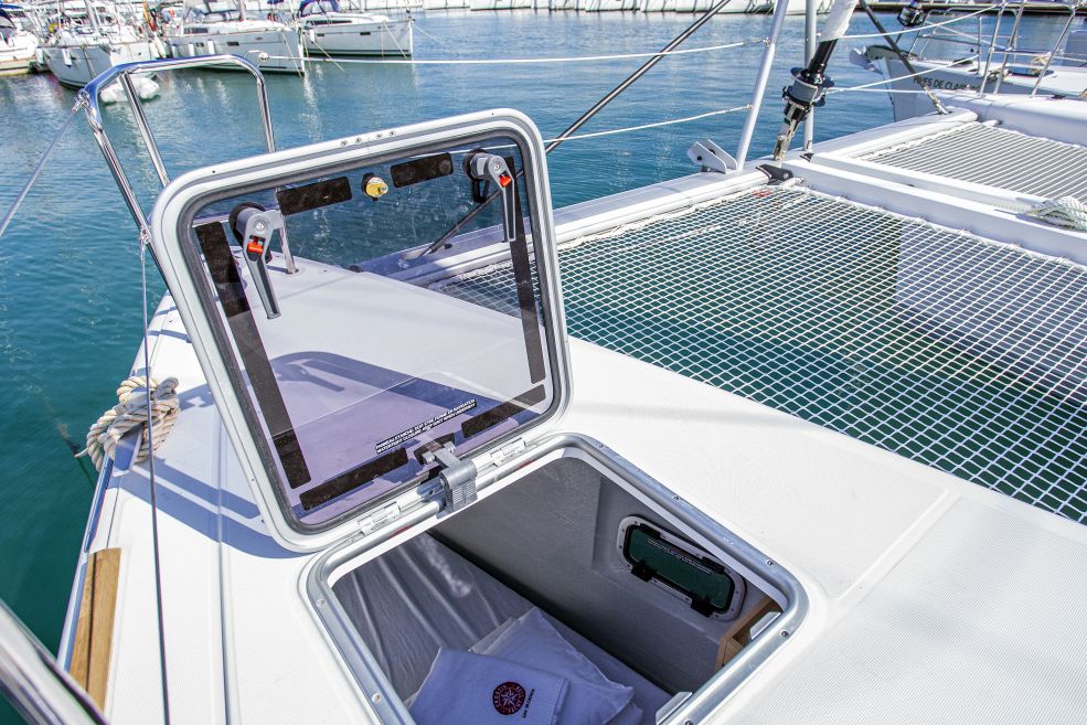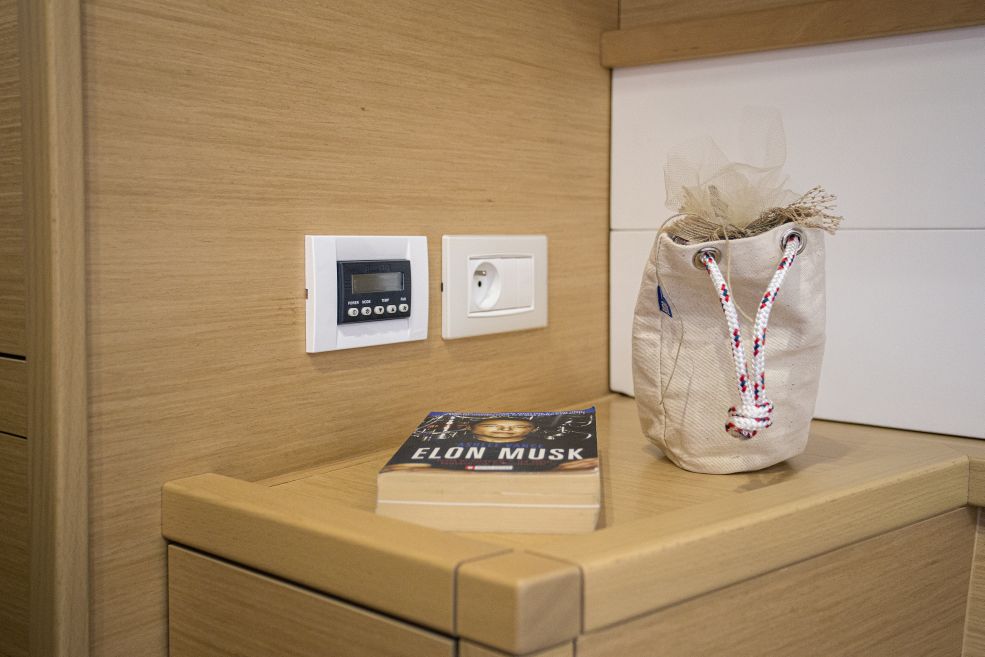 | Outside | Biminitop, Cockpitlautsprecher, Cockpitpolster, Cockpittisch, Davits, elektr. Ankerwinsch, elektr. Winsch, Faltpropeller |