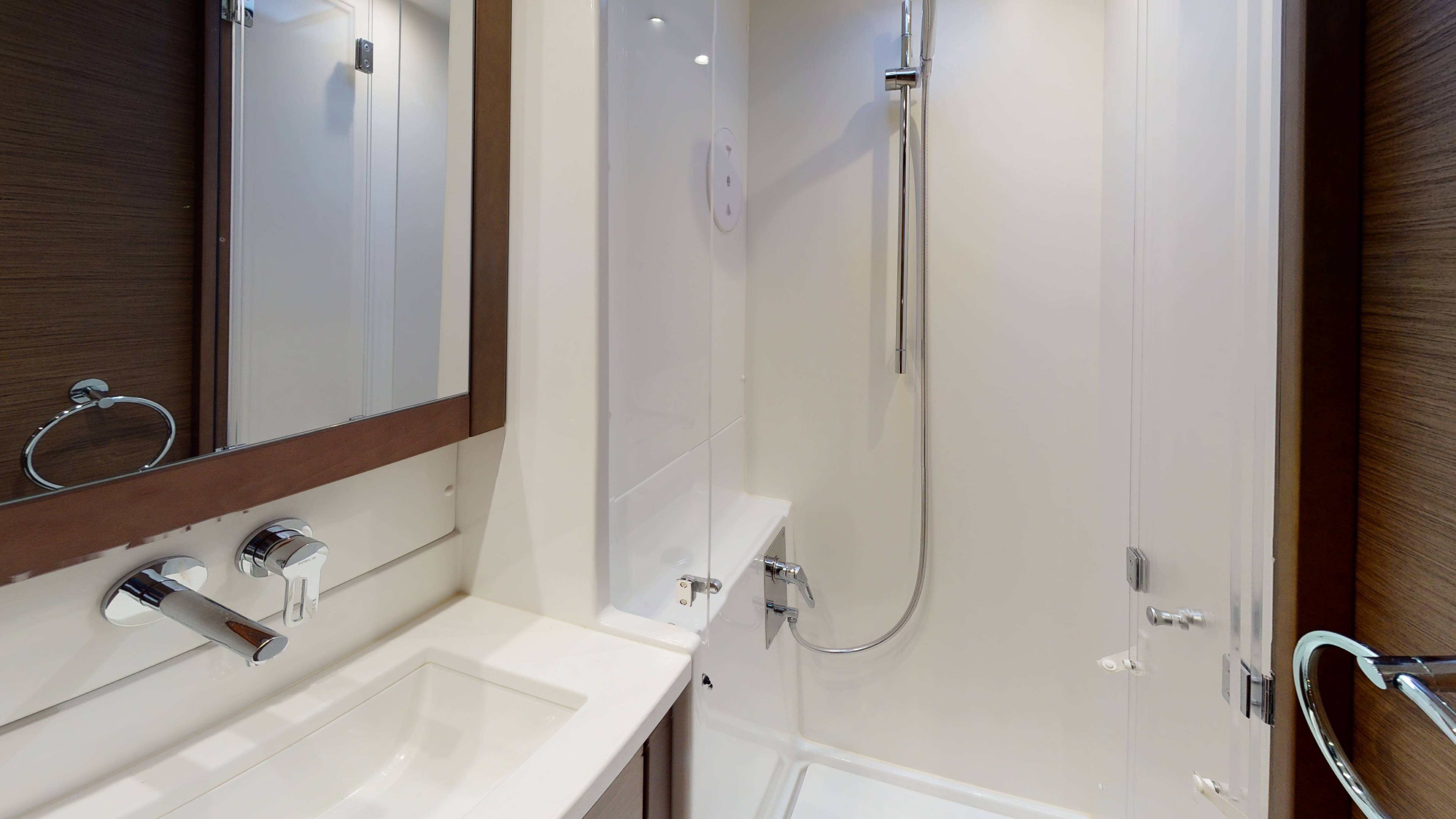 | Inside | Backofen, Gasherd, Gefrierschrank, Generator, Geschirrspüler, Hi-Fi System, Klimaanlage (ohne Landstrombedarf), Kühlschrank, USB Steckdosen in den Kabinen, Warmwasser, Watermaker, WC (elektr.) |