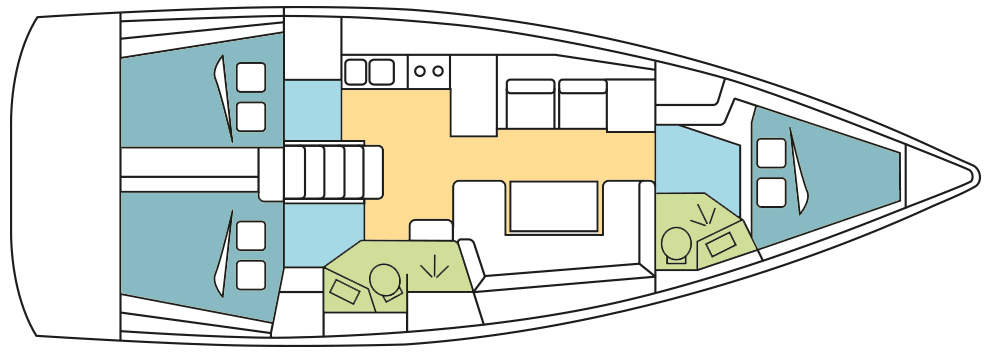 | Kabinen: | 3+1 | Kojen: | 6+1+2 |