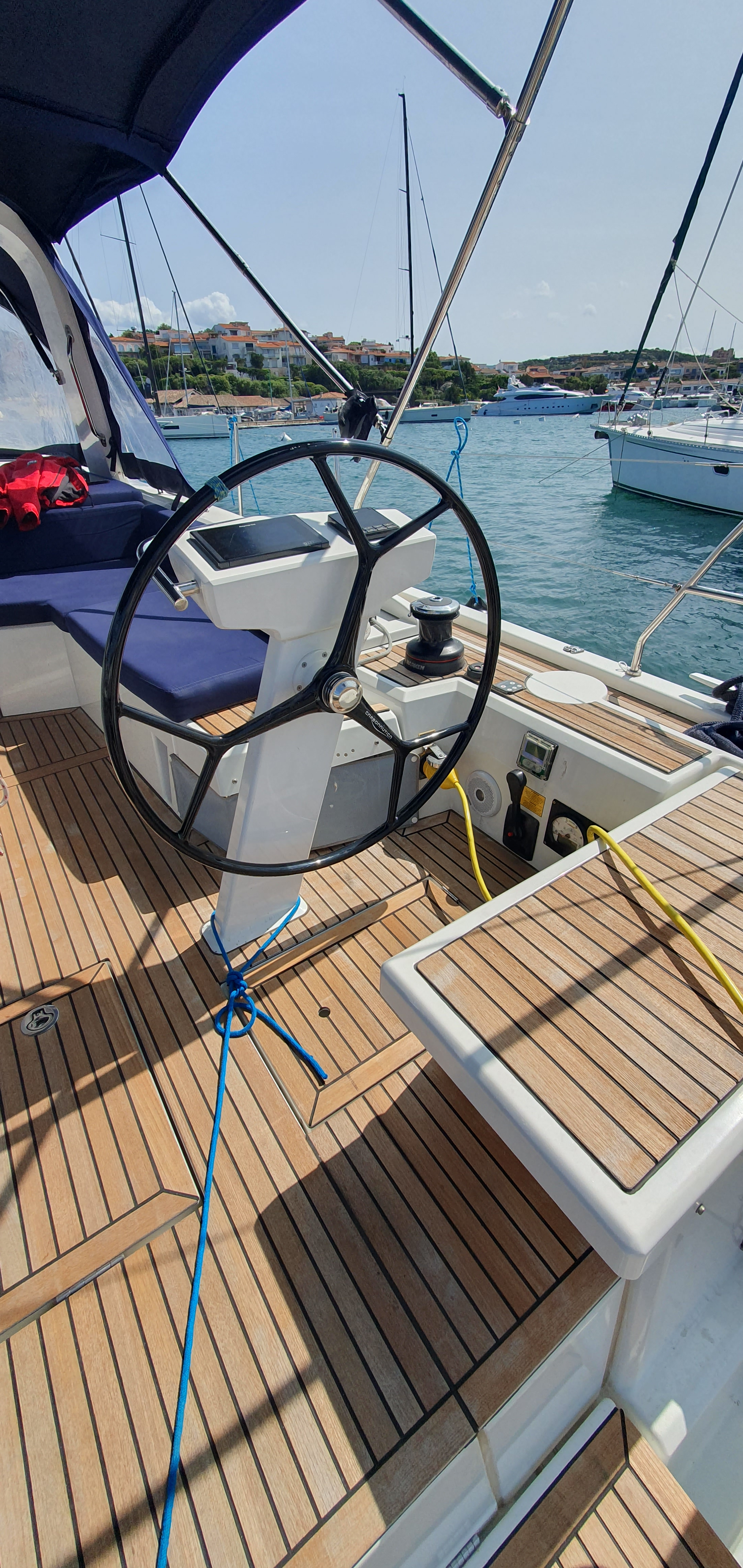 | Outside | Anker mit Kette, Badeplattform, Biminitop, Cockpitdusche, Cockpitlautsprecher, Cockpitpolster, elektr. Ankerwinsch, elektr. Winsch, Gangway, Sprayhood, Teakdeck |
