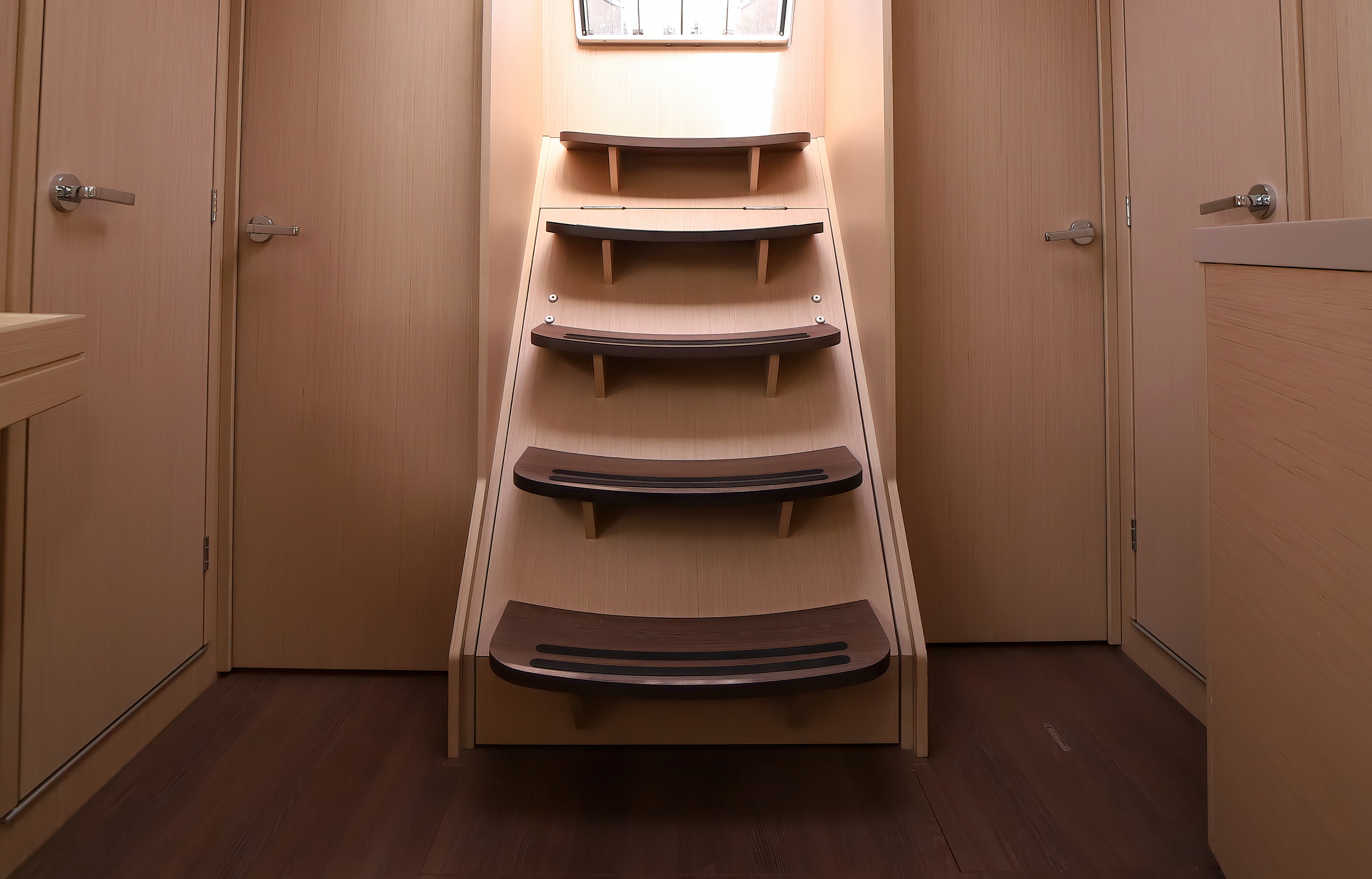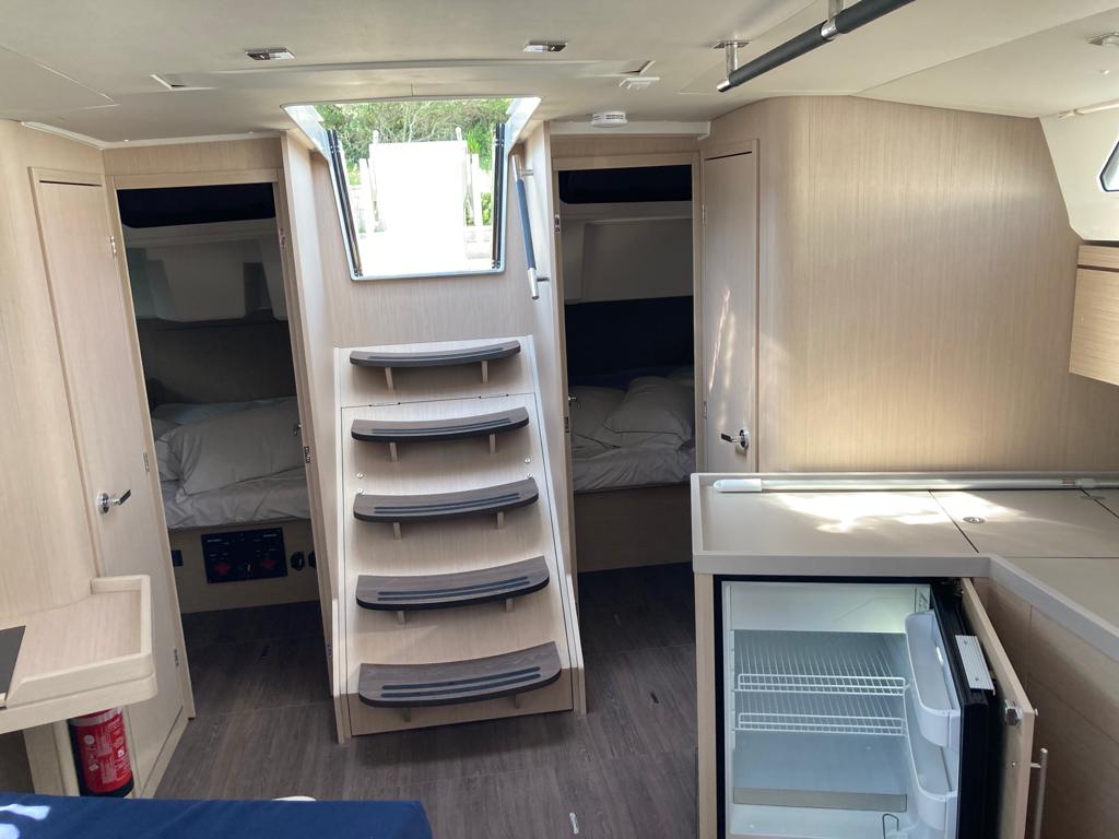 Inside Gasherd mit Backofen, Inverter 12V/220V, Kühlschrank, Landstromkabel, Luftpumpe für Beiboot, Mikrowelle, Ventilator, WC (elektr.)