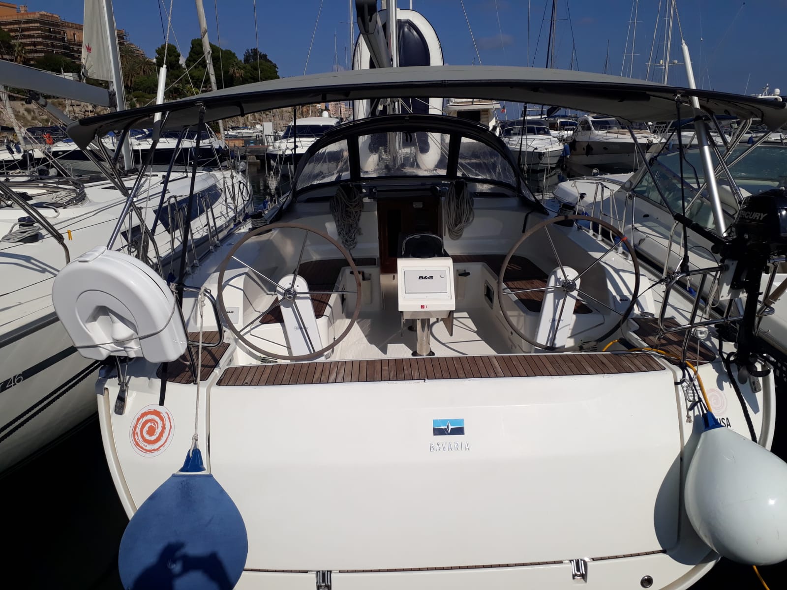 | Outside | Biminitop, Bootshaken, Cockpitdusche, Fender, Festmacherleinen, Sprayhood |