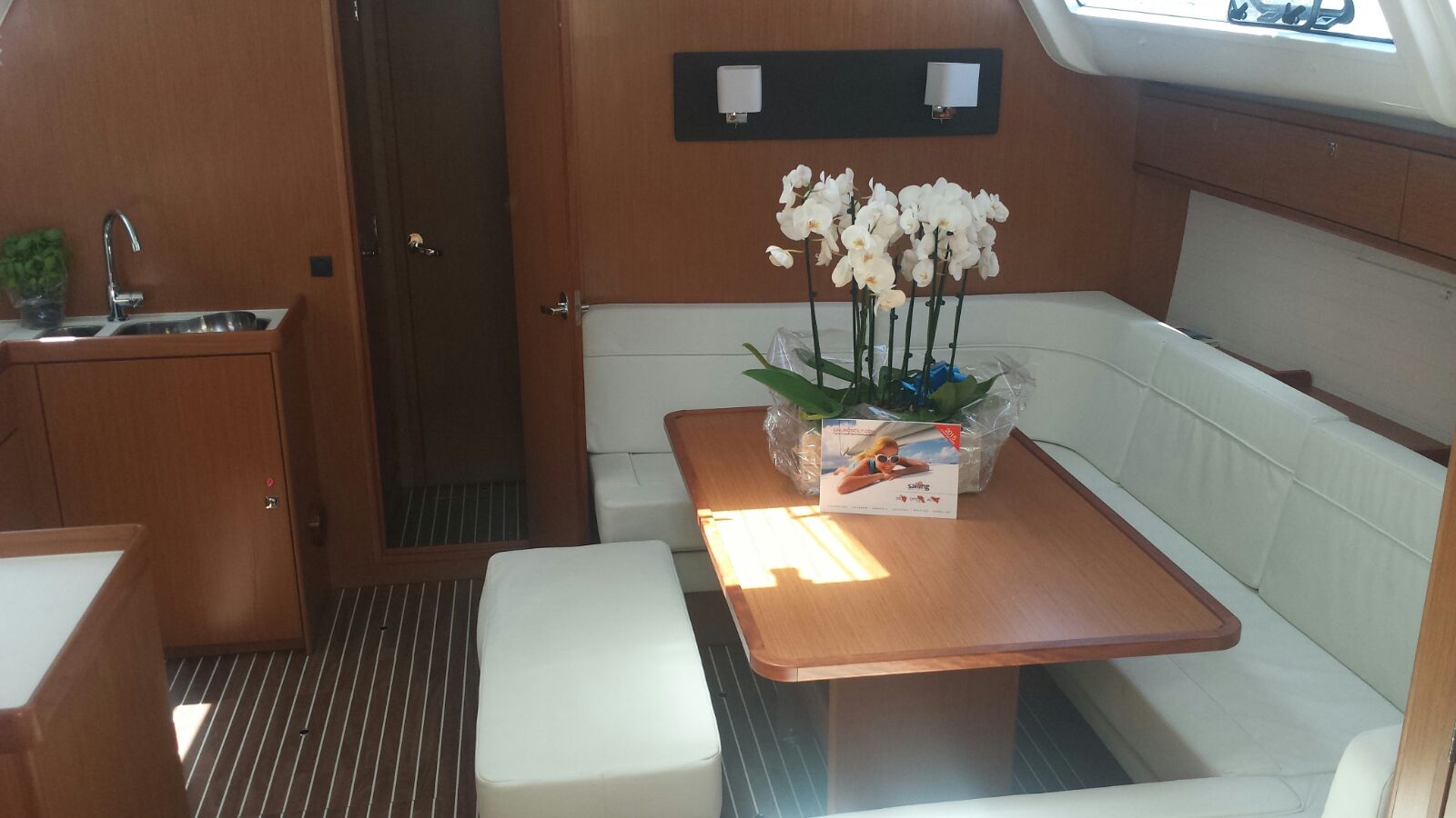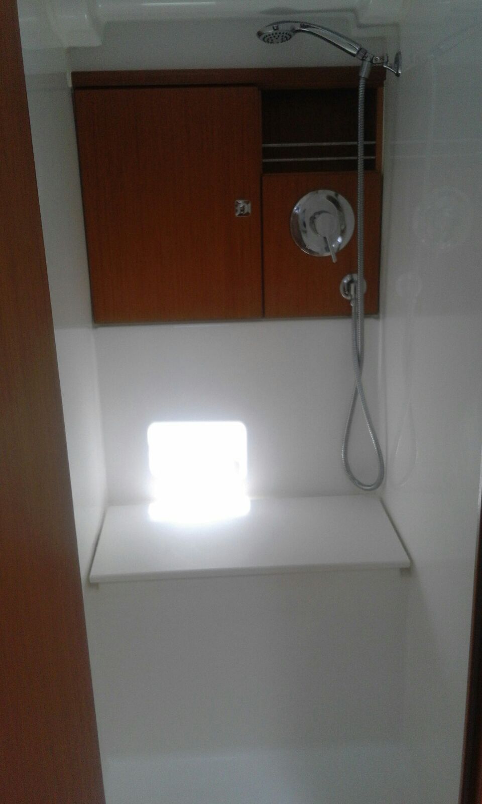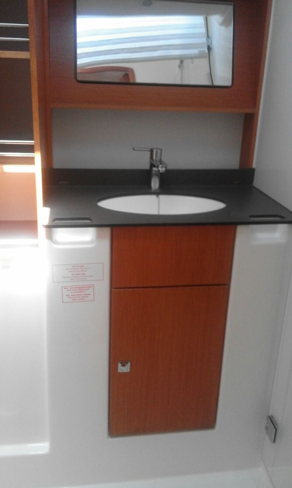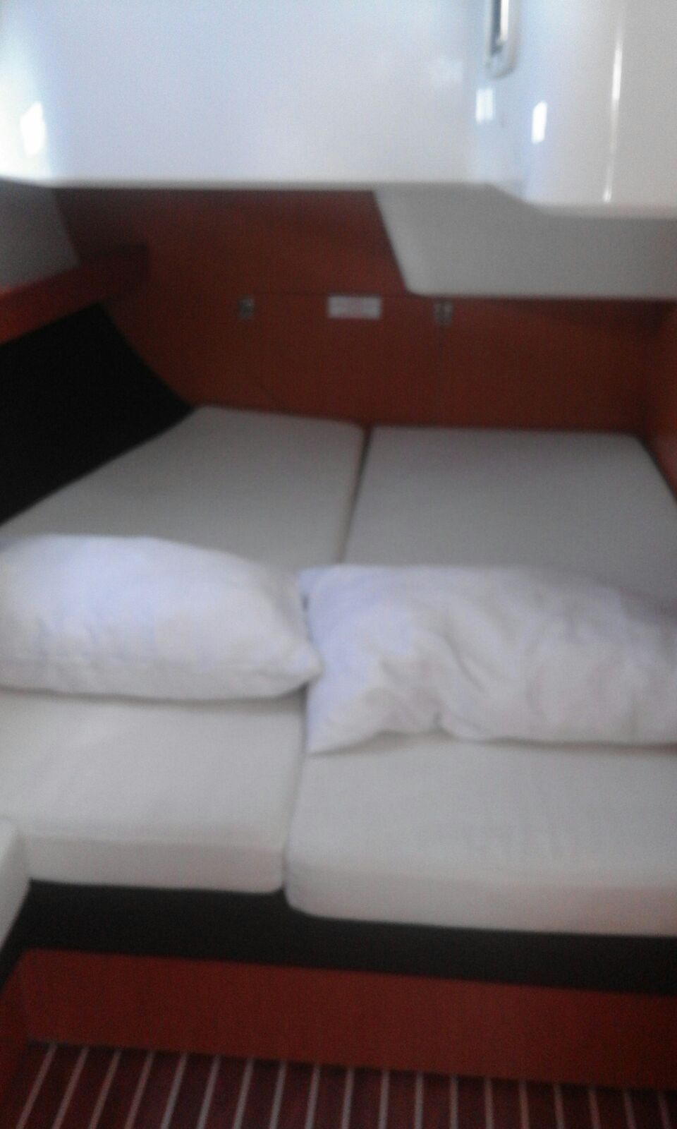 | Outside | 220 V-Landanschluss, Anker mit Kette, Badeleiter, Biminitop, Bootshaken, Cockpitdusche, Cockpitlautsprecher, Cockpittisch, Deckbürste, elektr. Ankerwinsch, Fender, Festmacherleinen, Gangway, Kunststoff-Eimer (Pütz), Sprayhood, Teak im Cockpit, Wasserschlauch, Windex, Winschen |