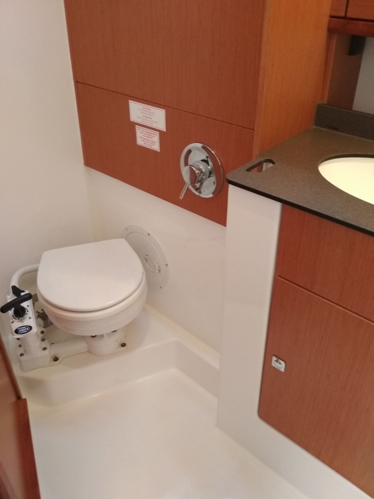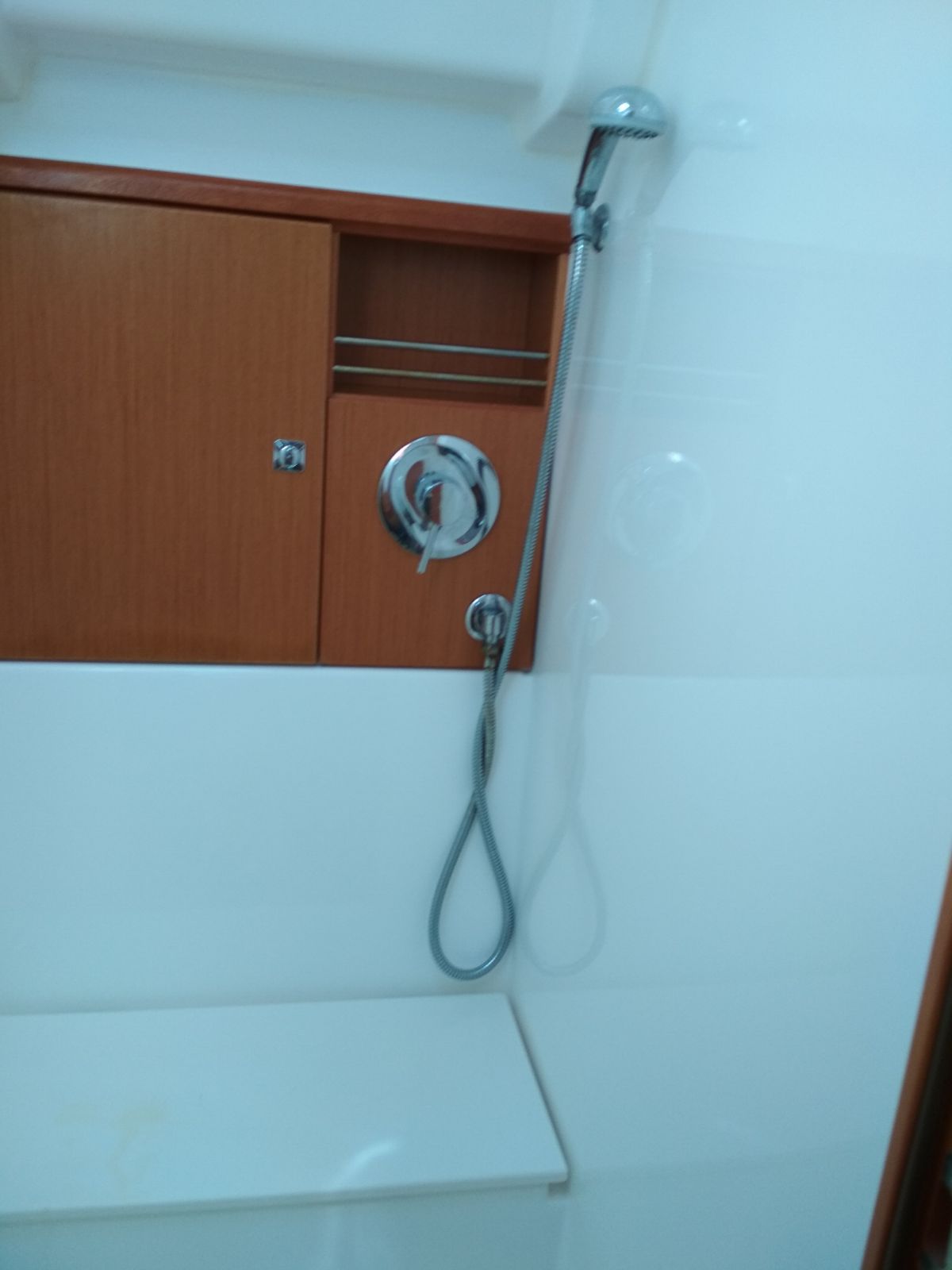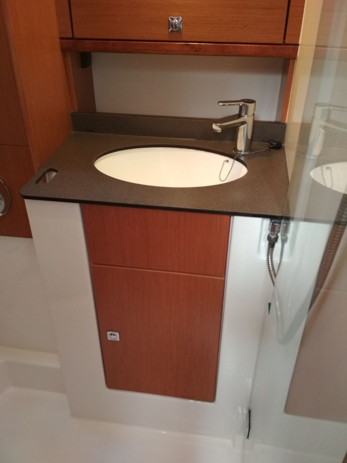 | Outside | Anker mit Kette, Badeleiter, Biminitop, Cockpitdusche, Deckbürste, elektr. Ankerwinsch, Fender, Festmacherleinen, Gangway, Kunststoff-Eimer (Pütz), Sprayhood, Teak im Cockpit, Wasserschlauch, Winschen |