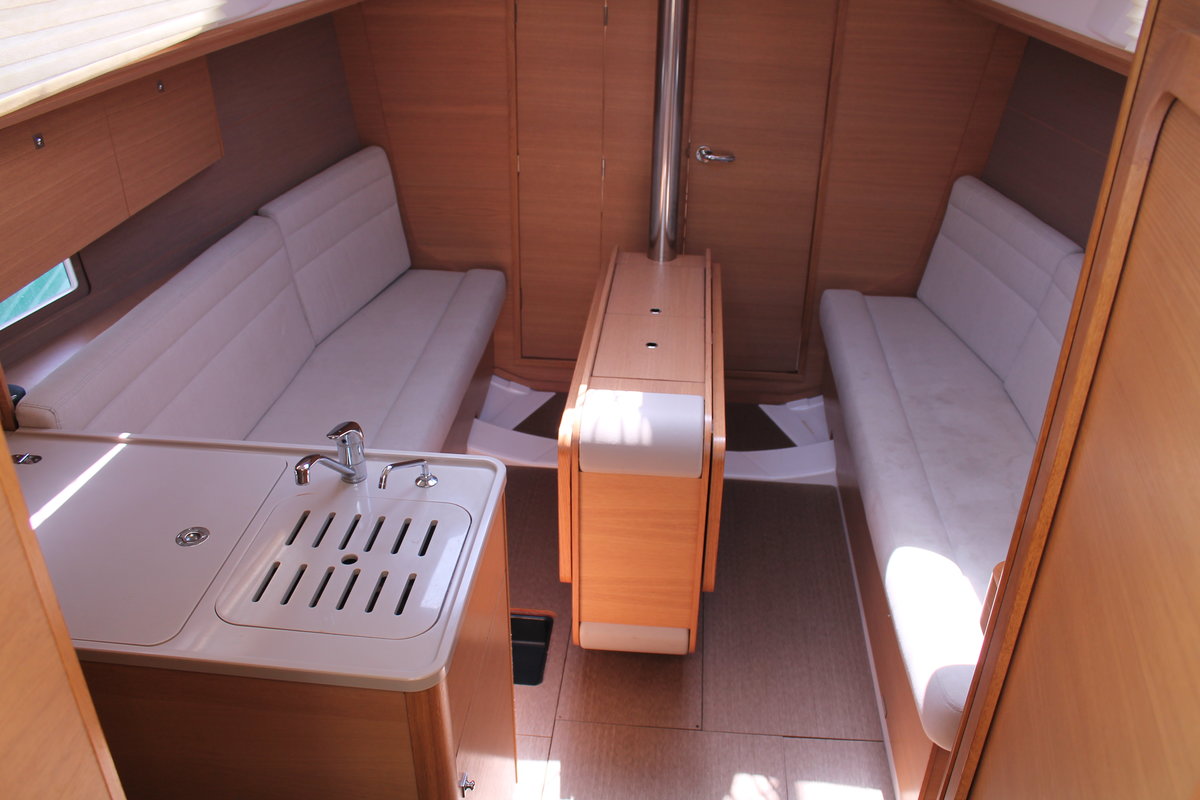 | Outside | 220 V-Landanschluss, Badeleiter, Biminitop, Cockpitdusche, Cockpitlautsprecher, Cockpitpolster, Cockpittisch, Deckbeleuchtung, Delta-Anker, elektr. Ankerwinsch, Faltpropeller, Gangway, Heckdusche, Sprayhood, Teakdeck, Windex |
