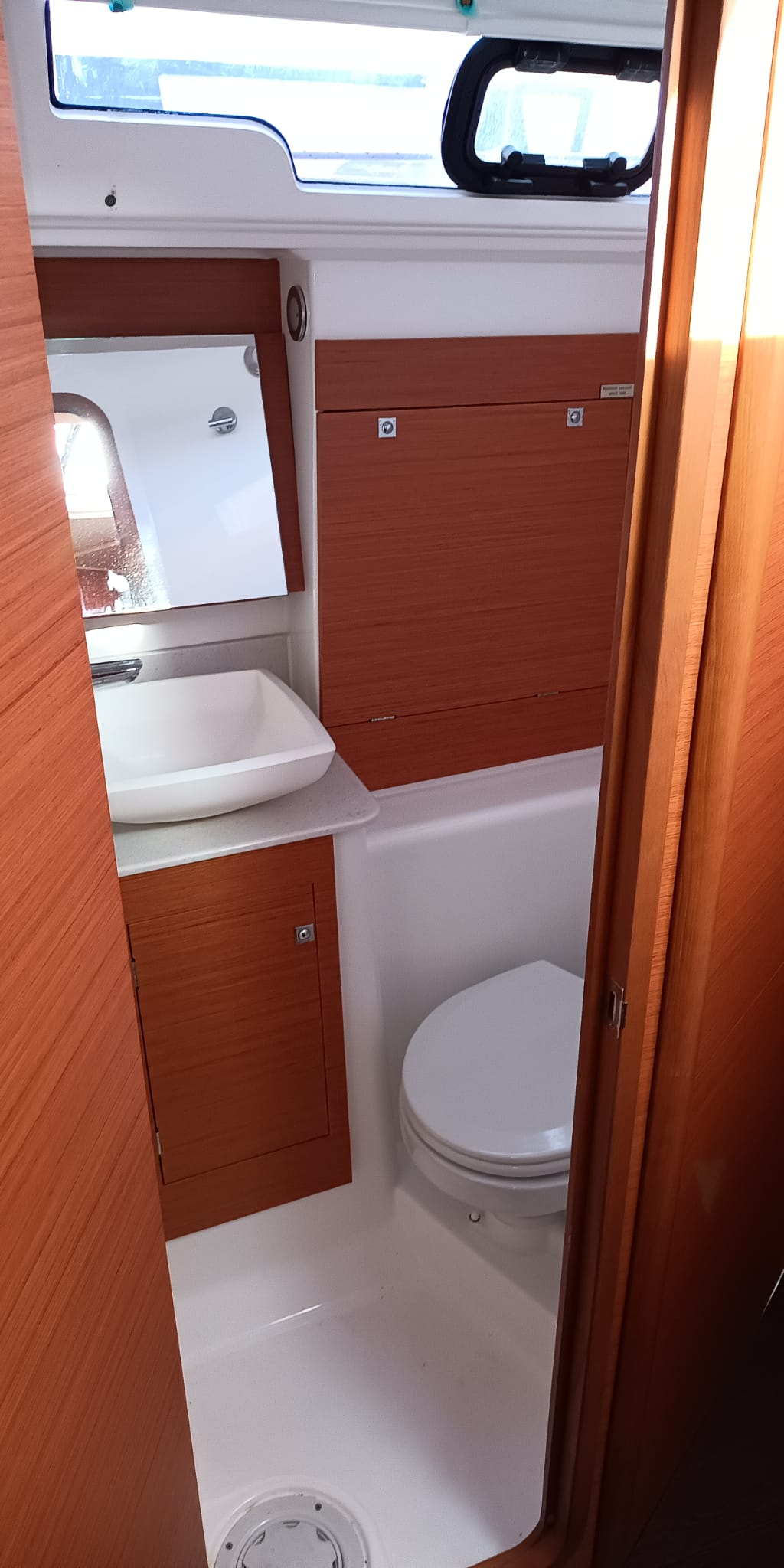 | Outside | Anker mit Kette, Außendusche, Badeplattform, Biminitop, Bootshaken, Cockpitdusche, Cockpitlautsprecher, elektr. Ankerwinsch, Fender, Festmacherleinen, Grill, Kunststoff-Eimer (Pütz), Sprayhood, Teak im Cockpit, Windex, Winschen |