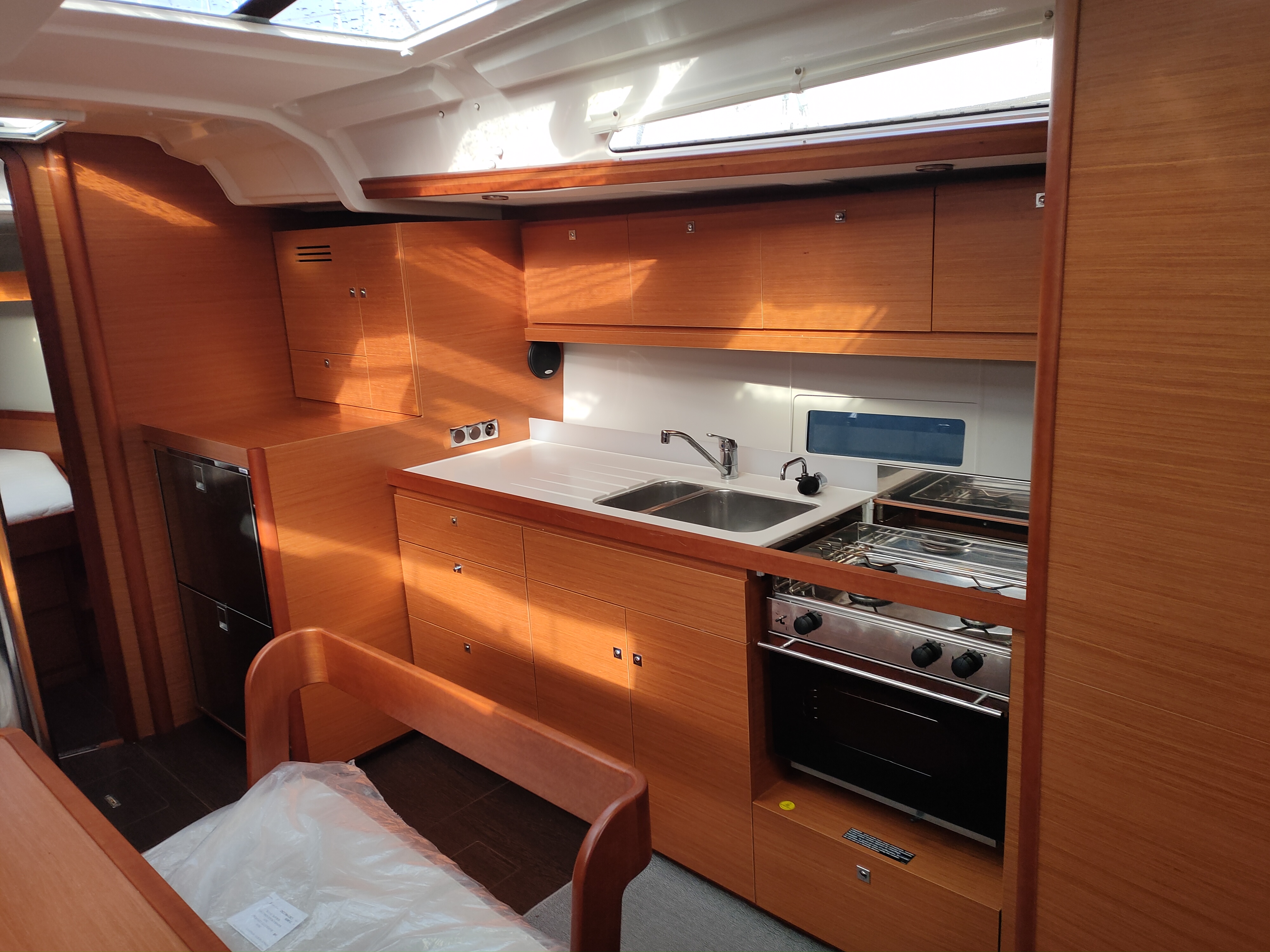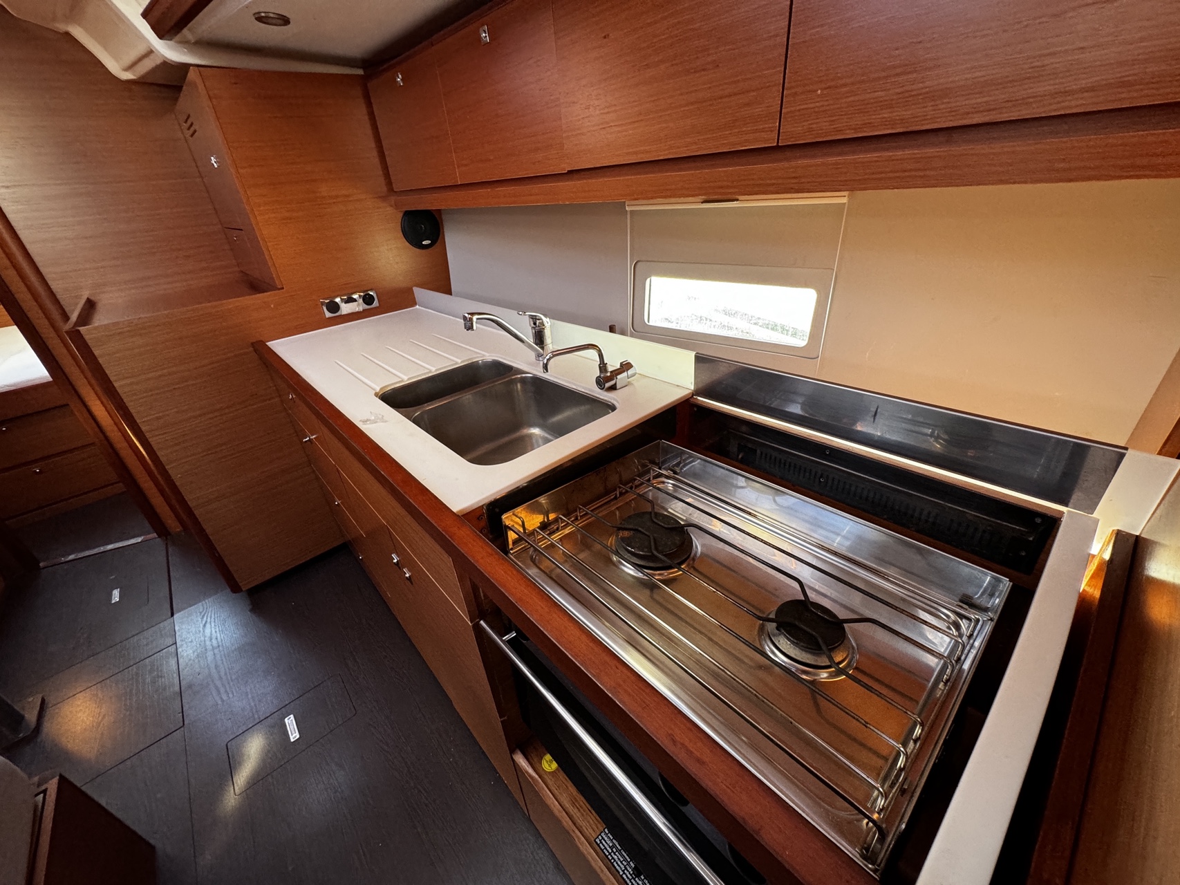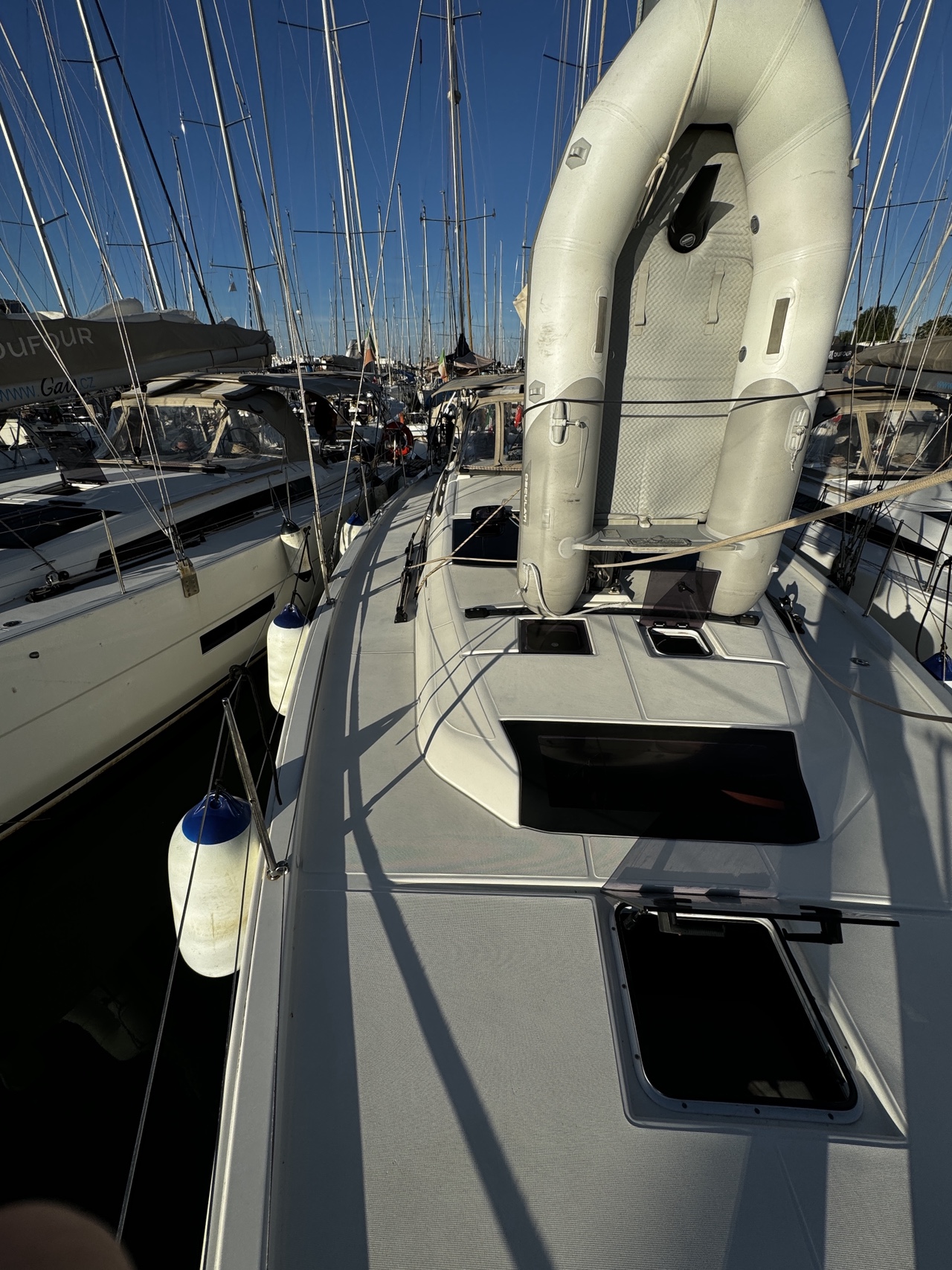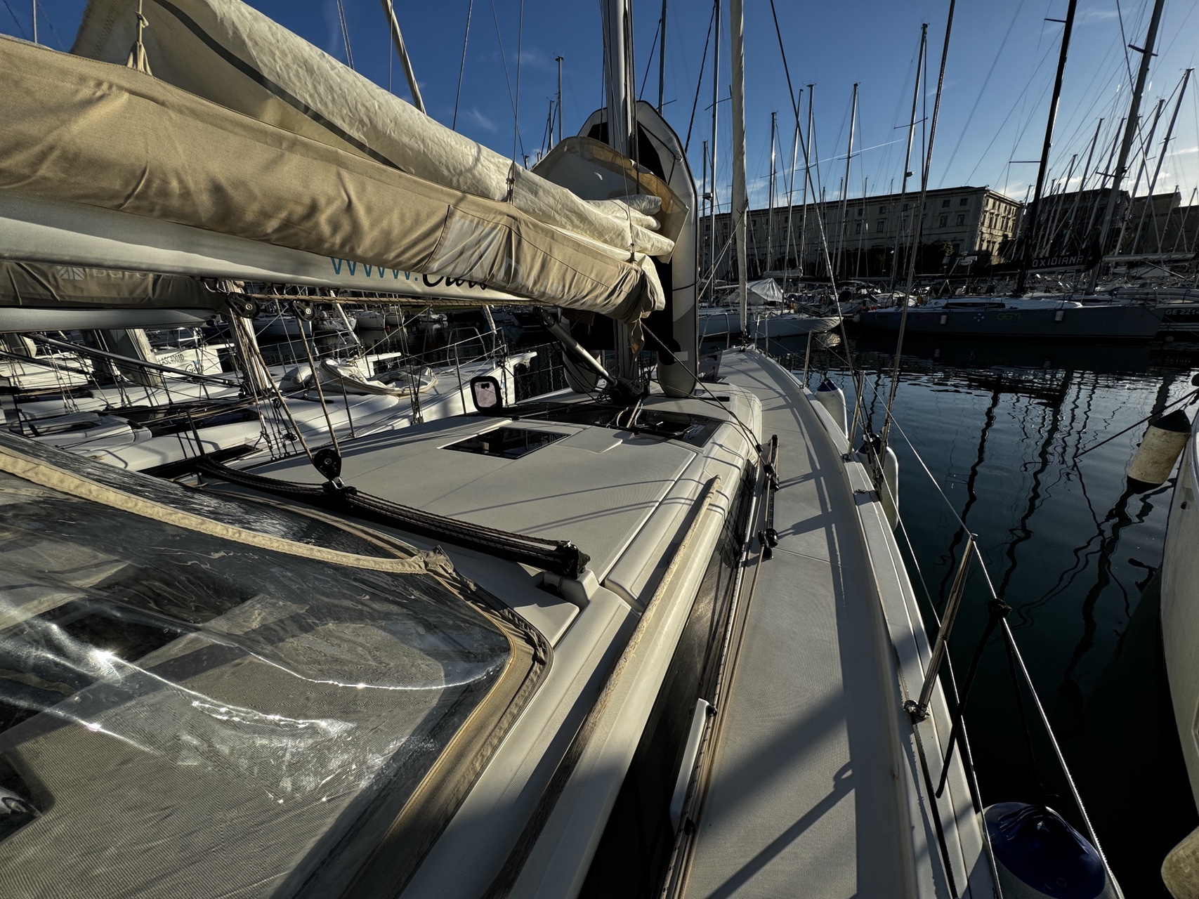 | Outside | Anker mit Kette, Ankerwinsch, Außendusche, Badeplattform, Biminitop, Bootshaken, Cockpitdusche, Cockpitlautsprecher, Deckbeleuchtung, elektr. Ankerwinsch, Fender, Festmacherleinen, Grill, Kunststoff-Eimer (Pütz), Sprayhood, Teak im Cockpit, Windex, Winschen |