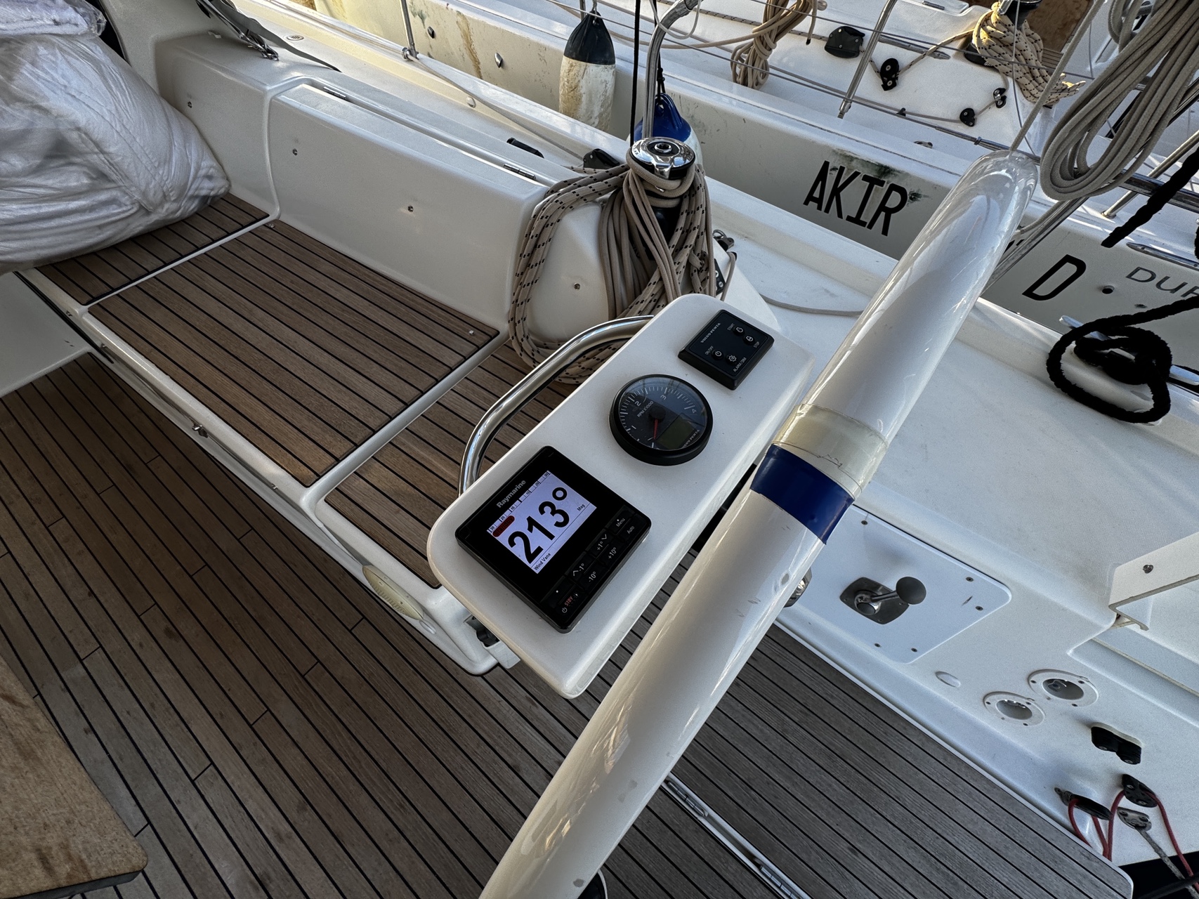 | Safety | Autopilot, Bilgepumpe, Bootsmannstuhl, Bordapotheke, Bugstrahlruder, elektr. Bilgepumpe, Feststoffschwimmwesten, Feuerlöscher, Handbilgepumpe, Lifebelts, Navigationslichter, Notpinne, Notsignale, Radarreflektor, Rettungsinsel, Taschenlampe, UKW-Funk, Zweitanker |