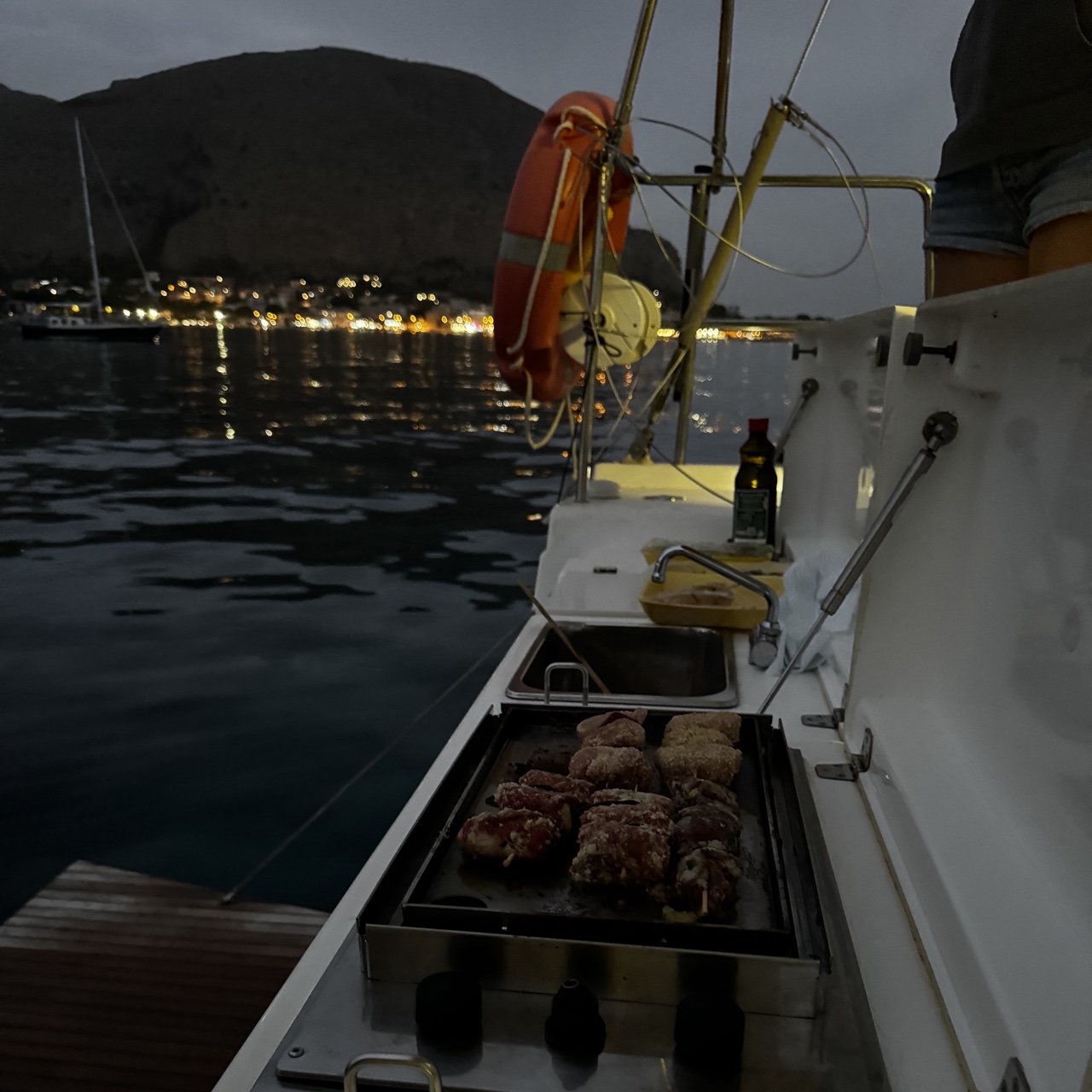 | Navigation | Fernglas, GPS, GPS mit Kartenplotter im Cockpit, Seekarten, Windmesser |
