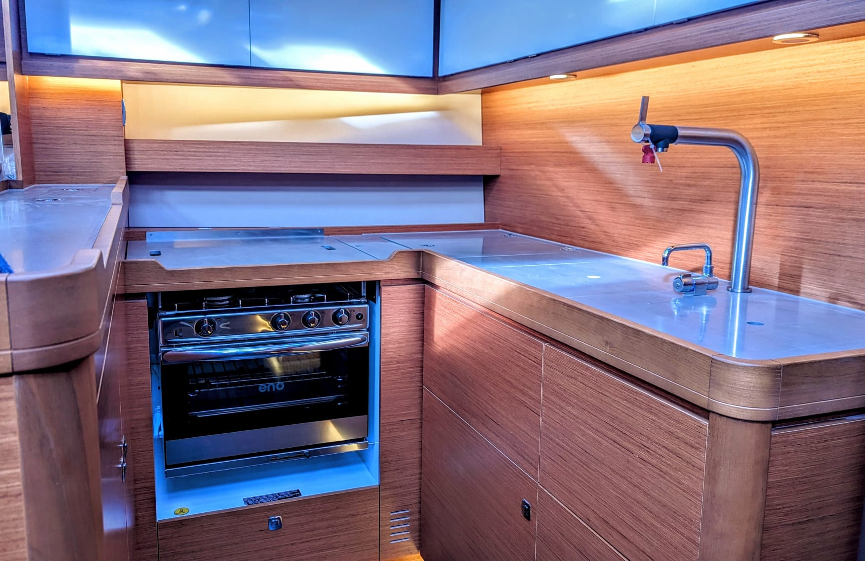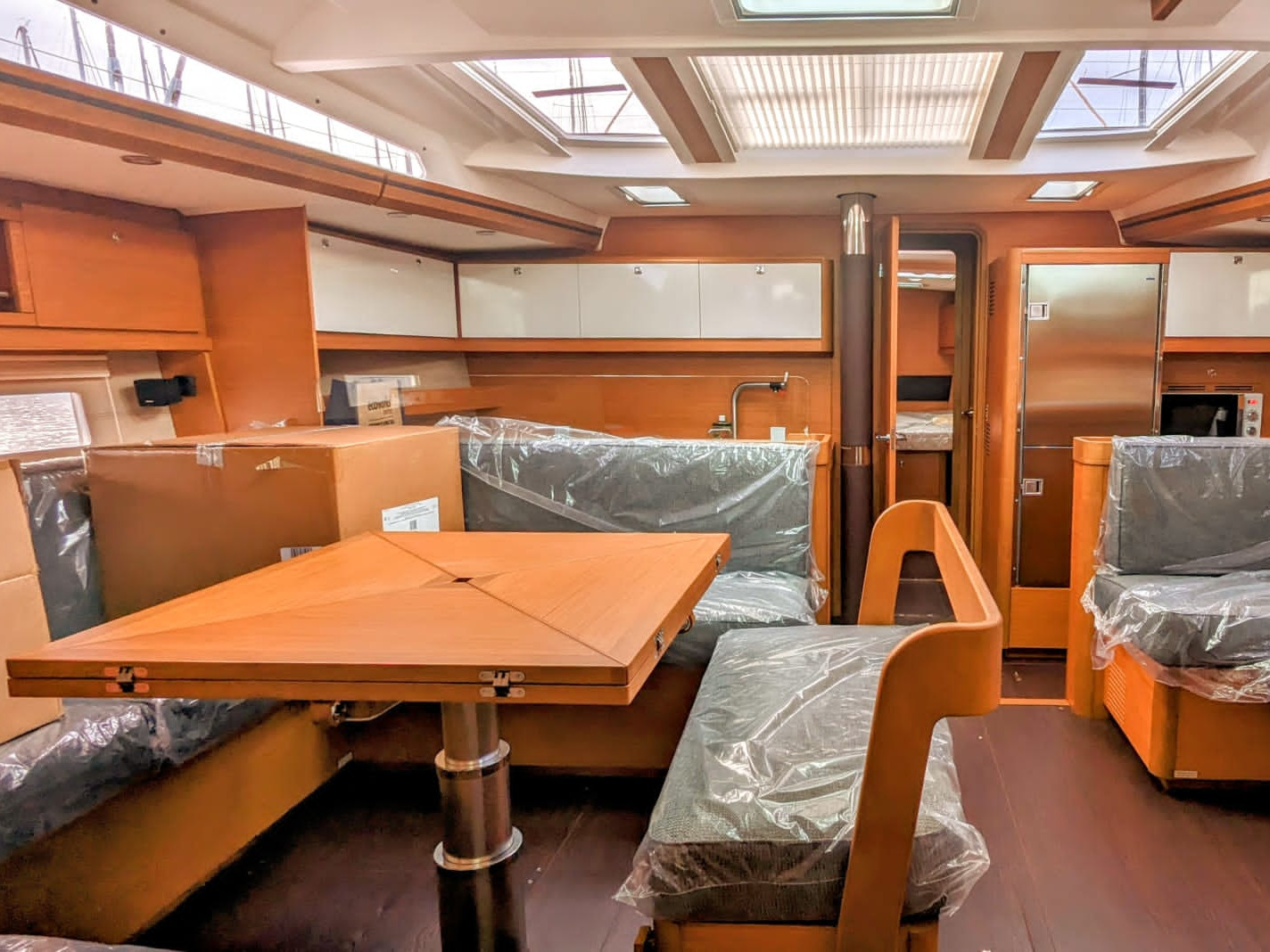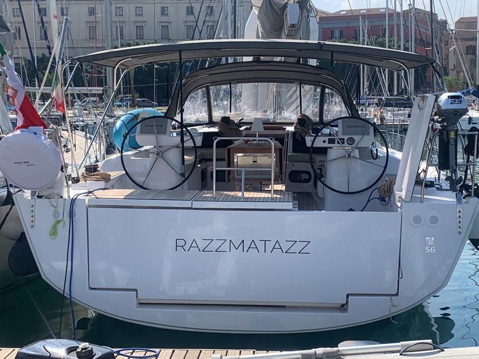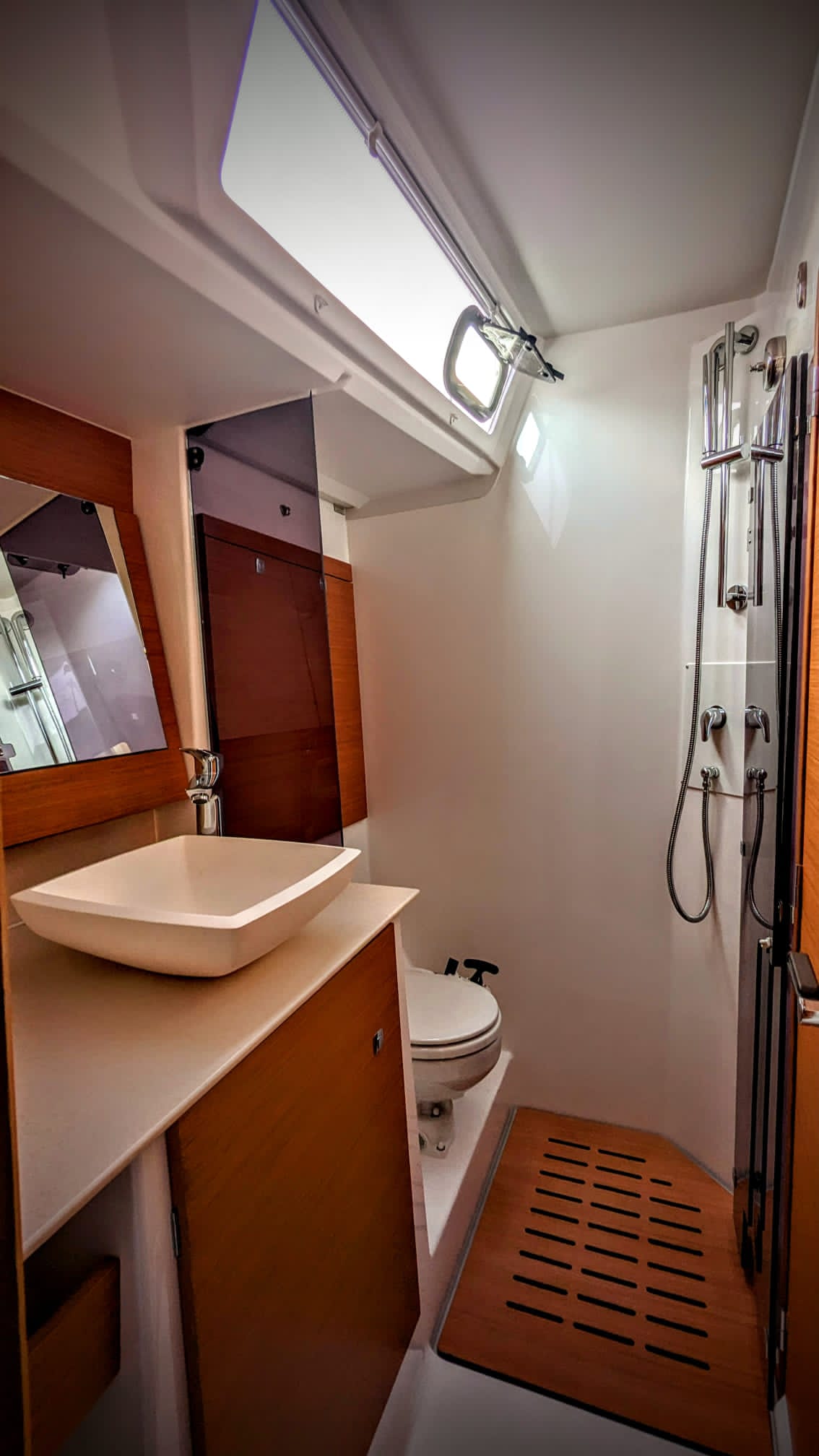 | Outside | Außendusche, Badeplattform, Biminitop, Cockpitkühlschrank, Cockpitlautsprecher, elektr. Ankerwinsch, Sprayhood, Winschen |