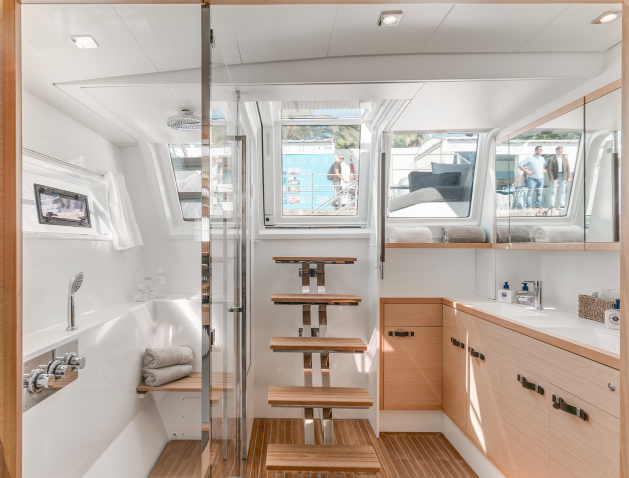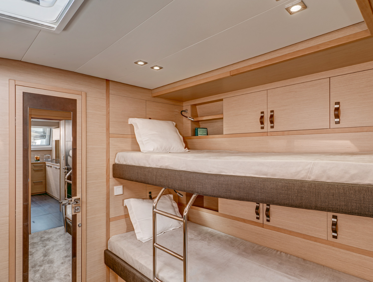 | Inside | Eiswürfelmaschine, Generator, Geschirrspüler, Inverter 12V/220V, Kaffeemaschine, Klimaanlage (ohne Landstrombedarf), Kühlschrank, Ladegerät, TV, USB Steckdosen in Salon und Kabinen, Waschmaschine, Watermaker, Weinkühlschrank |