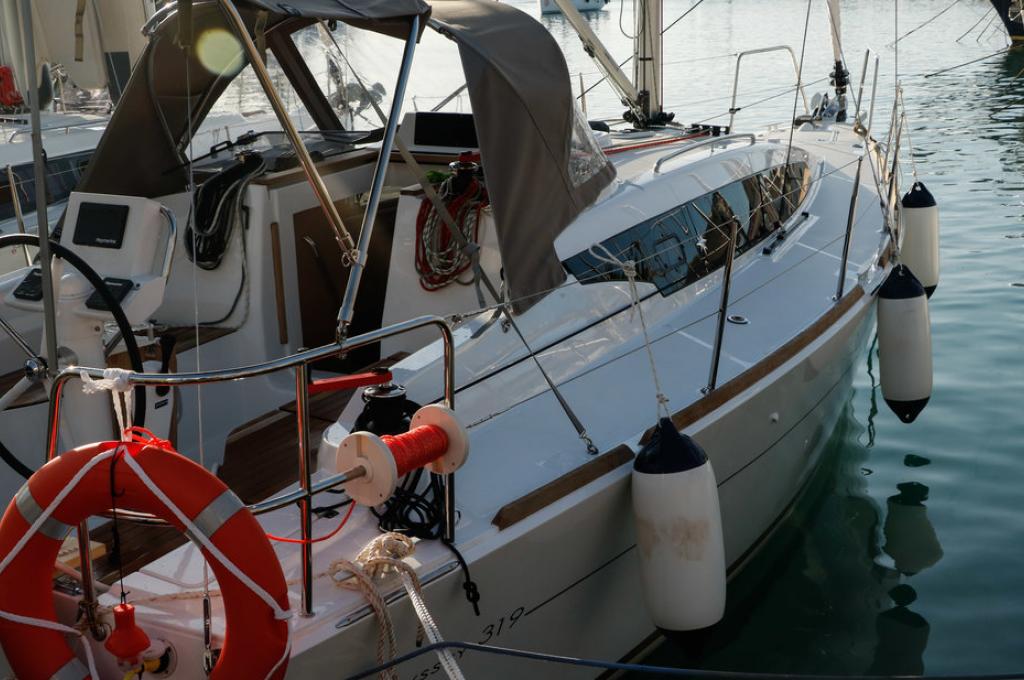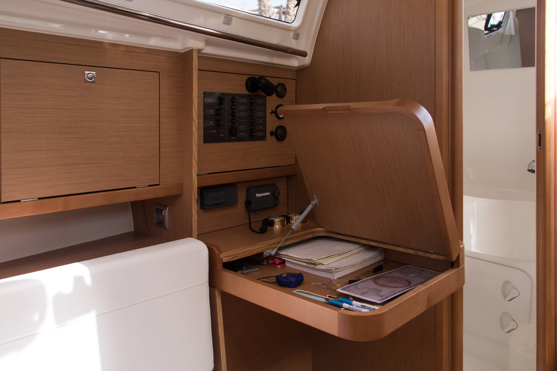 | Outside | Biminitop, Cockpitdusche, Cockpitlautsprecher, Cockpittisch, elektr. Ankerwinsch, Sprayhood |