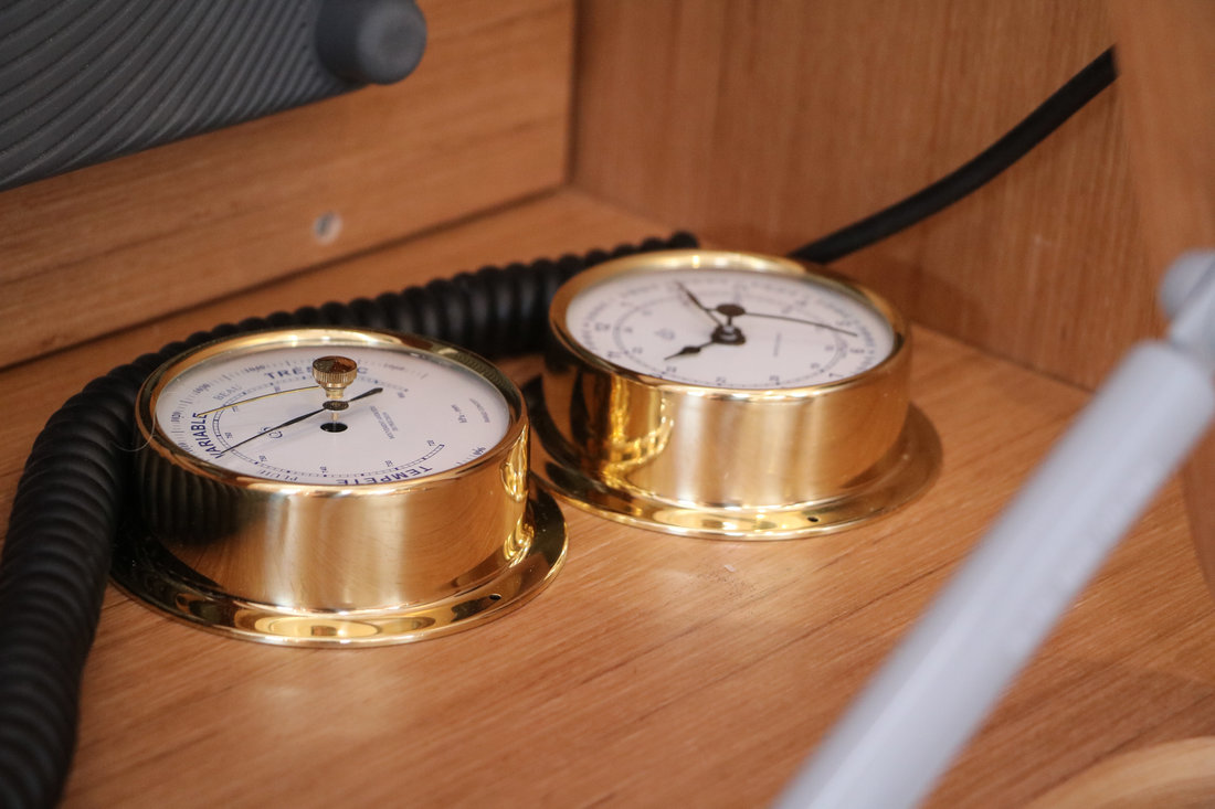 | Navigation | Echolot, GPS mit Kartenplotter im Cockpit, Sumlog, Windmesser |
