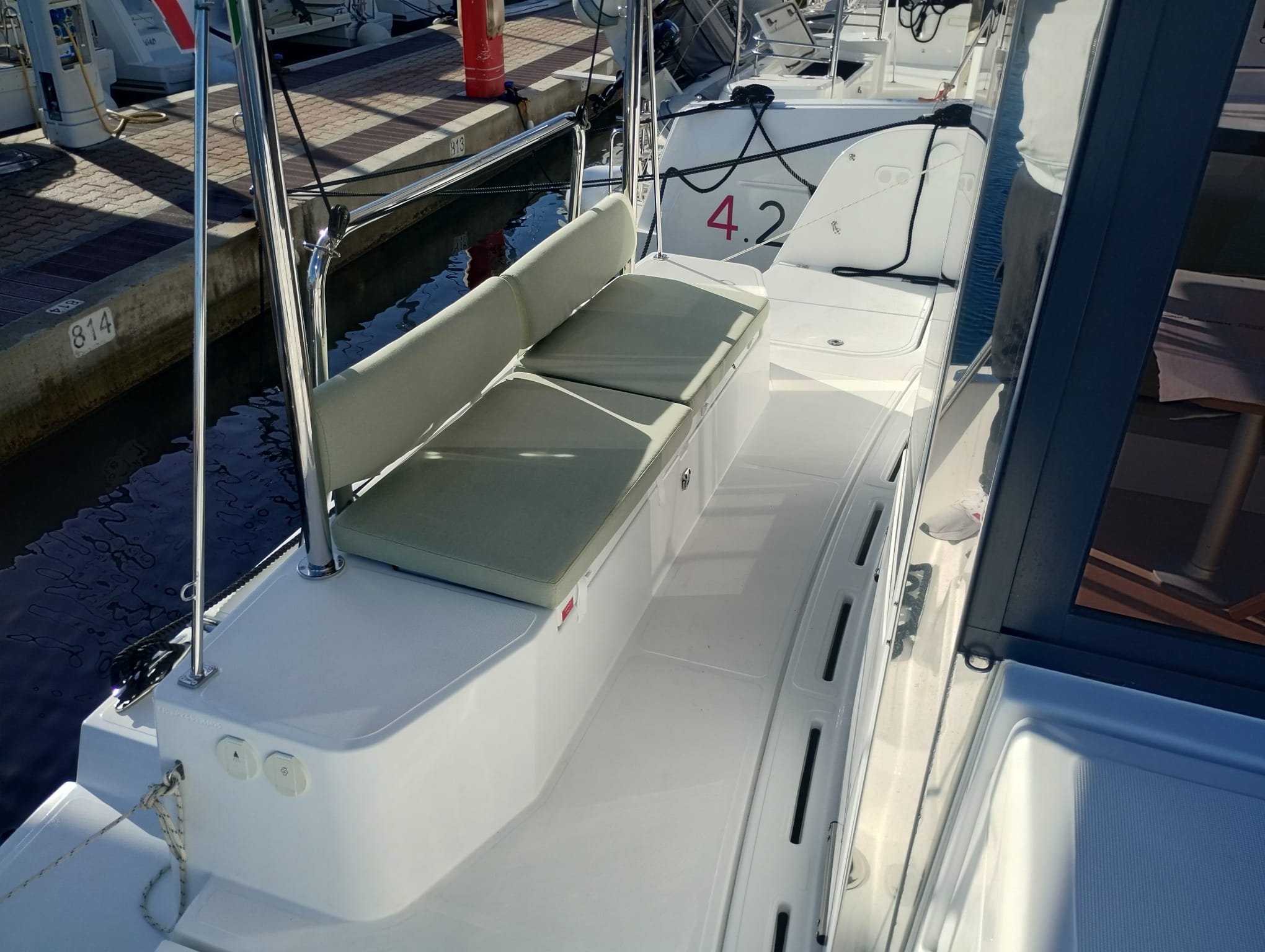 | Outside | Außendusche, Biminitop, Cockpitpolster, Solaranlage |