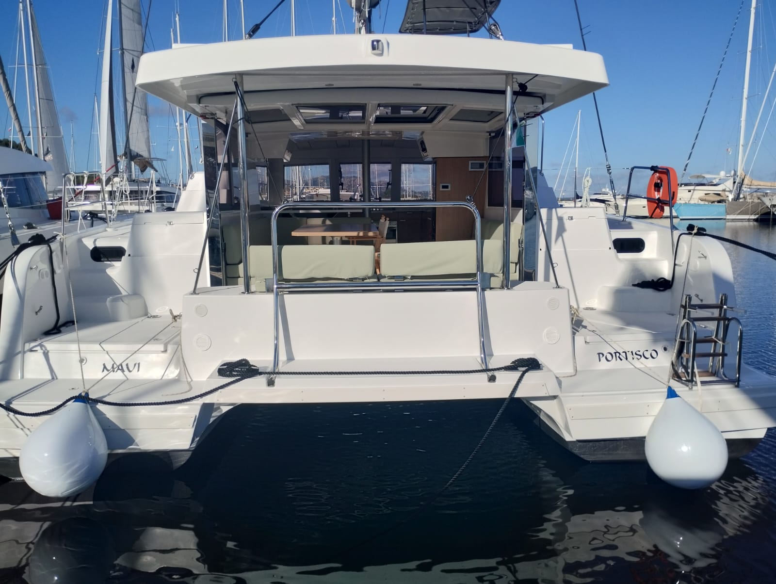 | Inside | Inverter 12V/220V, Pantryausstattung, Radio mit CD und USB, Salontisch absenkbar, Ventilatoren in Kabinen, Watermaker, WC (elektr.) |