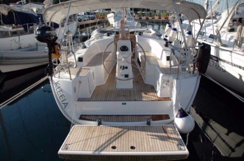 | Outside | 220 V-Landanschluss, Anker mit Kette, Ankerwinsch, Badeleiter, Biminitop, Bootshaken, Cockpitpolster, Cockpittisch, Fender, Festmacherleinen, Gangway, Heckdusche, Sprayhood, Wasserschlauch, Windex, Winschen |