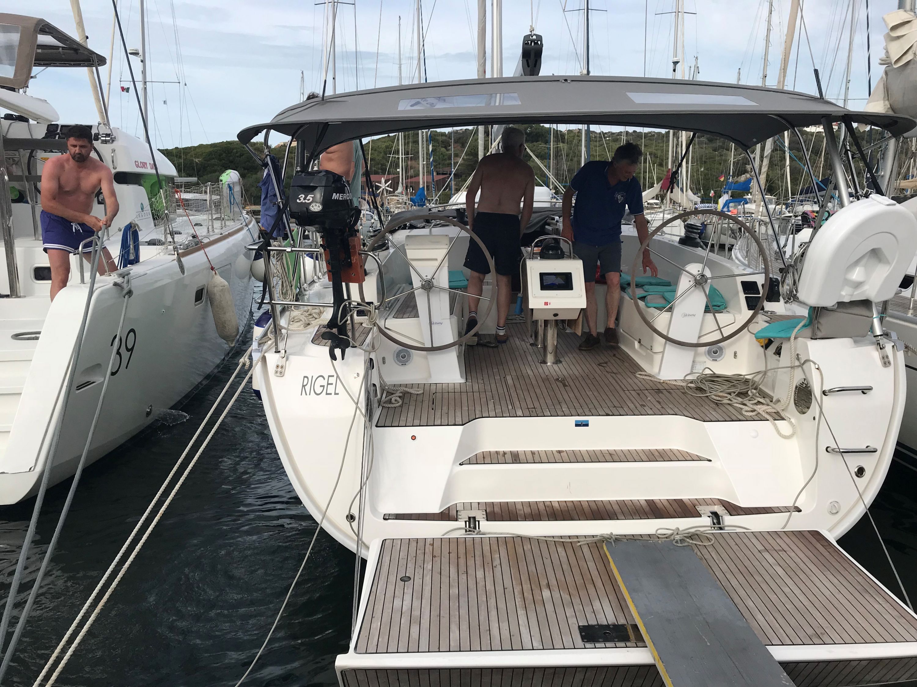 | Outside | 220 V-Landanschluss, Anker mit Kette, Biminitop, Bootshaken, Cockpitdusche, Cockpitpolster, Fender, Festmacherleinen, Gangway, Sprayhood, Wasserschlauch, Winschen |