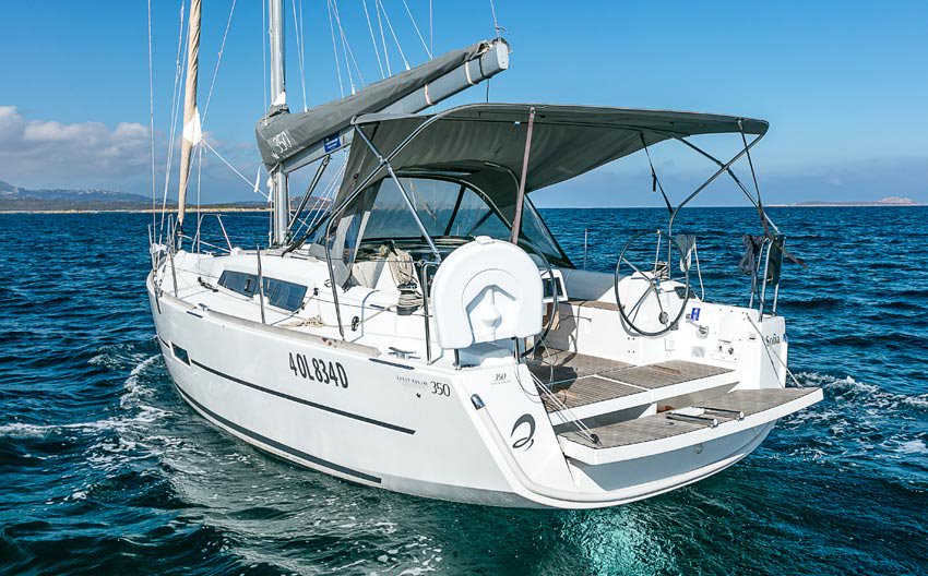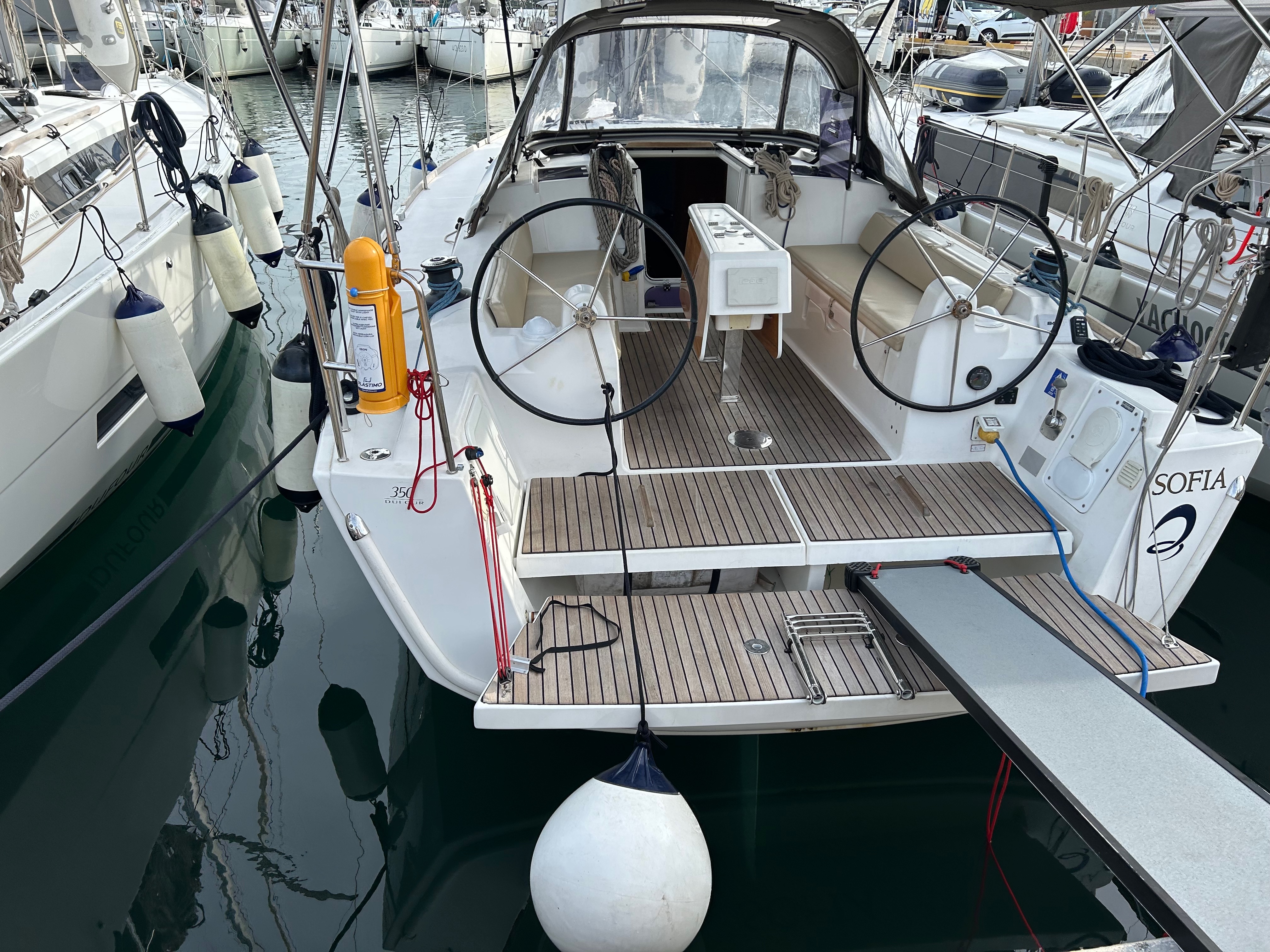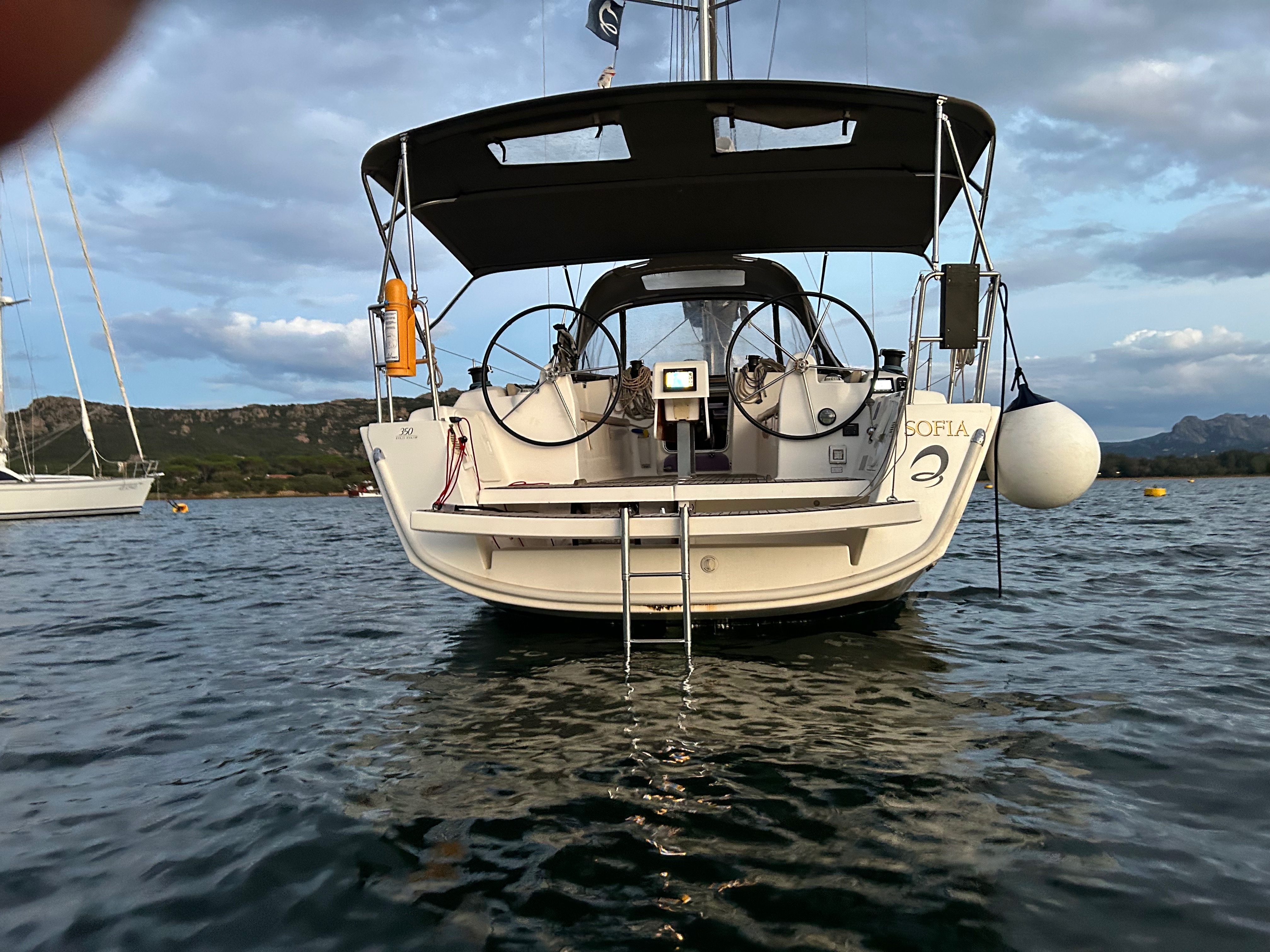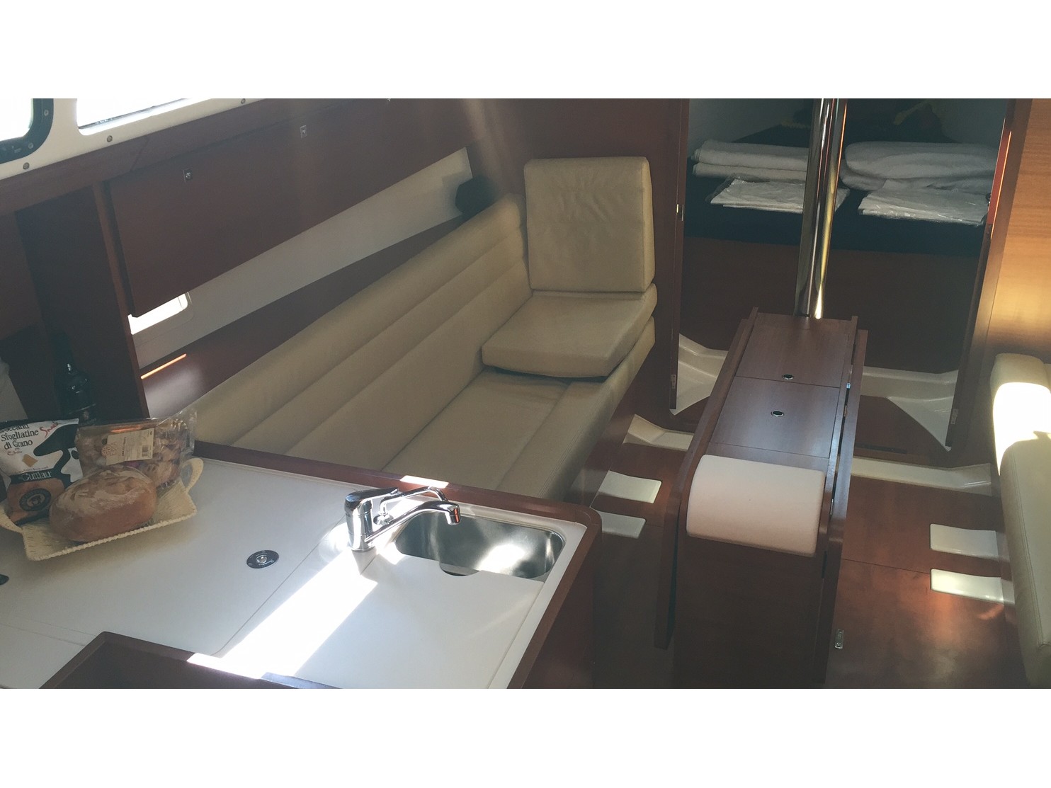 | Outside | Anker mit Kette, Biminitop, Bootshaken, Bürste und Schwamm, Cockpitdusche, Cockpitlautsprecher, Cockpittisch, elektr. Ankerwinsch, Festmacherleinen, Gangway, Schnorchelausrüstung, Sprayhood, Teak im Cockpit, Wasserschlauch, Windex |