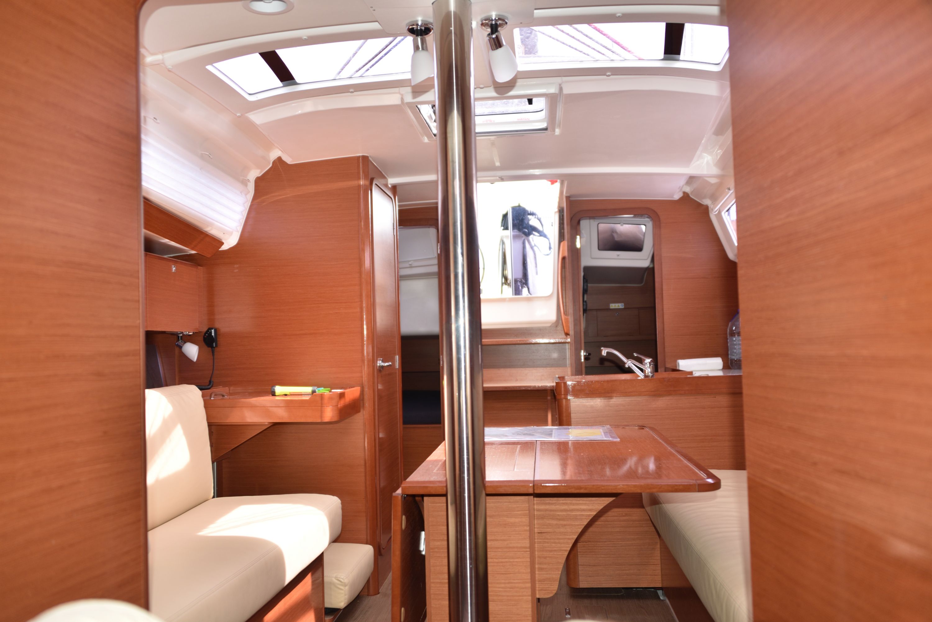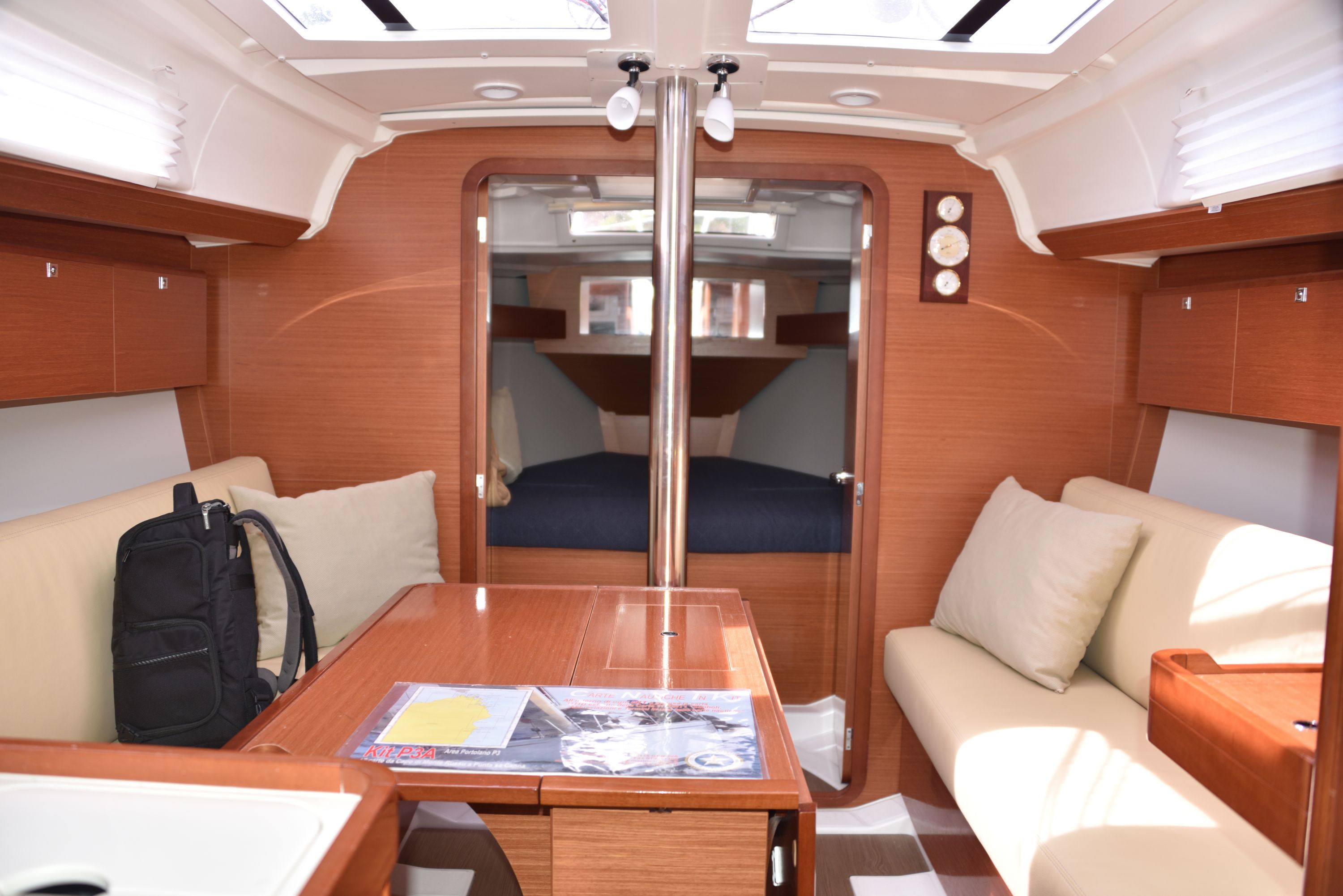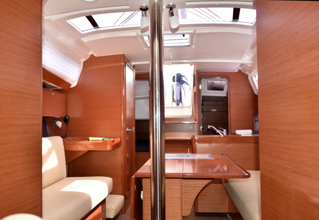 | Outside | Anker mit Kette, Badeplattform, Biminitop, Cockpitlautsprecher, Cockpitpolster, elektr. Ankerwinsch, Gangway, Grill, Solaranlage, Teak im Cockpit |