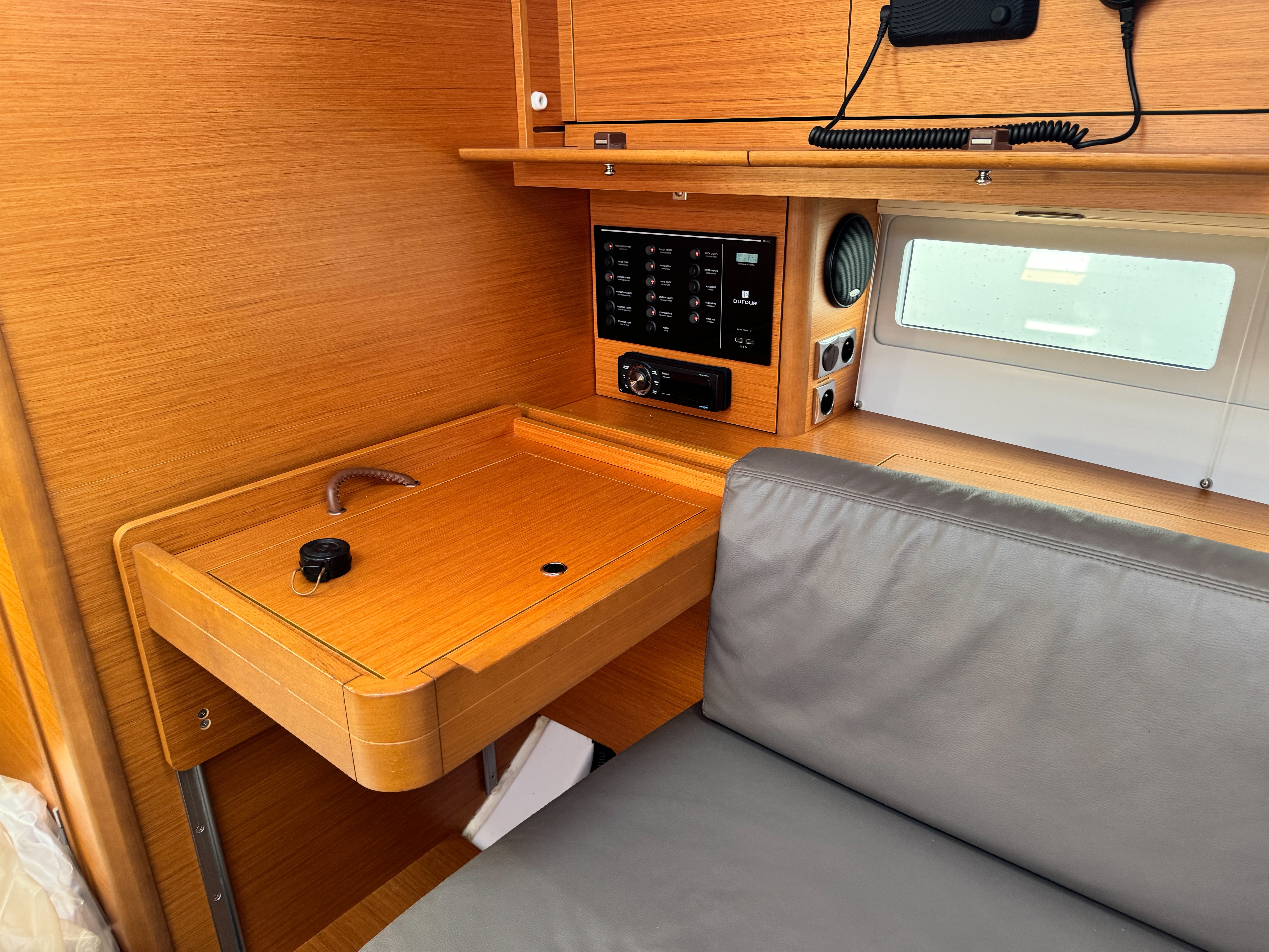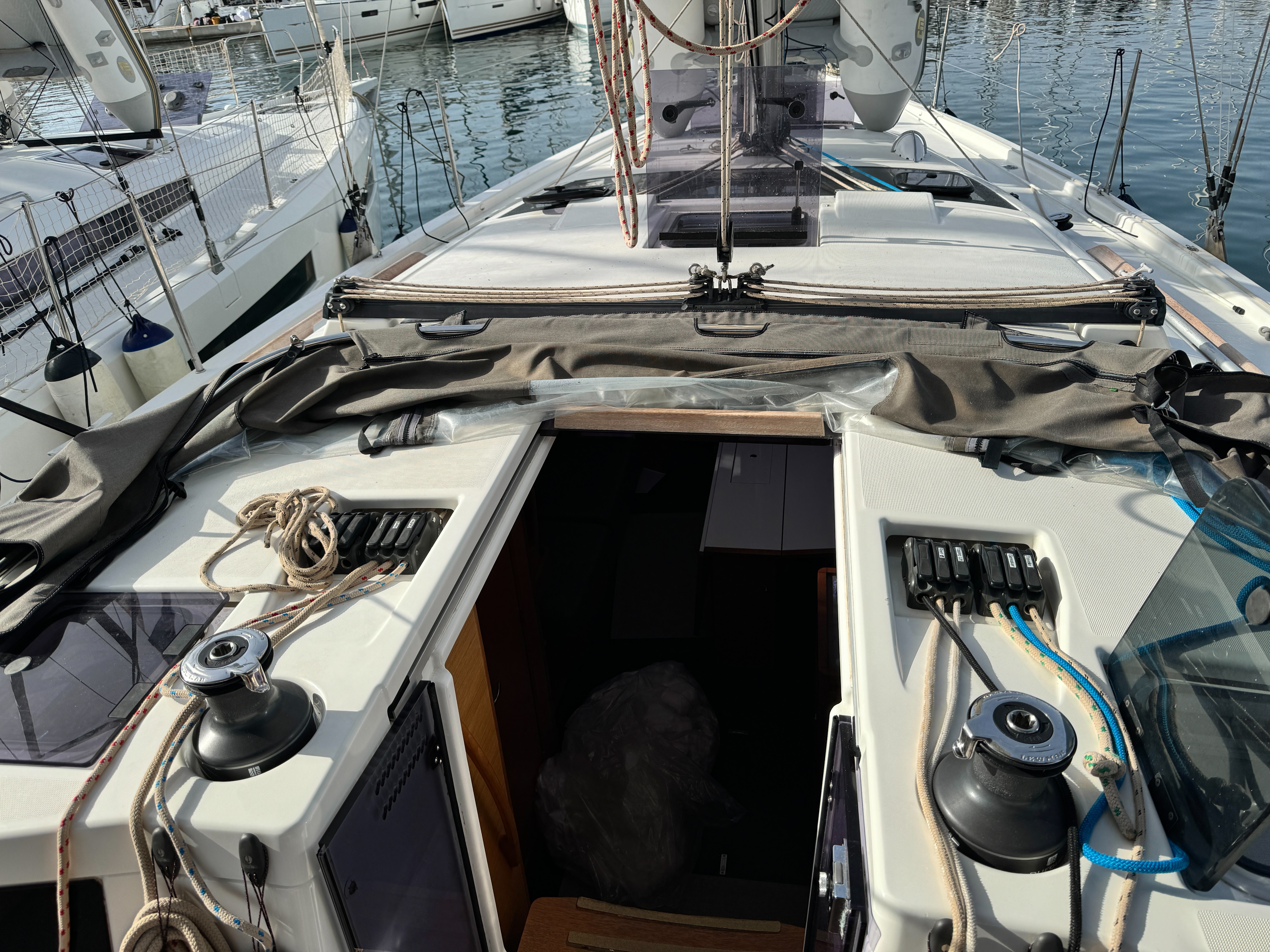 | Outside | Anker mit Kette, Bootshaken, Bürste und Schwamm, Cockpitlautsprecher, Cockpitleuchte, Cockpittisch, Deckpolster, elektr. Ankerwinsch, Fender, Festmacherleinen, Gangway, Grill, Hardtop, Schnorchelausrüstung, Sprayhood, Wasserschlauch, Windex |