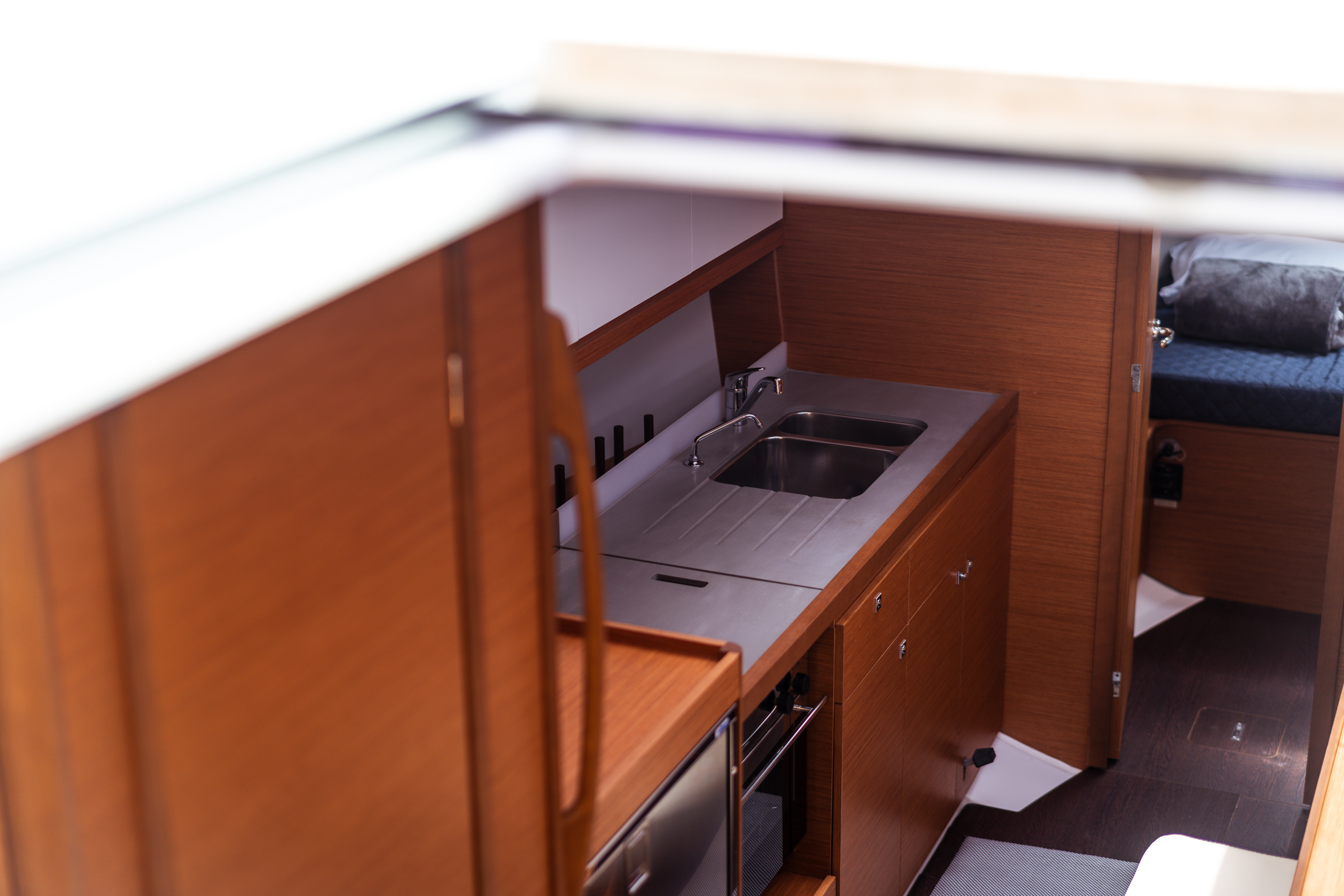 | Inside | Backofen, Gasherd mit Backofen, Kühlschrank, Lautsprecher im Salon, Pantryausstattung, Radio mit USB, USB Steckdosen in den Kabinen, Ventilatoren in Salon und Kabinen, Wasserkocher, WC (elektr.) |
