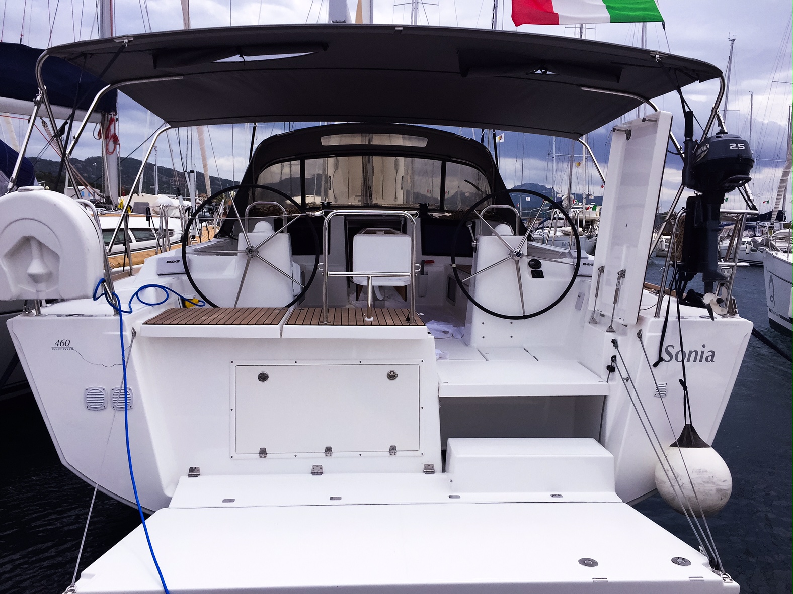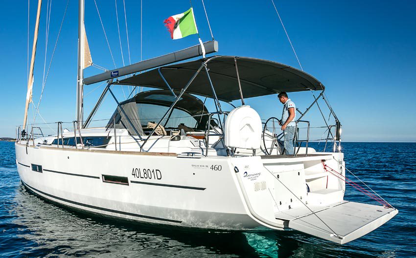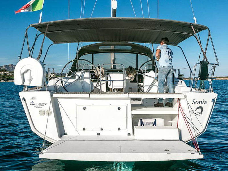 | Outside | Anker mit Kette, Außendusche, Biminitop, Bootshaken, Bürste und Schwamm, Cockpitdusche, Cockpitlautsprecher, Cockpitleuchte, Cockpittisch, Deckpolster, elektr. Ankerwinsch, Fender, Festmacherleinen, Gangway, Grill, Hardtop, Schnorchelausrüstung, Sprayhood, Teak im Cockpit, Wasserschlauch, Windex |