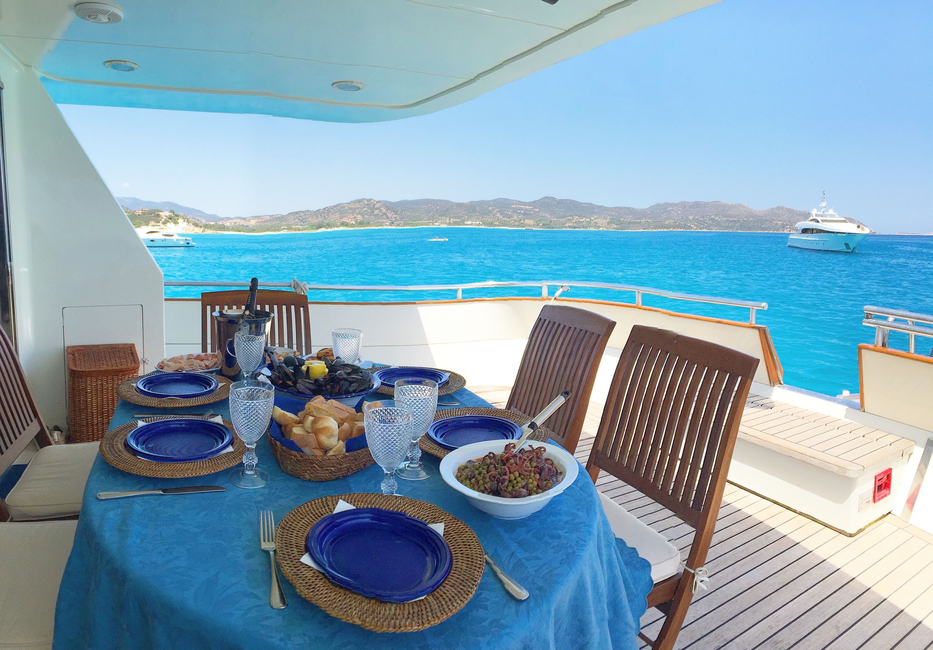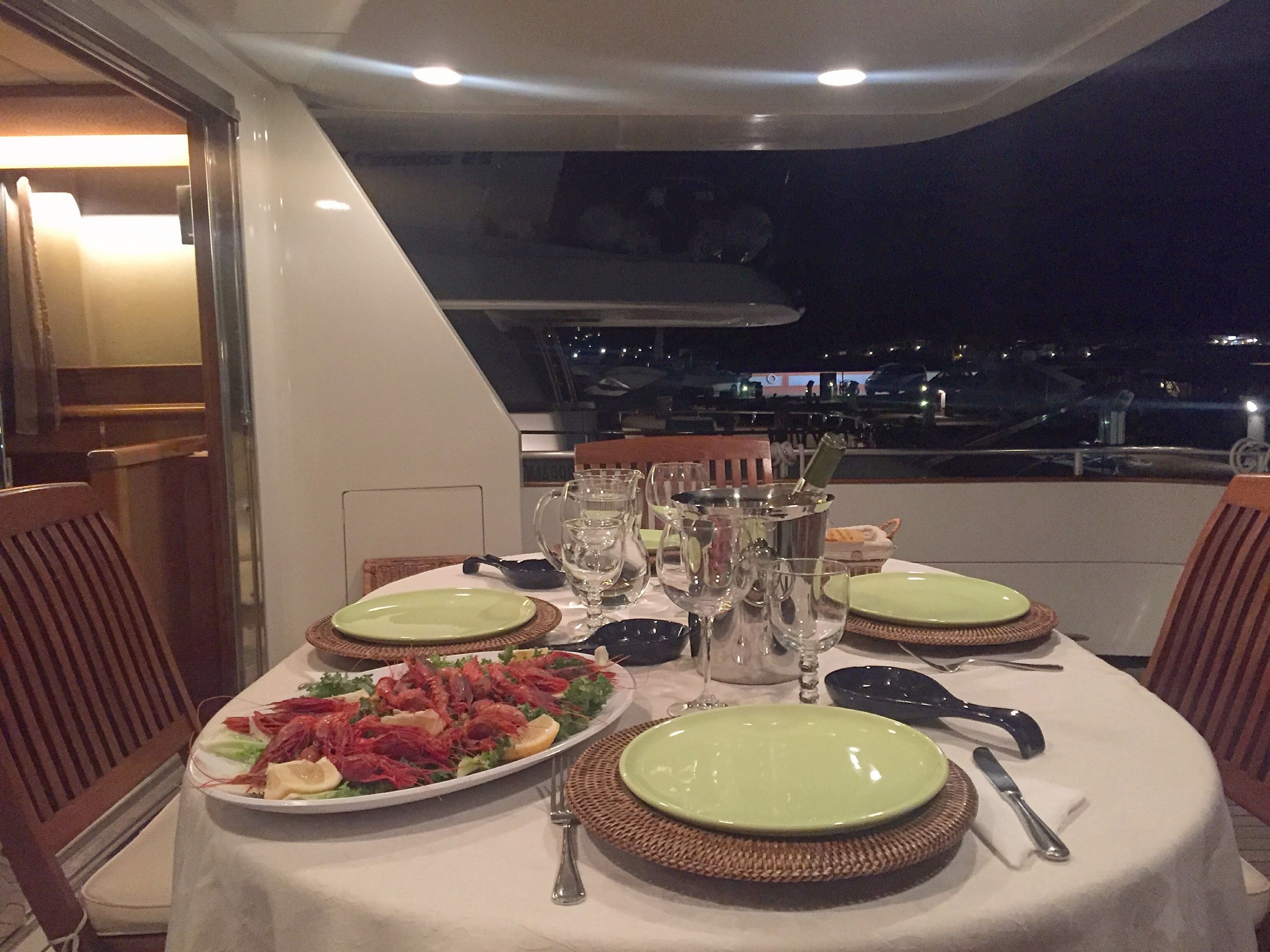 | Outside | Anker mit Kette, Cockpitkühlschrank, Cockpitpolster, Cockpittisch, Fender, Grill |