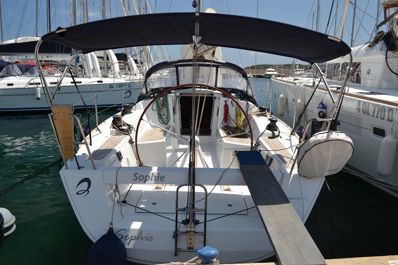 | Outside | Anker mit Kette, Biminitop, Bootshaken, Bürste und Schwamm, Cockpitdusche, elektr. Ankerwinsch, Festmacherleinen, Gangway, Schnorchelausrüstung, Sprayhood, Wasserschlauch |