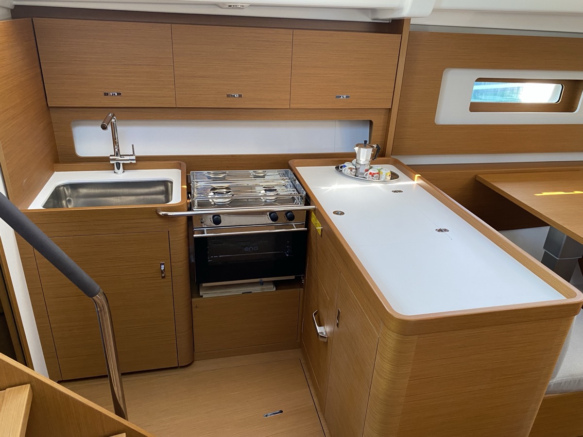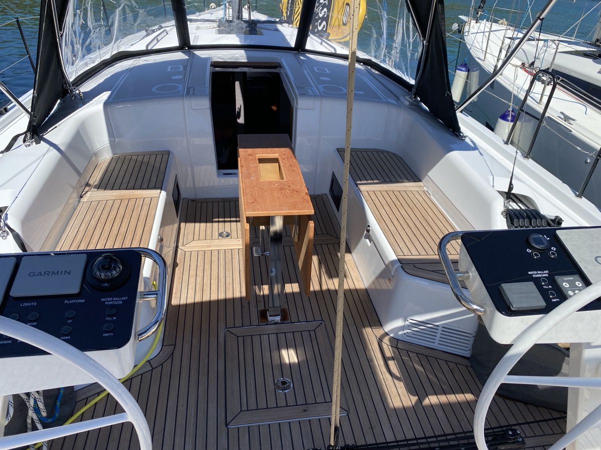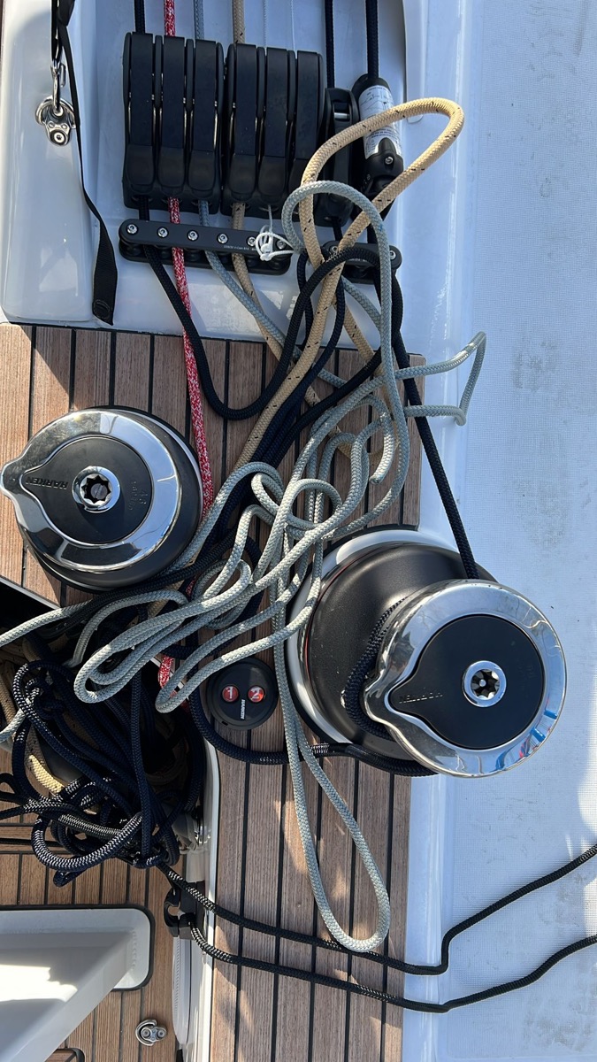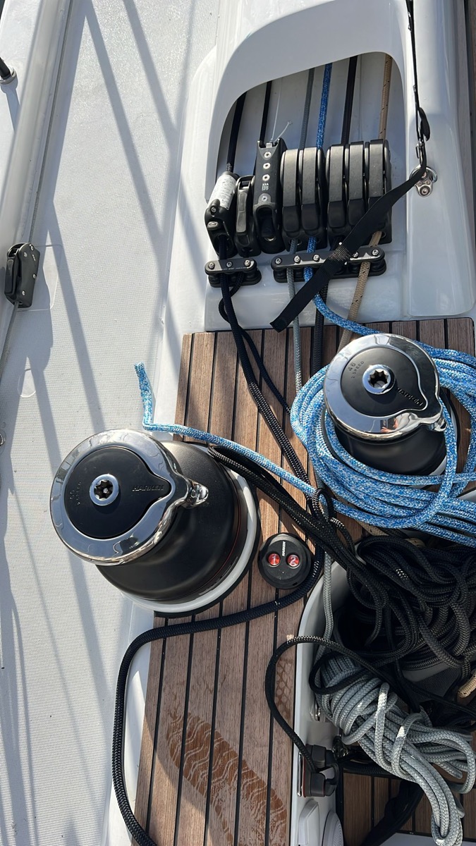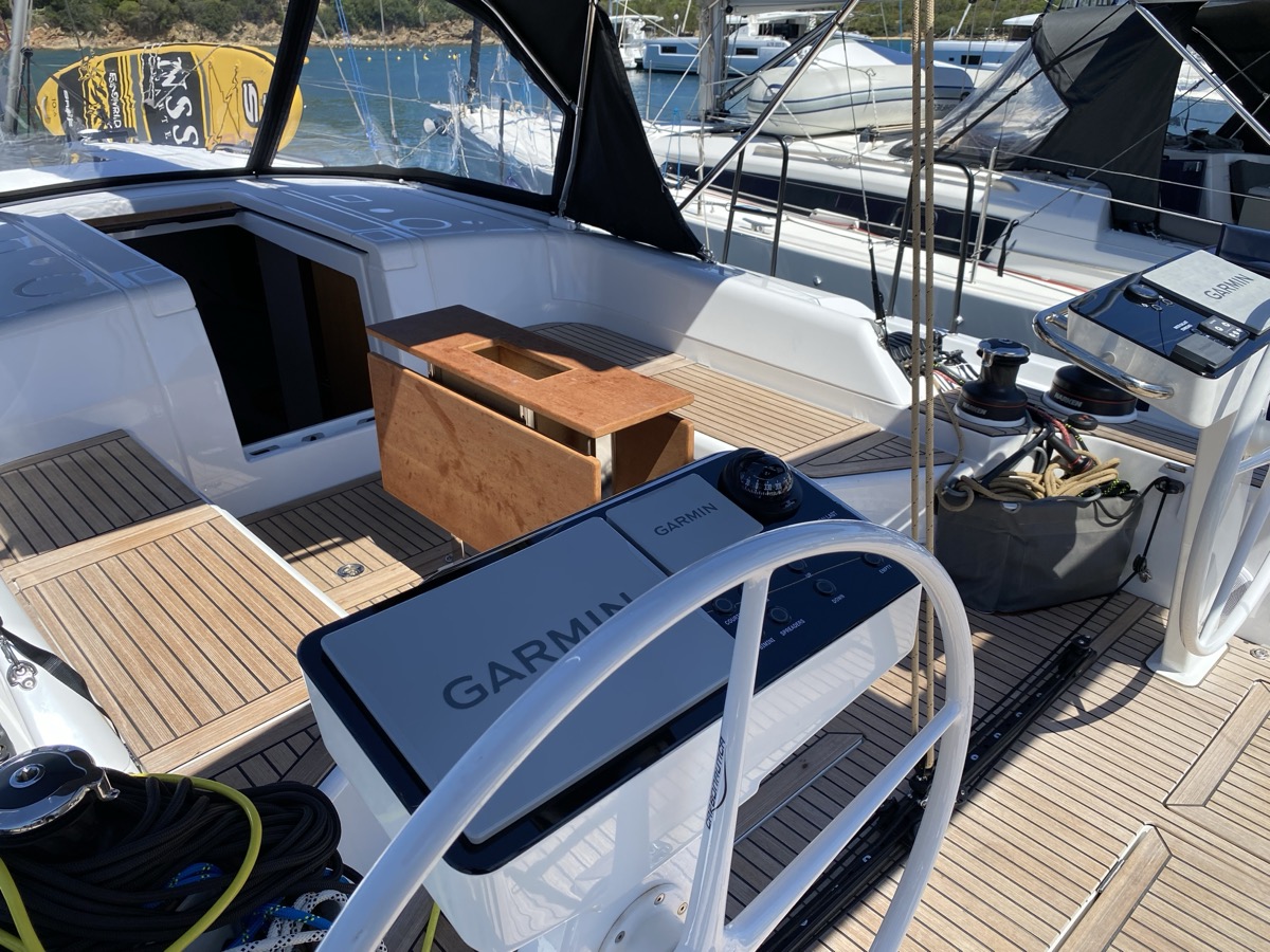 | Outside | Biminitop, Cockpitdusche, Cockpitlautsprecher, Cockpittisch, elektr. Ankerwinsch, elektr. Winsch, Segel-Flickwerkzeug, Sprayhood, Teakdeck |