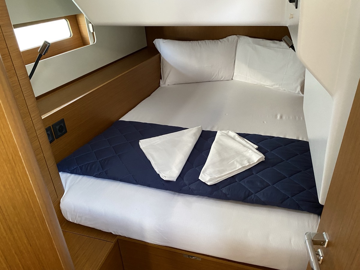 | Safety | Autopilot, Bootsmannstuhl, Bugstrahlruder, Feuerlöscher, Notsignale, Rettungsinsel, UKW-Funk, Zweitanker |