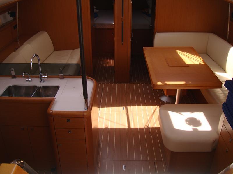 | Outside | 220 V-Landanschluss, Biminitop, Cockpitdusche, Deckbeleuchtung, elektr. Ankerwinsch, Sprayhood, Teak im Cockpit, Winschen |