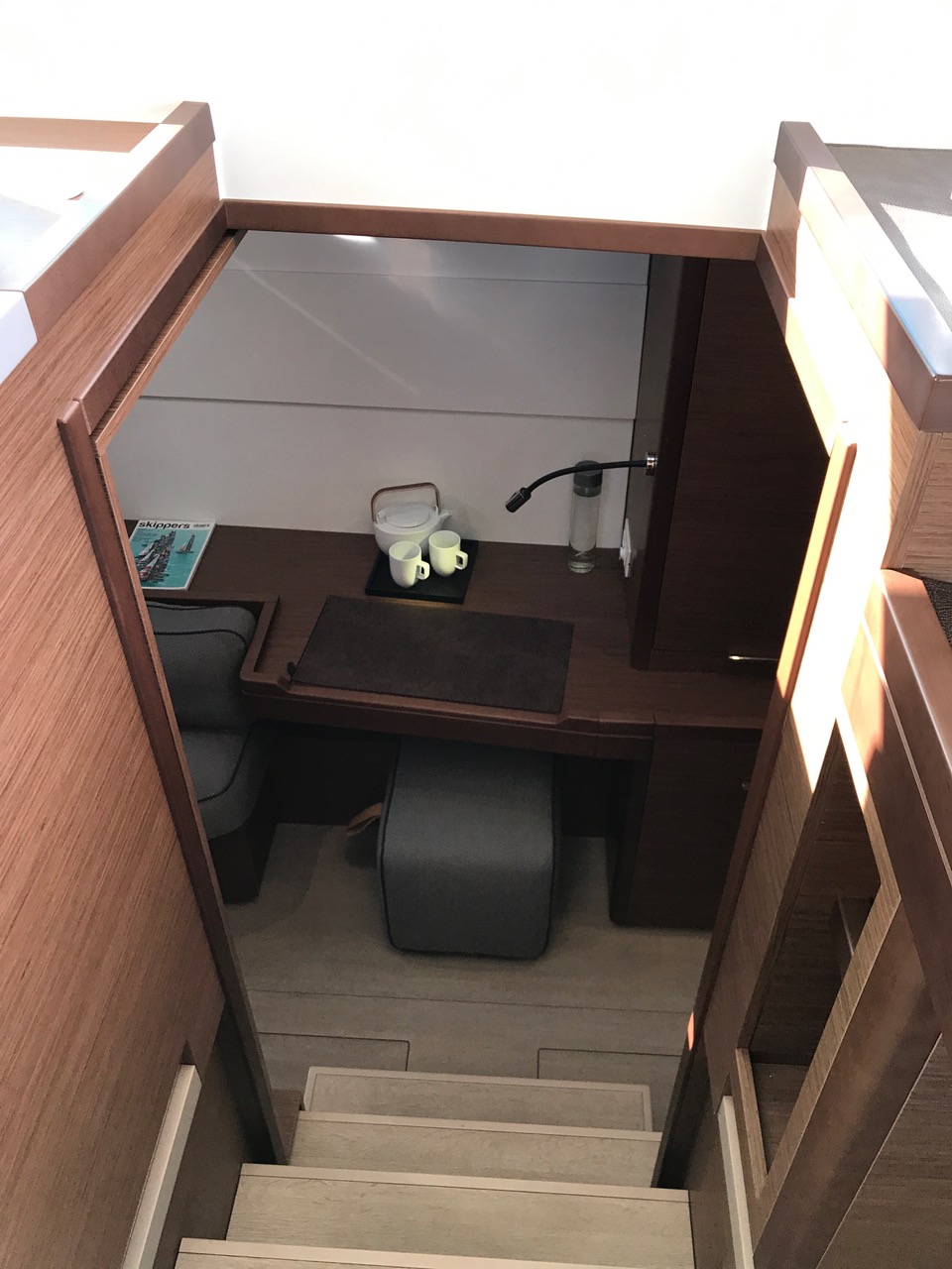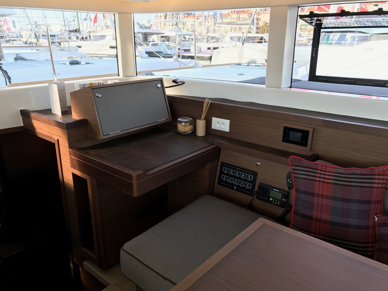 | Inside | Inverter 12V/220V, Landstromkabel, Mikrowelle, Mokkakanne, Pantryausstattung, Radio, Salontisch absenkbar, USB Steckdosen in den Kabinen, Ventilator, Ventilatoren in Kabinen, Warmwasser, Watermaker, WC (elektr.) |